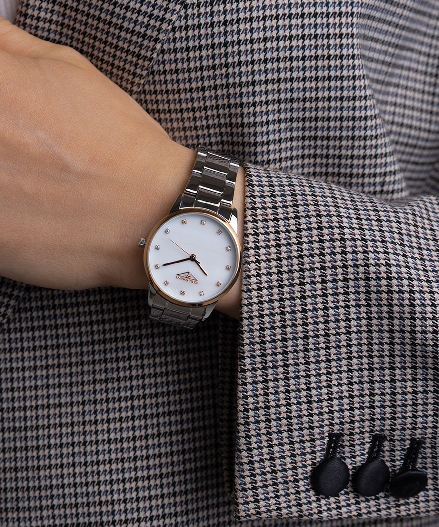 Кристаллы используются в качестве меток времени, придавая часам элегантное изящество. Перламутровый аналоговый циферблат подчеркивает стиль и женственность. Минеральное стекло с сапфировым покрытием – надежная защита от царапин и механических повреждений. Водозащита 3 АТМ обеспечивает комфорт при повседневном использовании, в частности, при контакте с водой.