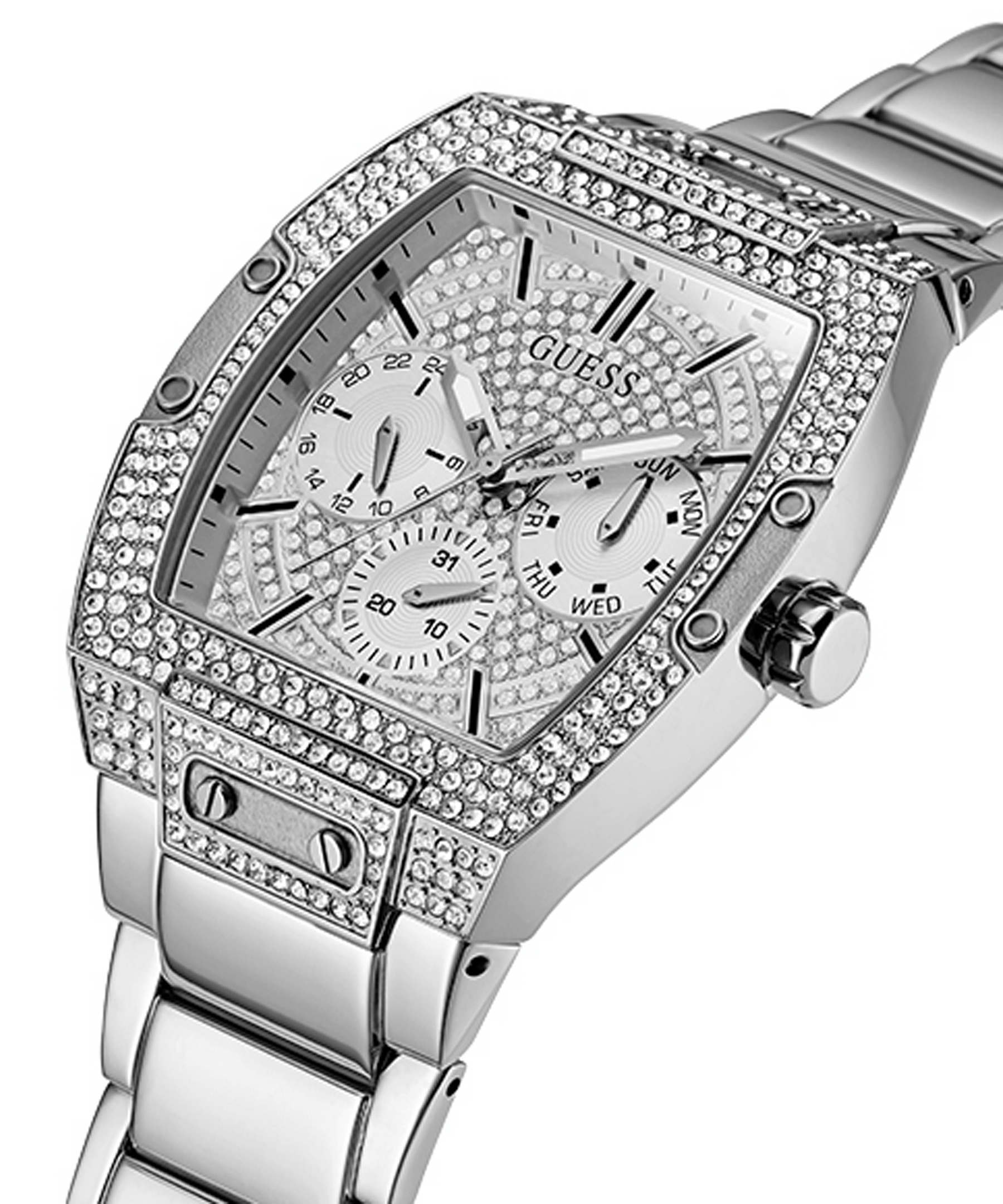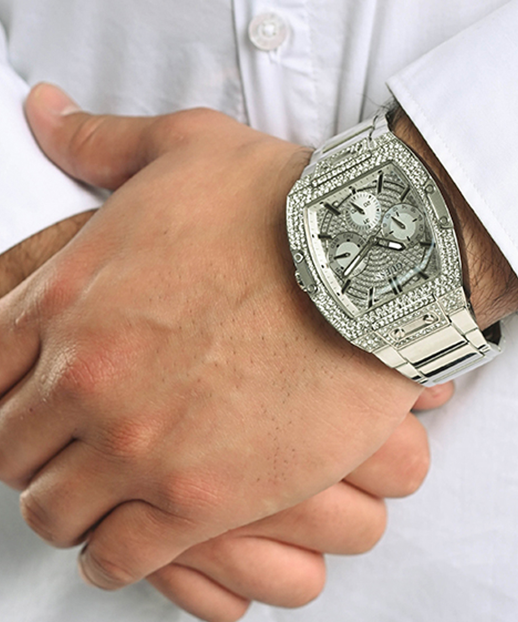 Оригинальные мужские часы GUESS GW0094G1 из коллекции MENS TREND. Корпус и браслет выполнены из стали с покрытием Silver Tone. Размер корпуса - 43 х 42,5 мм. Толщина корпуса - 10,45 мм. Ширина крепления - 28 мм. Застежка - складная клипса. Безель и циферблат декорированы кристаллами. Водозащита - 5 АТМ.