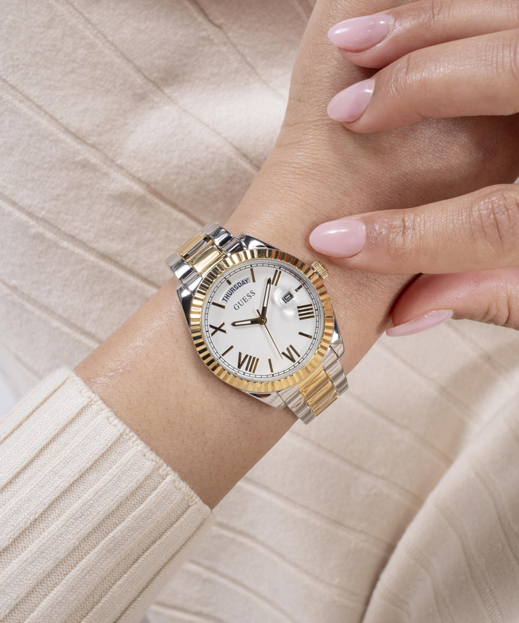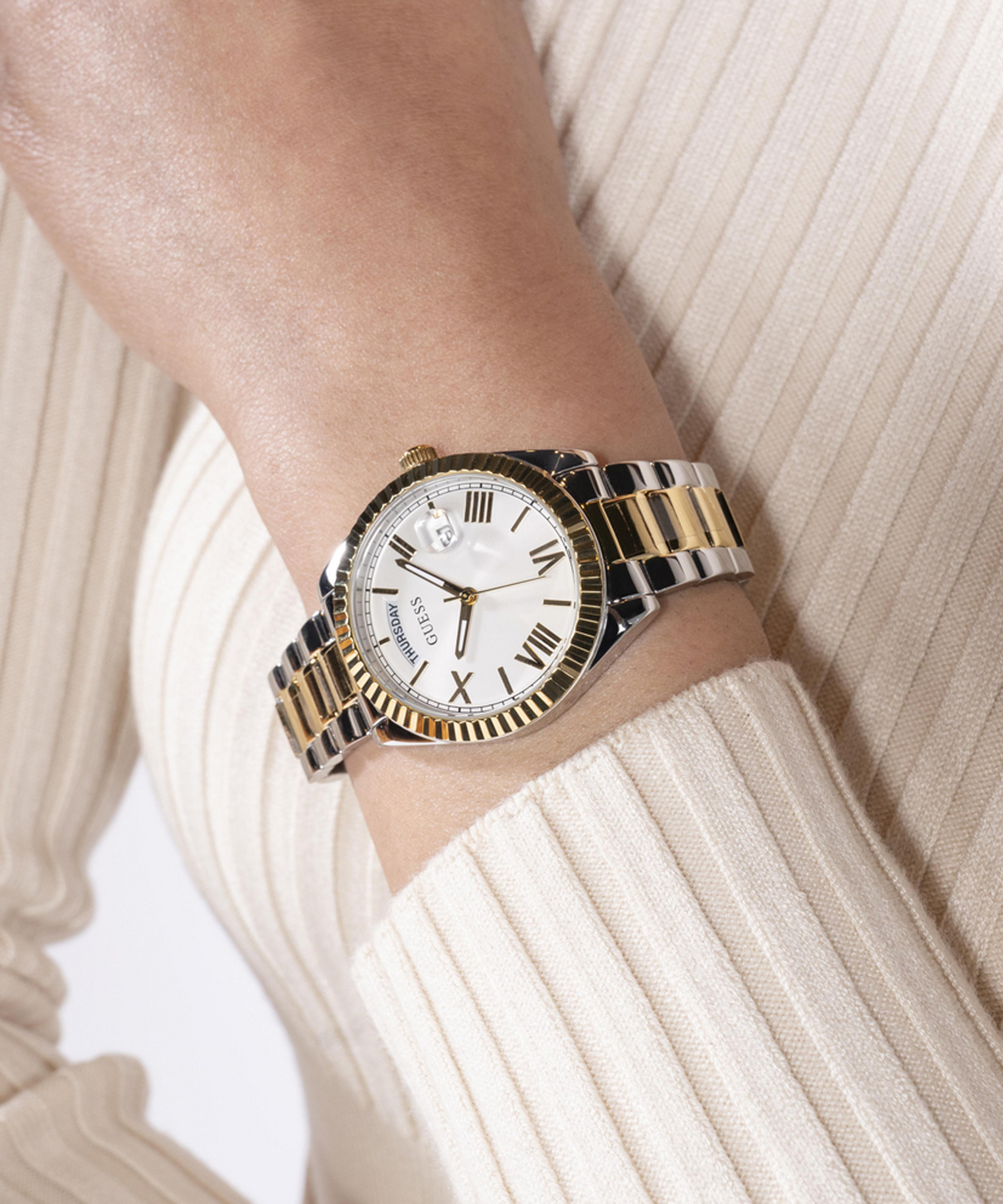 Оригинальные женские часы от престижного американского бренда GUESS – воплощение элегантности и надежности. Установленный японский механизм Miyota гарантирует точность и долговечность, а стальной корпус и браслет с частичным покрытием GOLD придают роскошь и элегантность. Диаметр корпуса 36мм. Рельефный безель делает эти часы настоящим произведением искусства, подчеркивающим вашу индивидуальность. Водозащита 3 АТМ. Этот аксессуар станет идеальным дополнением к вашему стильному образу, сочетая эстетику и функциональность.