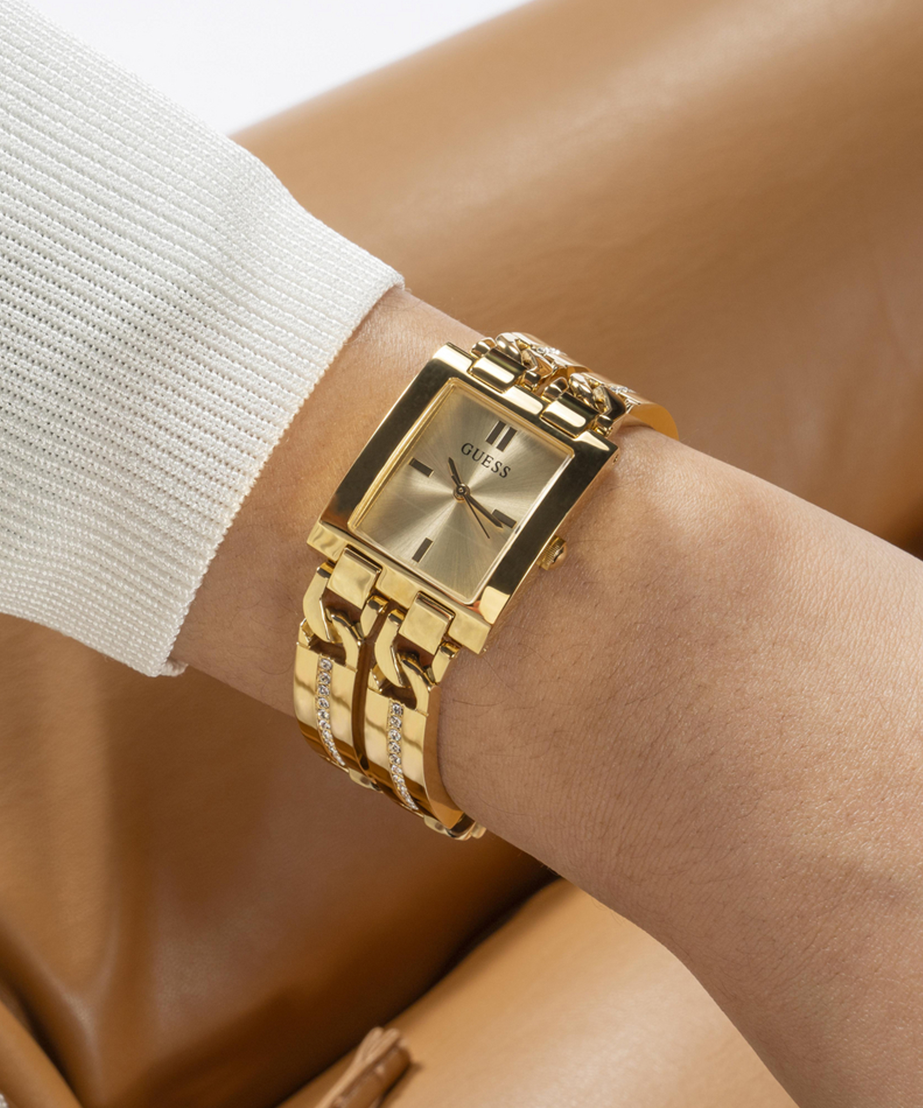 Оснащенный точным кварцевым механизмом Miyota, он гарантирует стабильную и бесперебойную работу. Корпус и браслет из нержавеющей стали покрыты благородным золотистым напылением, что придает роскоши любому образу. Прямоугольный корпус размером 24 мм смотрится изящно и стильно на женском запястье. Аналоговый циферблат, защищенный крепким минеральным стеклом, сохраняет безупречный вид даже при ежедневной носке. Водозащита 3 ATM обеспечивает защиту от брызг и дождя.