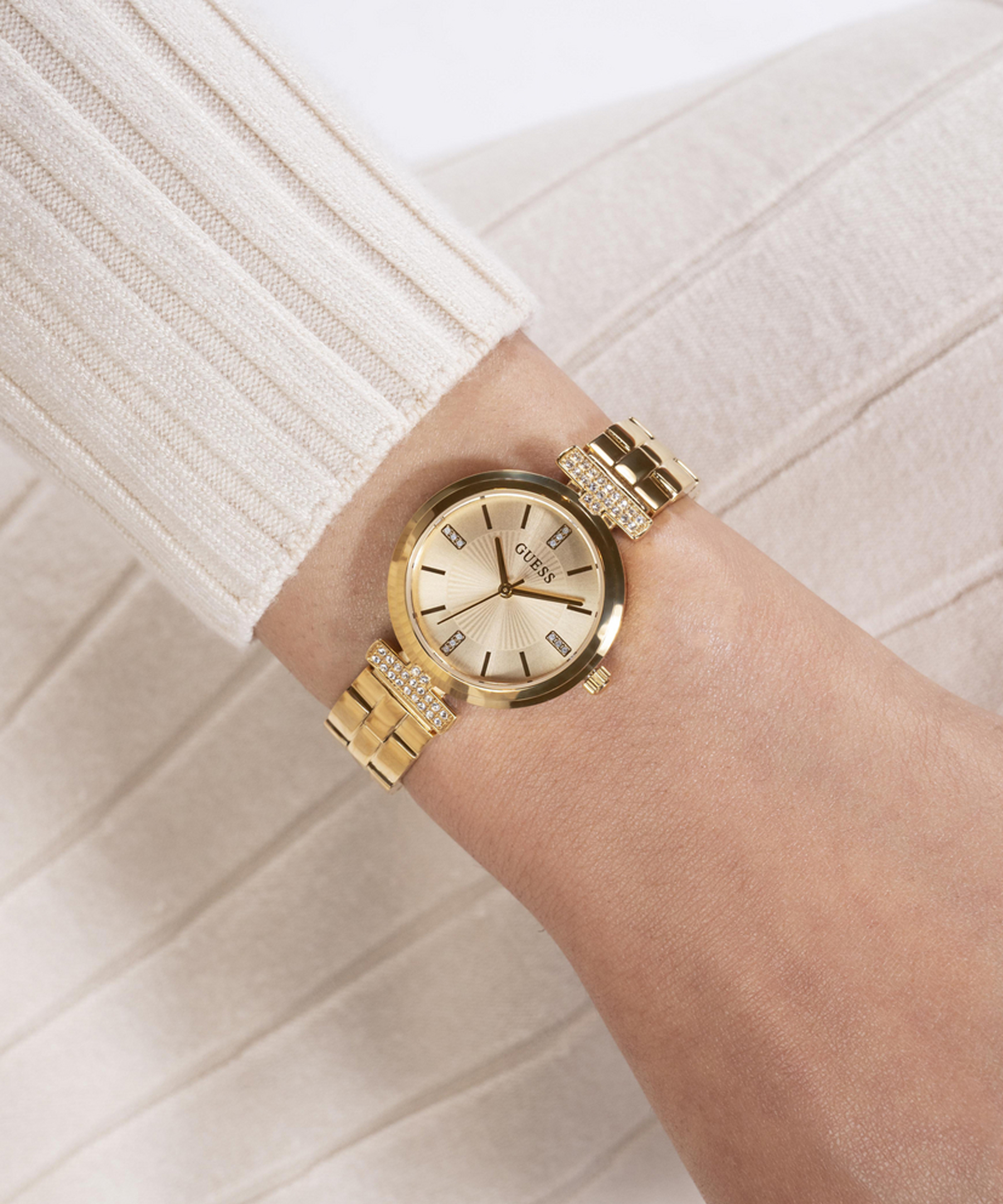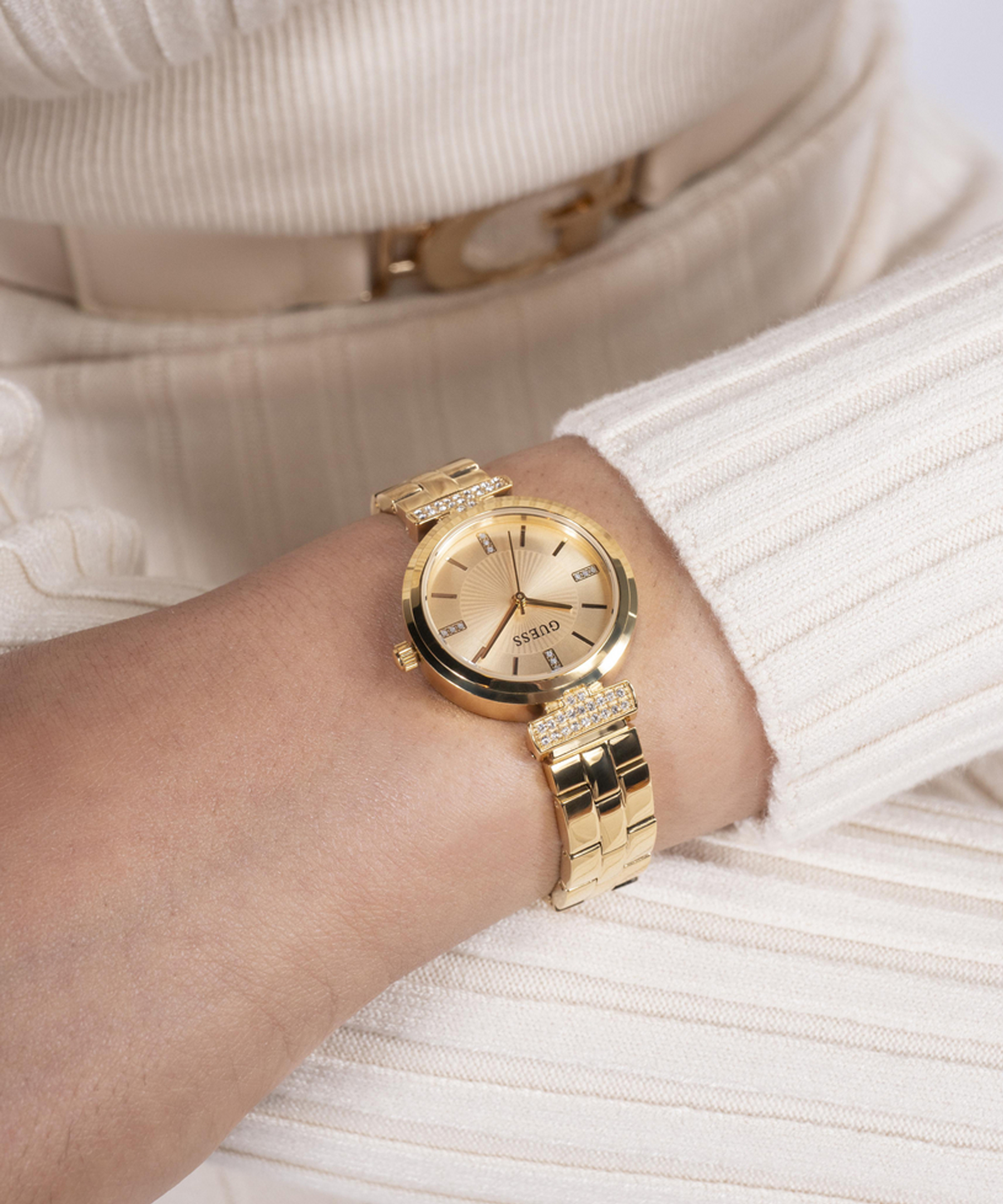 Оригинальные женские часы GESS сочетают в себе нежный изящный дизайн и функциональность и практичность японского кварцевого механизма. Стальной корпус и браслет PVD покрытием Gold. Диаметр корпуса 28мм. Циферблат часов защищен крепким минеральным стеклом. Водозащита 3 АТМ.