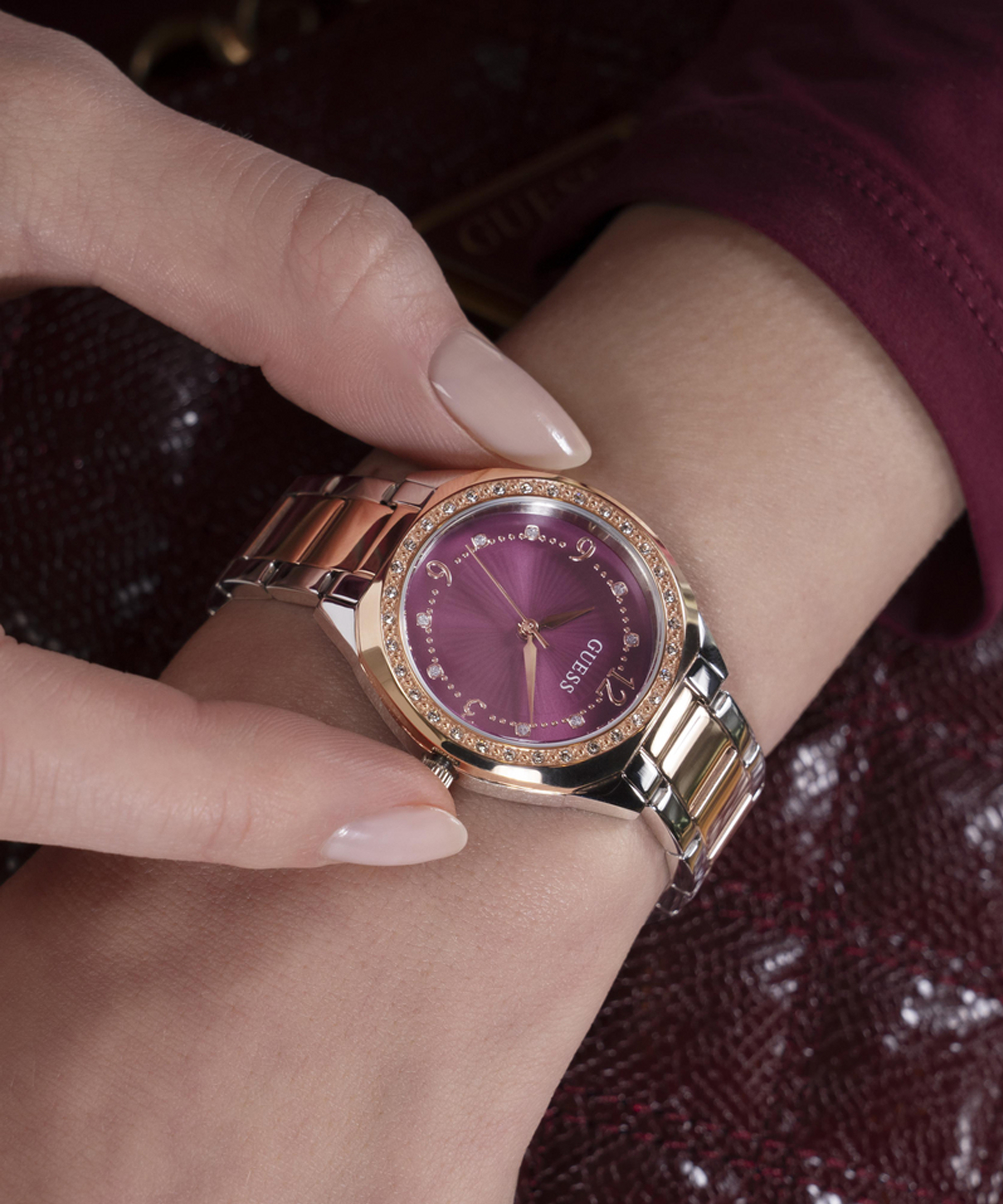 Роскошный розово-золотой циферблат с солнечным шлифованием создает переливающийся эффект при разном освещении. Изящные римские цифры и индексы гармонично сочетаются с тонкими стрелками, добавляя утонченности каждому взгляду на время.