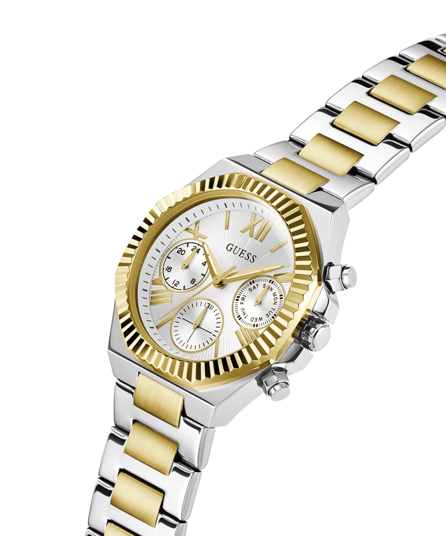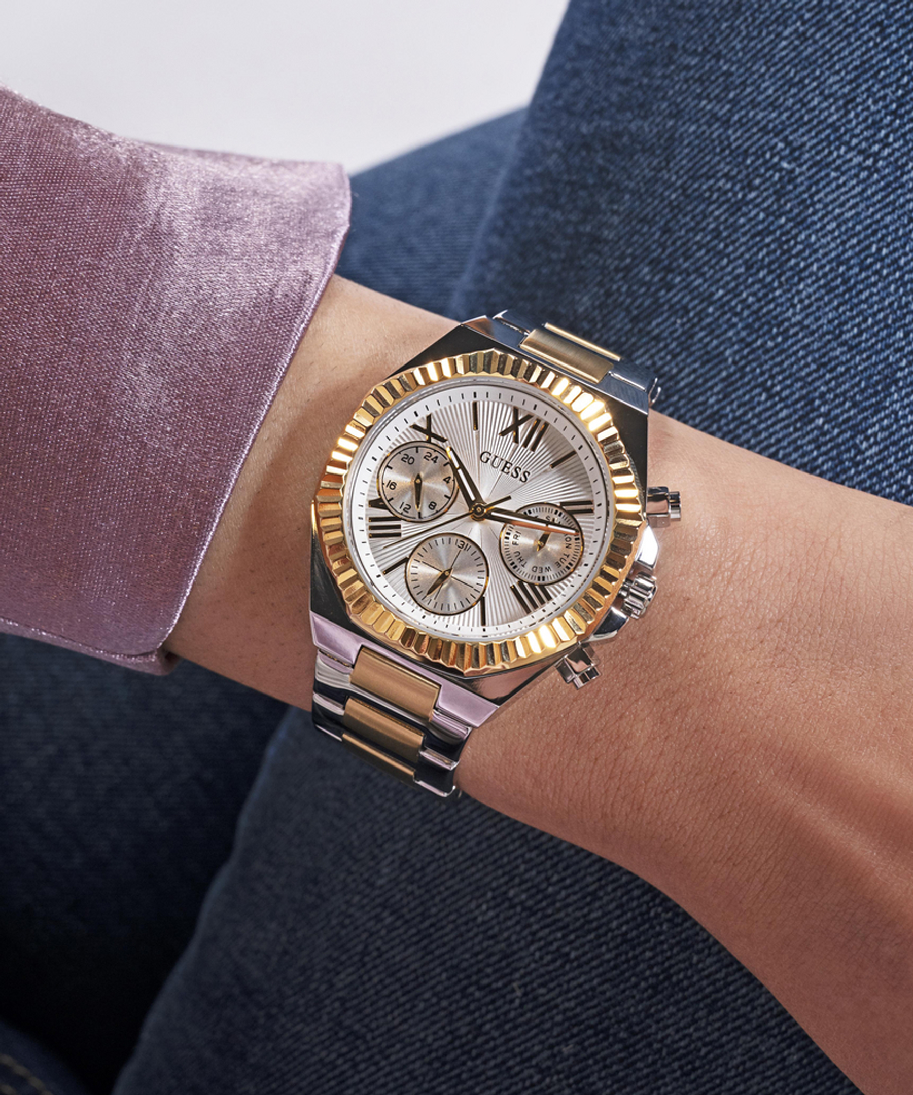 Оригинальные женские часы GUESS – сочетание элегантности и функциональности в каждой детали. Благодаря надежному кварцевому механизму Miyota, эти часы гарантируют точность и долговечность. Стальной корпус с комбинированным покрытием и стильный браслет придают ему роскошный вид. Диаметр корпуса 38 мм. Аналоговый циферблат имеет дополнительные функции: дату, день недели и отображение времени в формате 12/24. Минеральное стекло обеспечивает стойкость к царапинам, а водозащита 3 ATM позволяет безопасно носить часы даже под дождем или при мытье рук. Выберите оригинальные часы Guess и наслаждайтесь идеальным качеством каждый день!