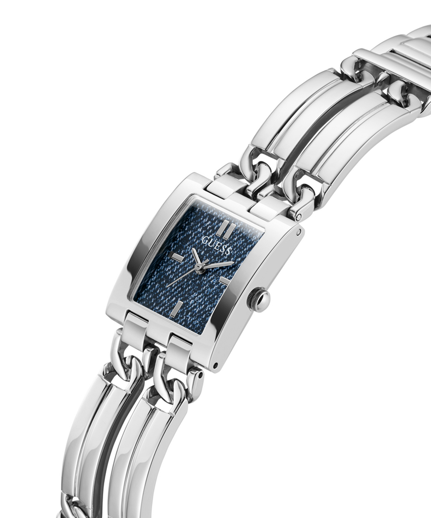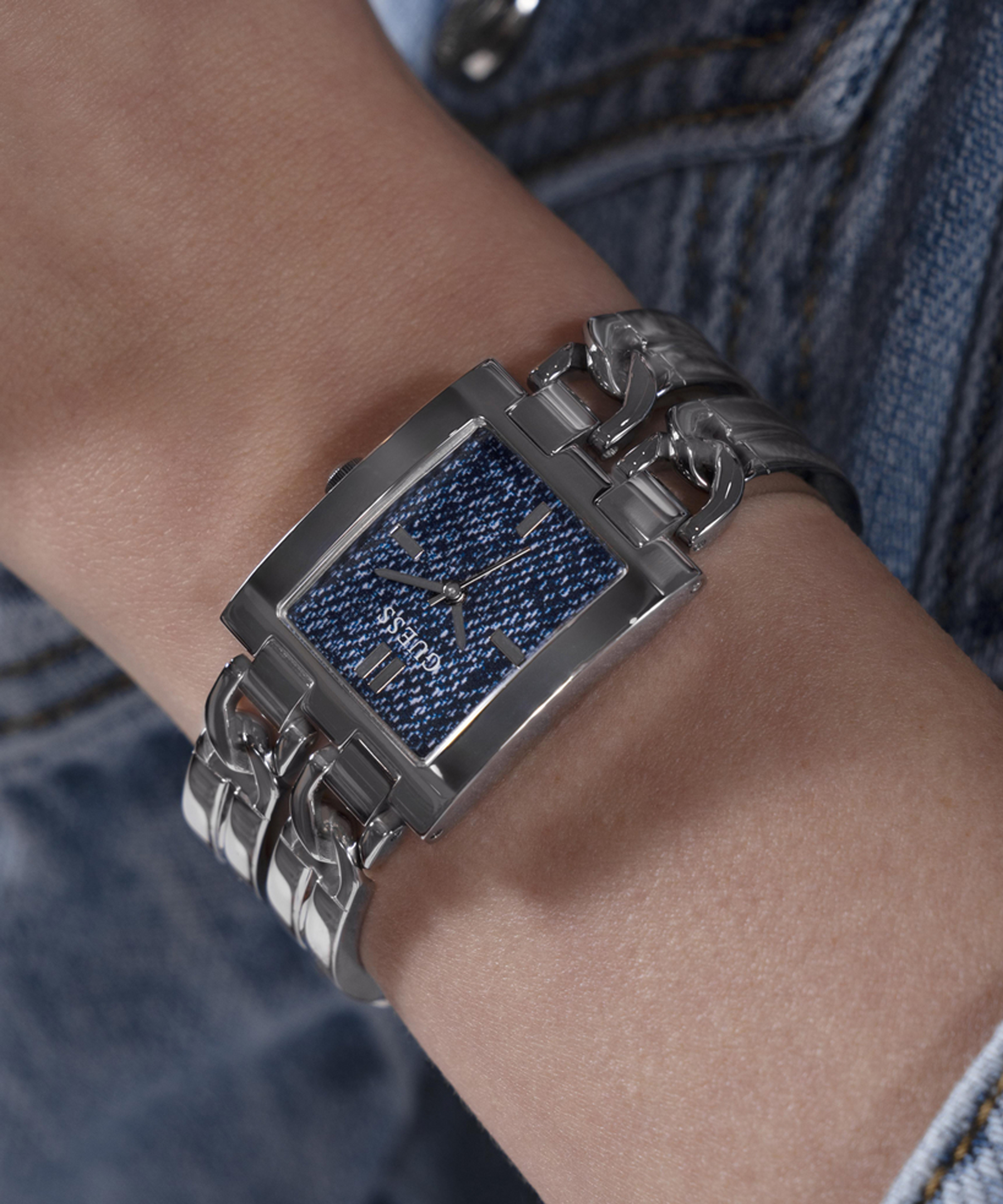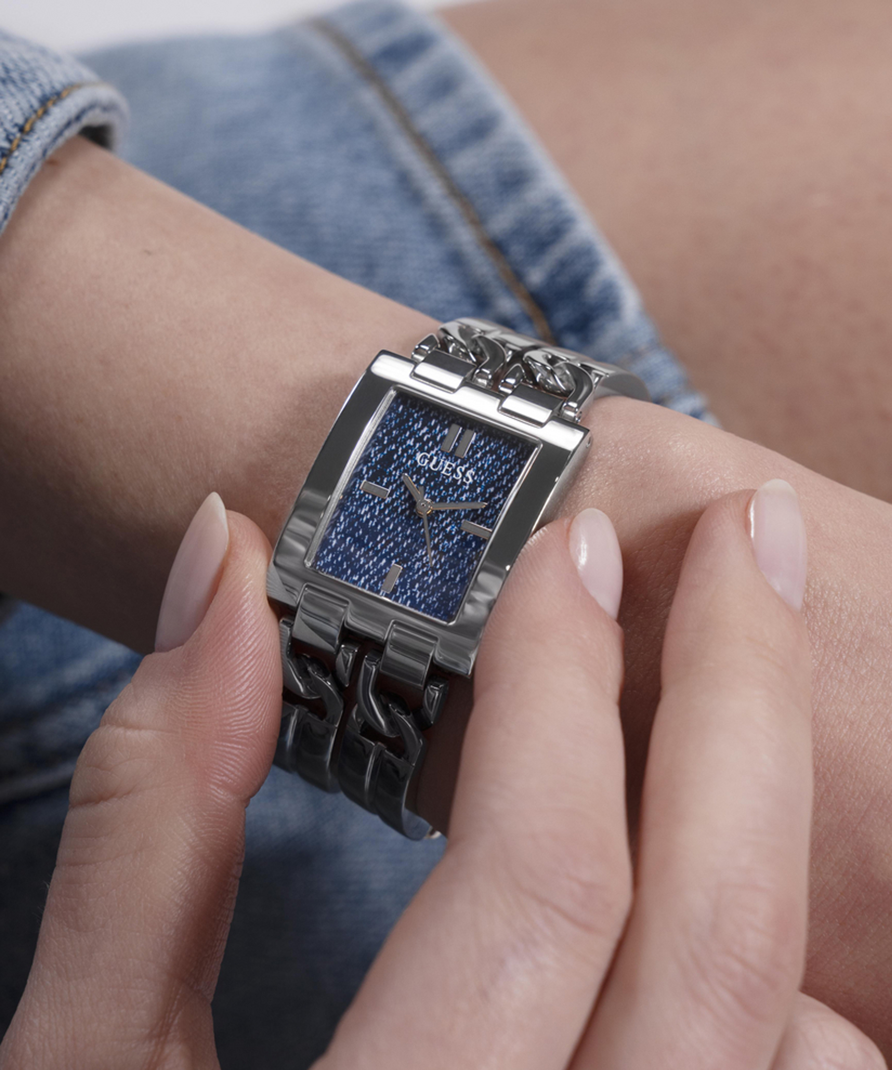 Надежный японский механизм и прочное минеральное стекло гарантируют качество. Циферблат цвета Denim Print выглядит оригинально, а квадратный корпус и браслет из звеньев гармонично смотрятся на руке.