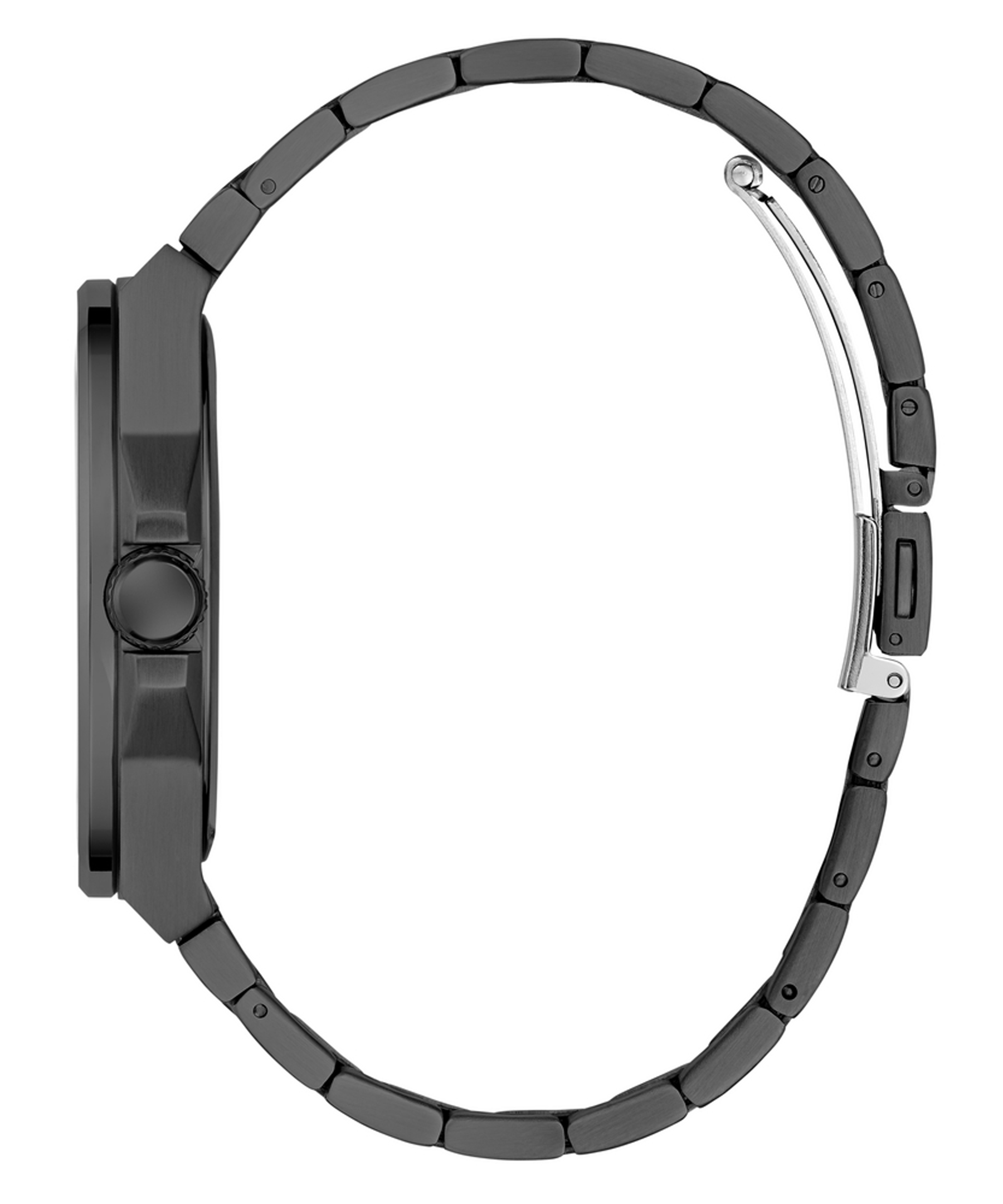 Браслет из нержавеющей стали с полированной отделкой и раскладывающейся застёжкой обеспечивает комфортное и надёжное прилегание к запястью.