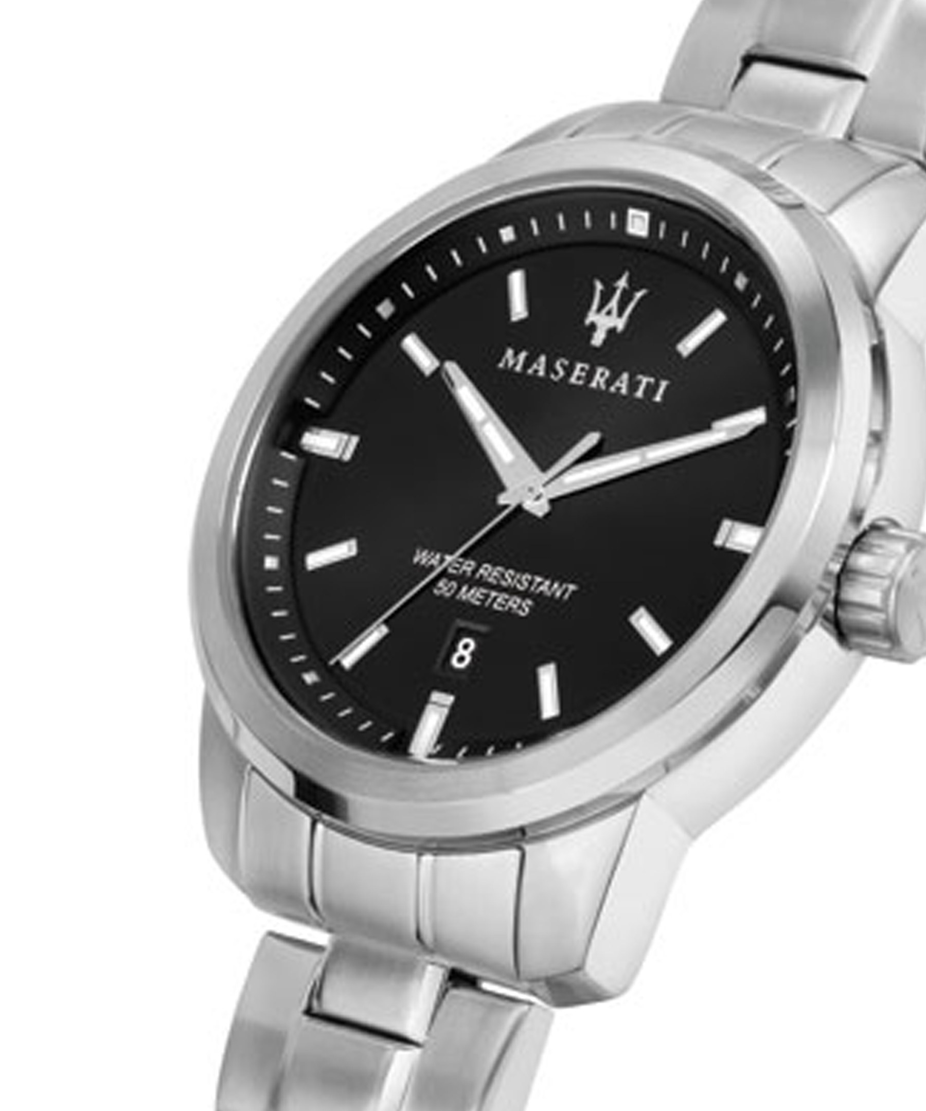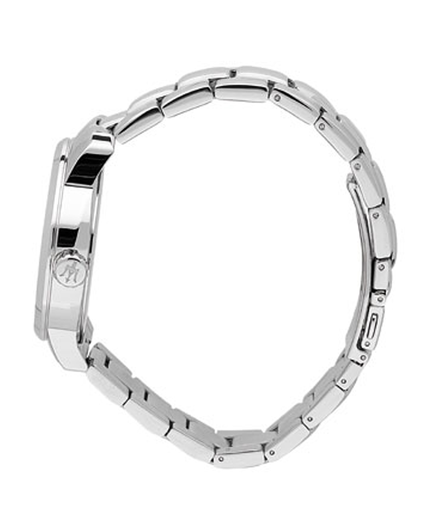 Классические мужские часы в лаконичном, сдержанном стиле, "двигателем" которых служит надежный японский механизм. Циферблат с люминесцентными стрелками, как спидометр на приборной панели, светится ночью, позволяя следить за временем. Браслет из больших, но изящных звеньев гармонично соединен с корпусом часов. Трезубец на циферблате символизирует принадлежность этих часов к известной престижной кампании Maserati, покорившей мир своими респектабельными автомобилями.