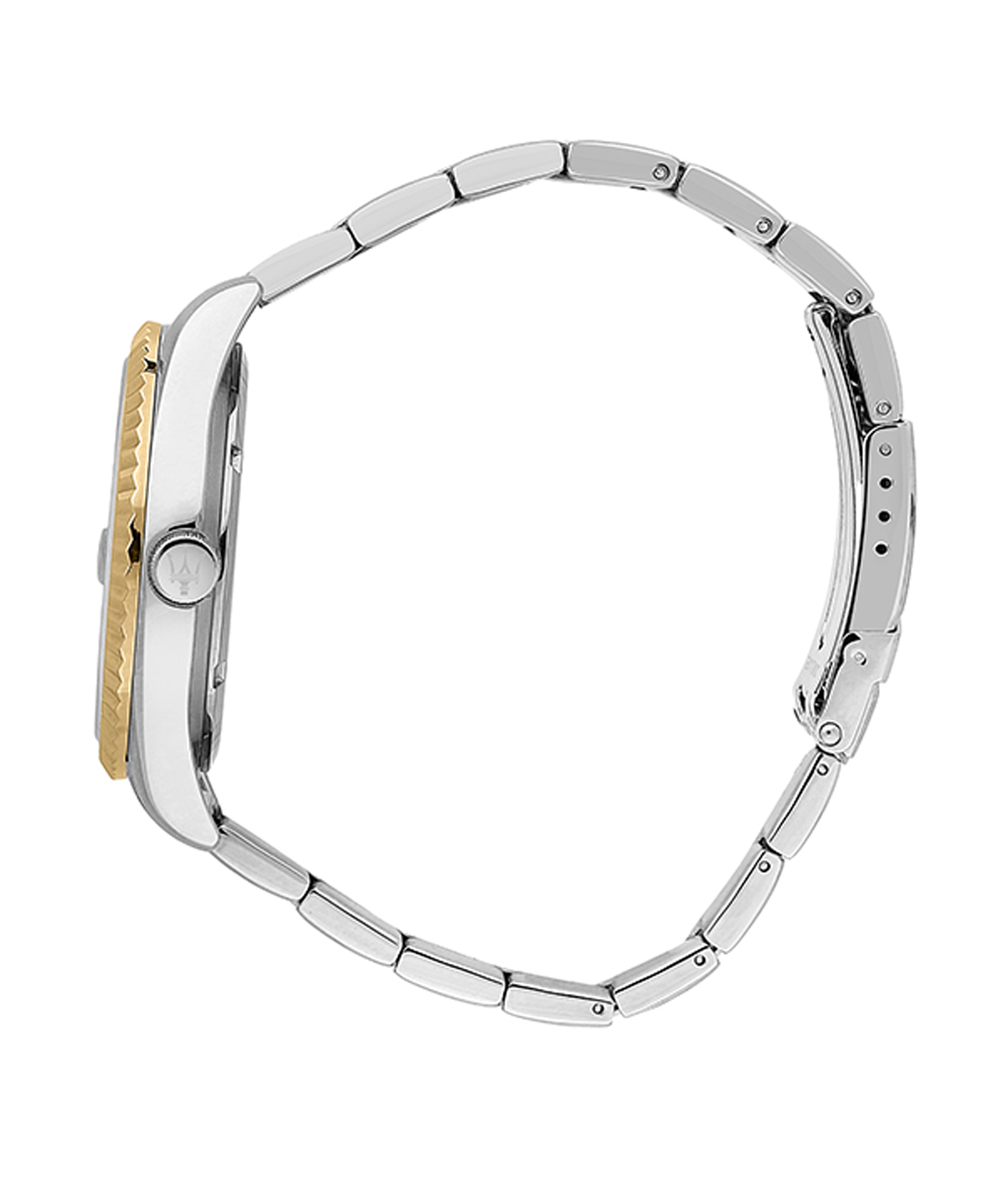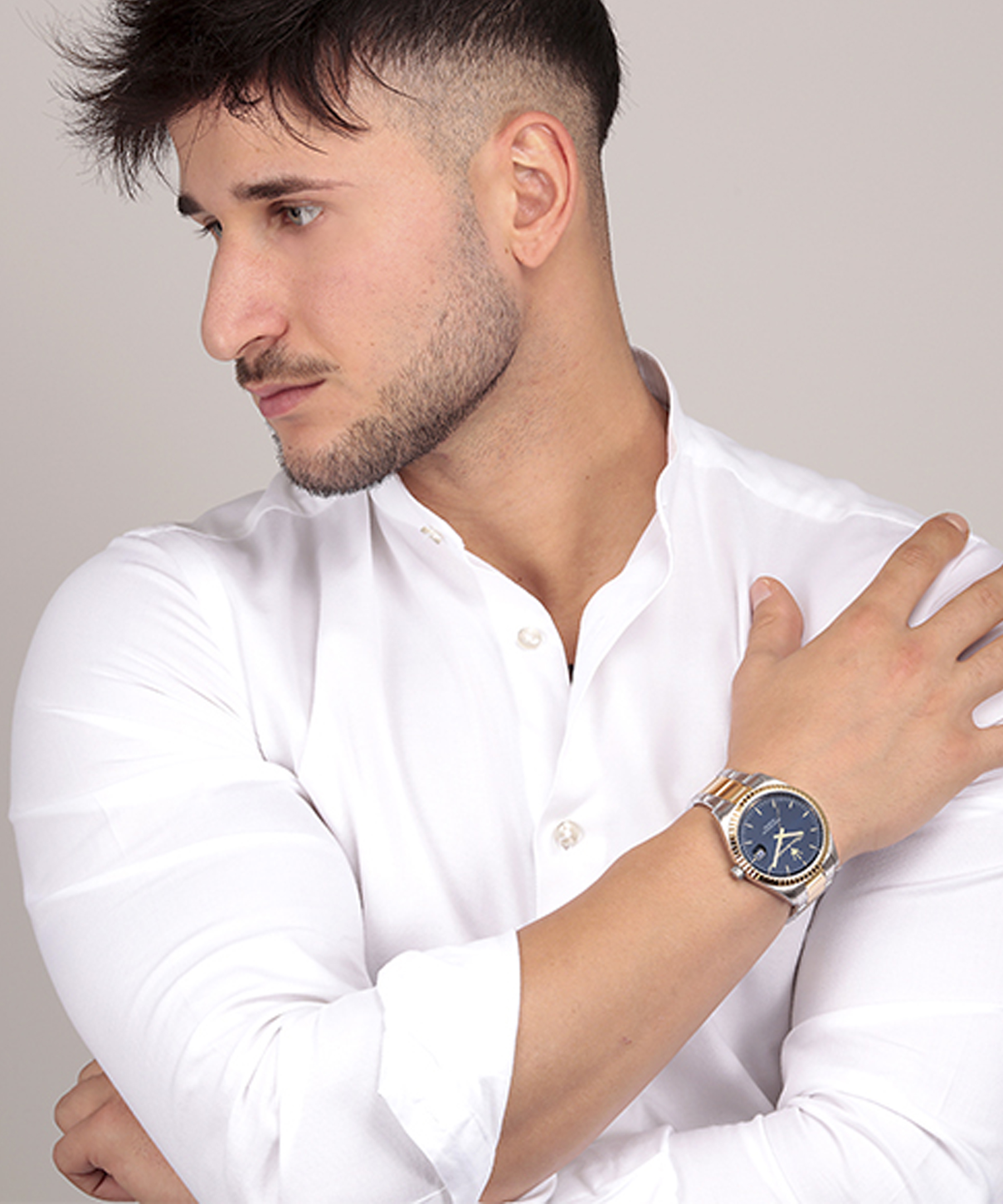 Стальной корпус и браслет с комбинированным покрытием придают часам определенный вид, а глубокий синий циферблат с аналоговой индикацией придает характер. Дополняет композицию минеральное стекло, устойчивое к царапинам, и функция отражения даты, что делает модель не только красивой, но и практичной.