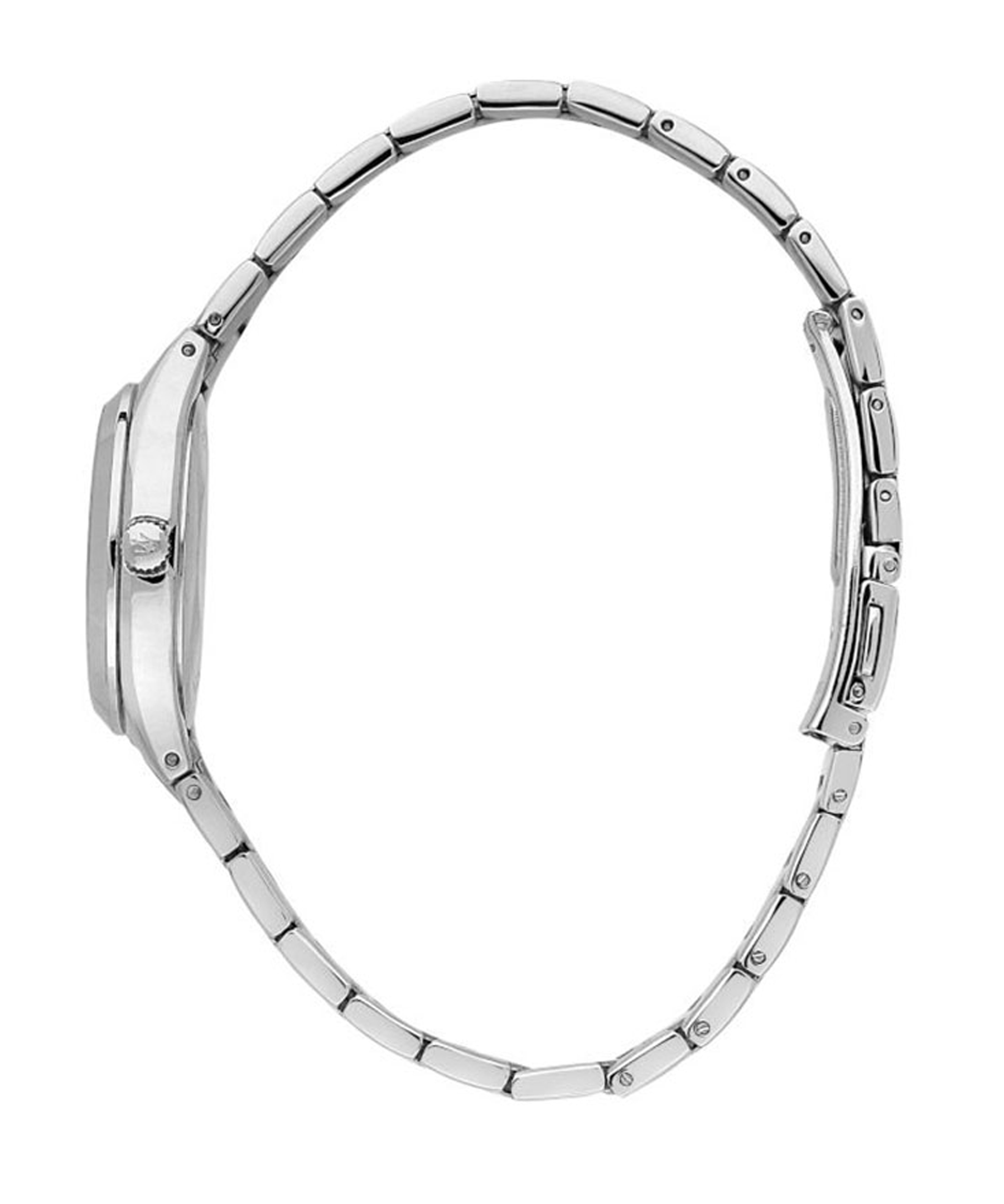 Диаметр корпуса 30 мм делает часы изысканными и непревзойденным аксессуаром для любой женщины. Перламутровый аналоговый циферблат придает часам роскошный вид. Прочное минеральное стекло защищает надежно защищает циферблат и механизм часов. Водозащита 5 АТМ позволяет носить часы без забот о попадании на часы воды.