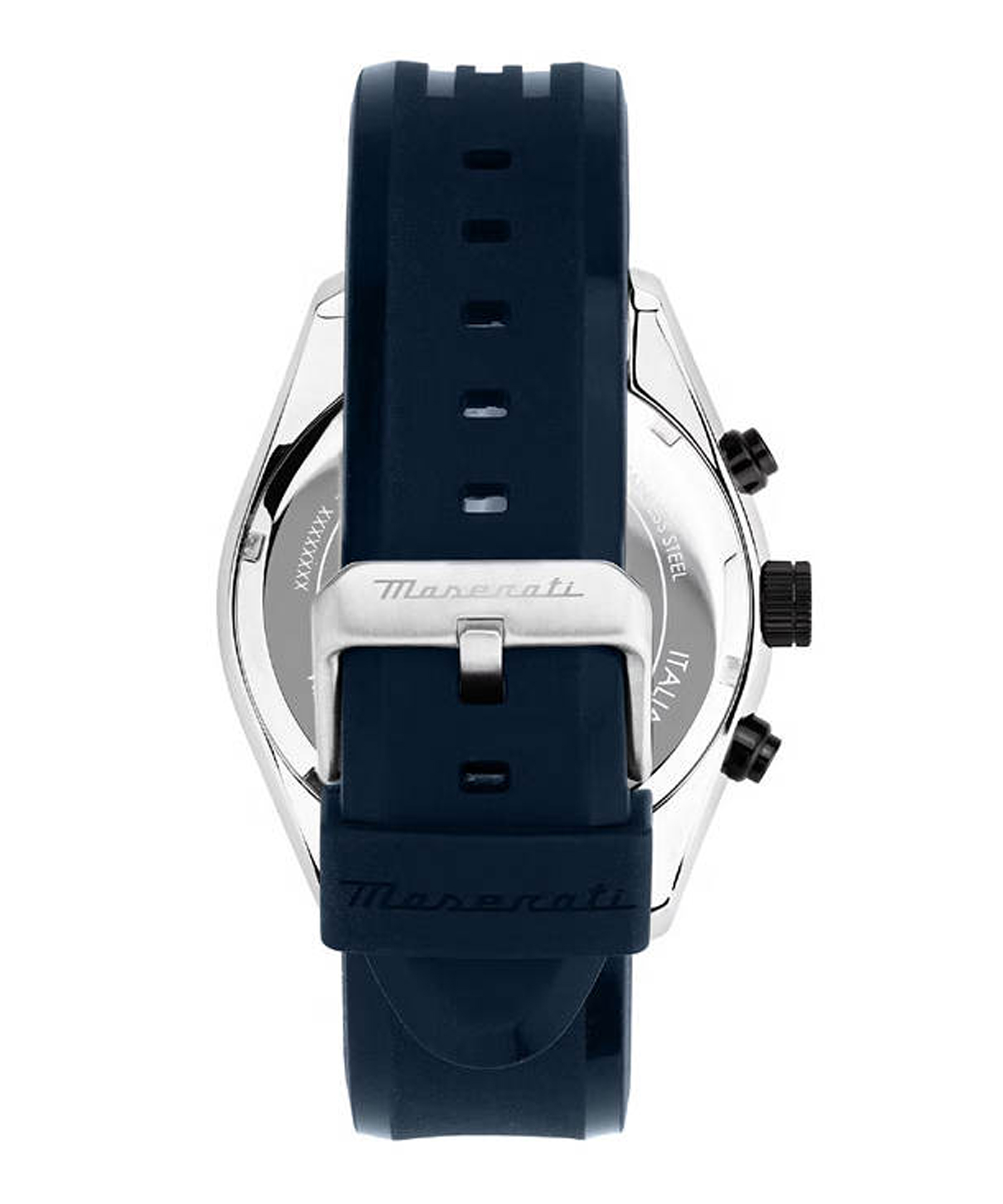 Оригинальные мужские часы-хронограф Maserati из коллекции Traguardo – это сочетание мощного характера, итальянской изысканности и современных технологий. Его массивный корпус диаметром 45 мм и толщиной 13 мм изготовлен из высококачественной нержавеющей стали, что гарантирует надежность и долговечность.