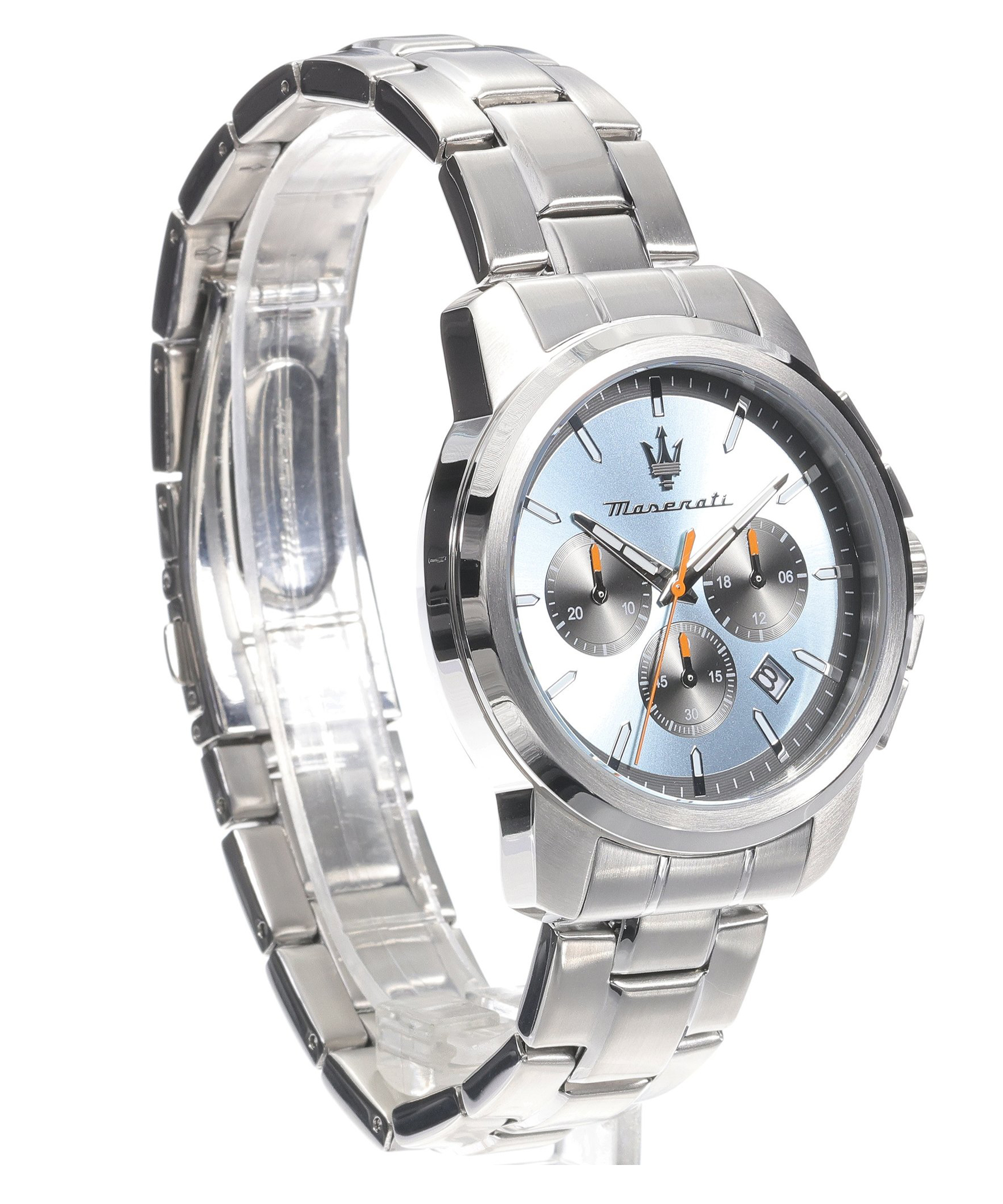 Мужские многофункциональные часы-хронограф MASERATI – это воплощение стильного дизайна и технического совершенства. Стальной корпус и браслет гармонично сочетают элегантность и прочность, а диаметр корпуса 42 мм придает часам выразительный и современный вид.