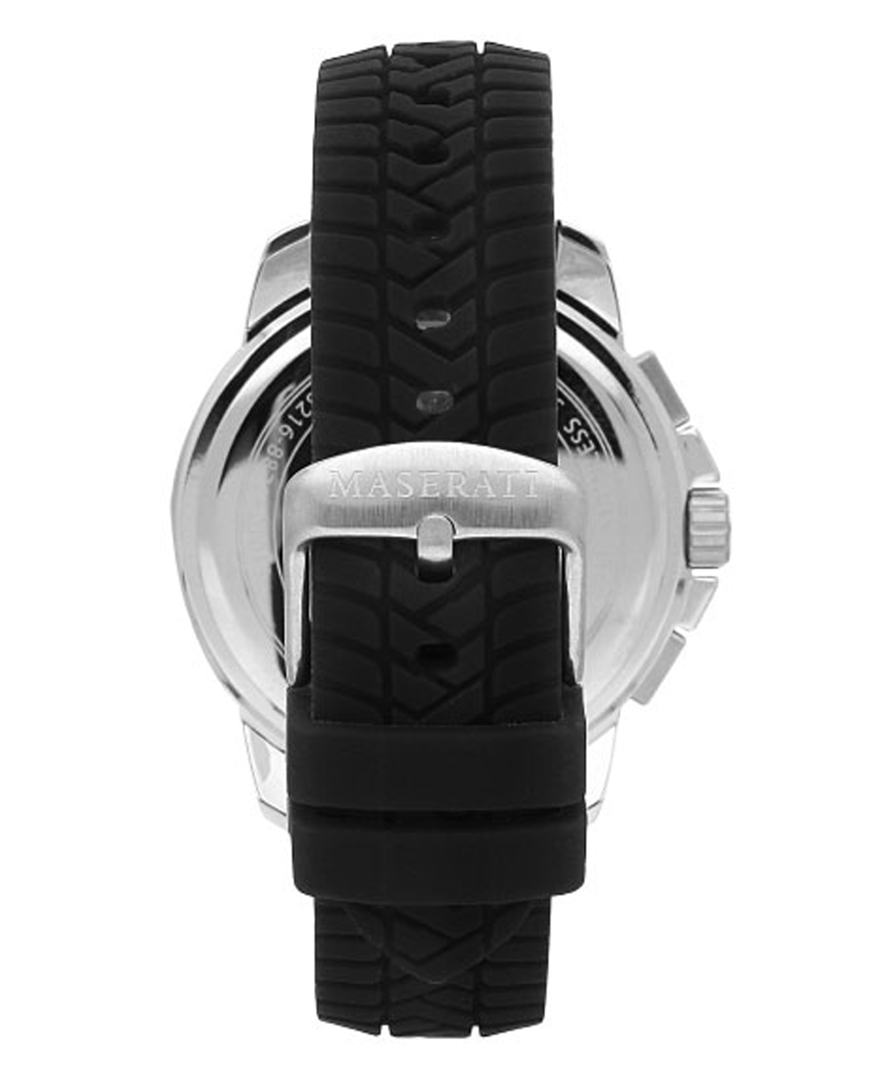 Черный ремешок, напоминающий протектор шины, массивный циферблат в стиле спидометра и фирменный трезубец Maserati – все это говорит о силе, решительности и бескомпромиссном стиле владельца. Эти часы – выбор настоящих мужчин, которые ценят качество, престиж и характер.