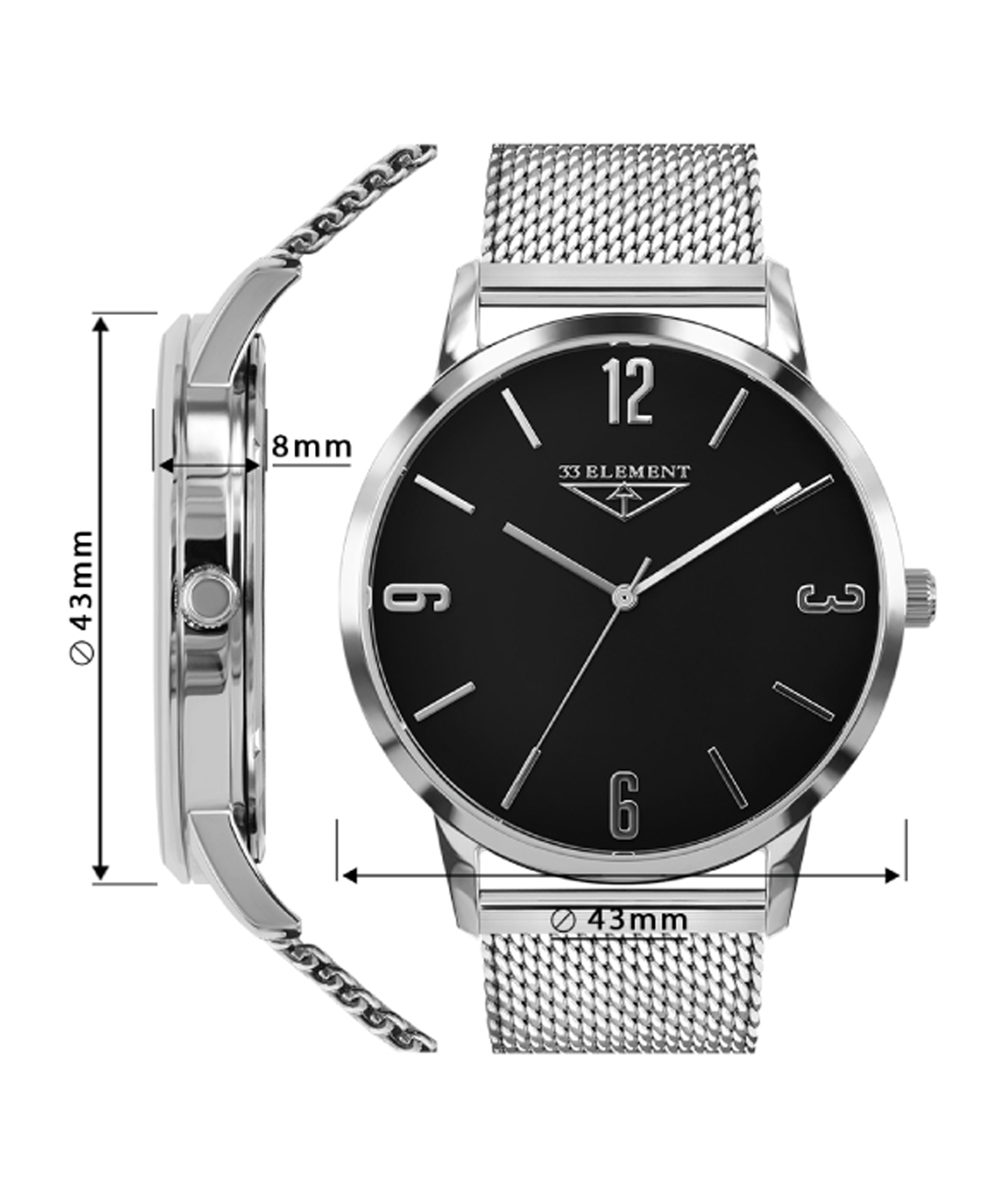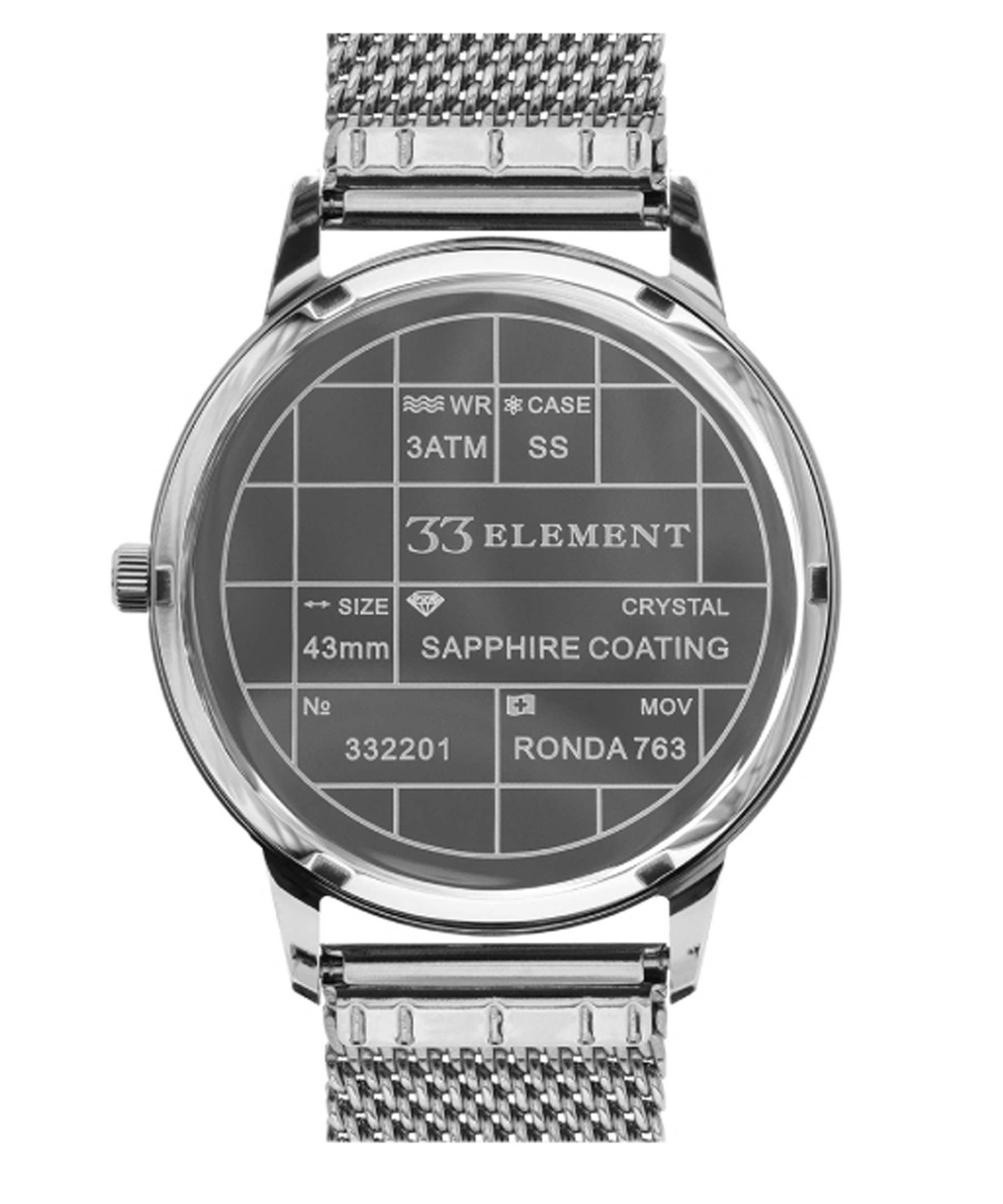 Витончена простота, надійність і стиль — усе це поєднано у класичному чоловічому годиннику 33 Element. Усередині корпусу працює швейцарський кварцовий механізм Ronda 763, відомий своєю точністю та довговічністю.