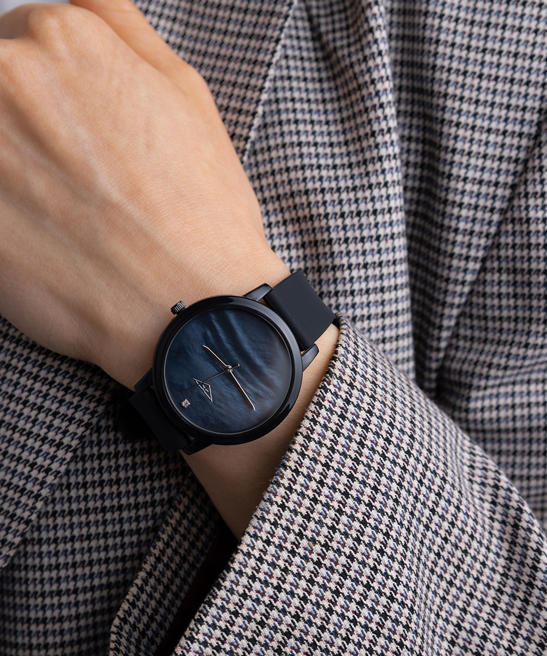 Стильний годинник 33 Element з надійним швейцарським механізмом виготовлений з чорного пластику, що надає їм надзвичайної легкості. На перламутровому синьому циферблаті сріблясті стрілки та логотип бренду контрастно відтіняють блакитний фон. Кристал Сваровскі дуже виразно світиться на рівні 12 годин, виконуючи функцію індексу часу. Захищений циферблат мінеральним склом із сапфіровим покриттям, стійким до механічних пошкоджень. Силіконовий чорний ремінець комфортно та надійно утримує годинники на Вашій руці.