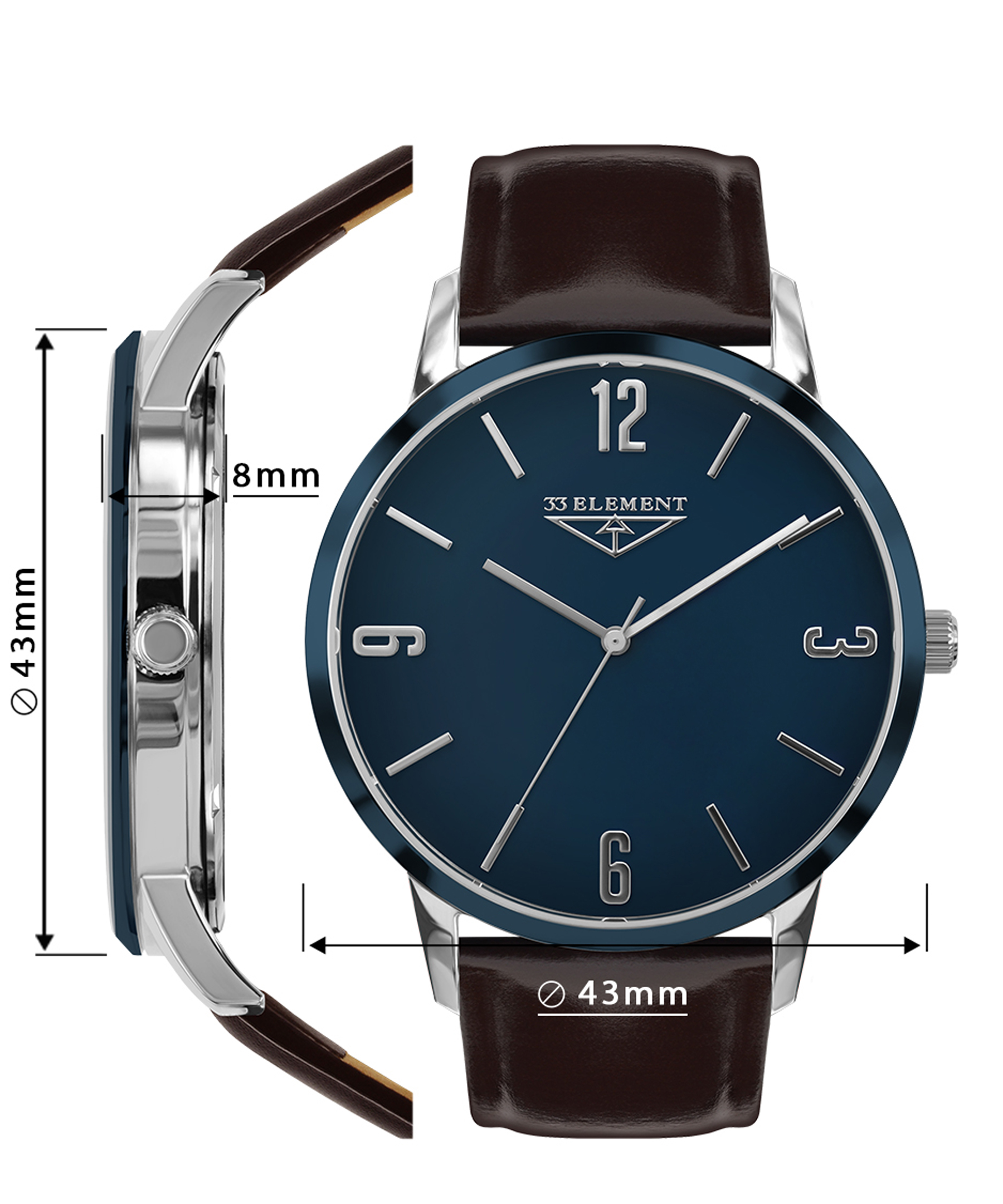 Чоловічий кварцовий аналоговий годинник 33 Element 332202 – елегантний аксесуар, який поєднує сучасний дизайн та швейцарську якість.