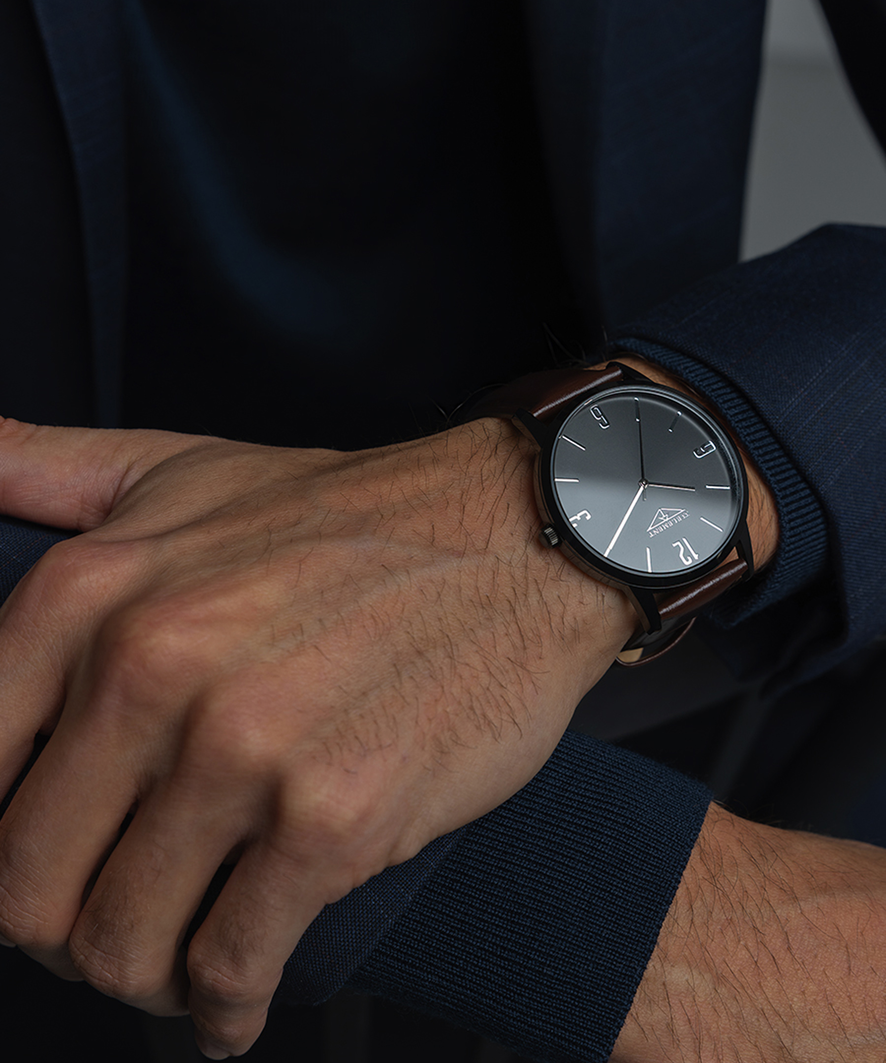Сталевий корпус із покриттям чорного кольору має діаметр 43 мм — оптимальний для сучасного чоловічого стилю. Елегантності додає коричневий шкіряний ремінець із класичною застібкою-пряжкою, що забезпечує комфортне носіння протягом усього дня.