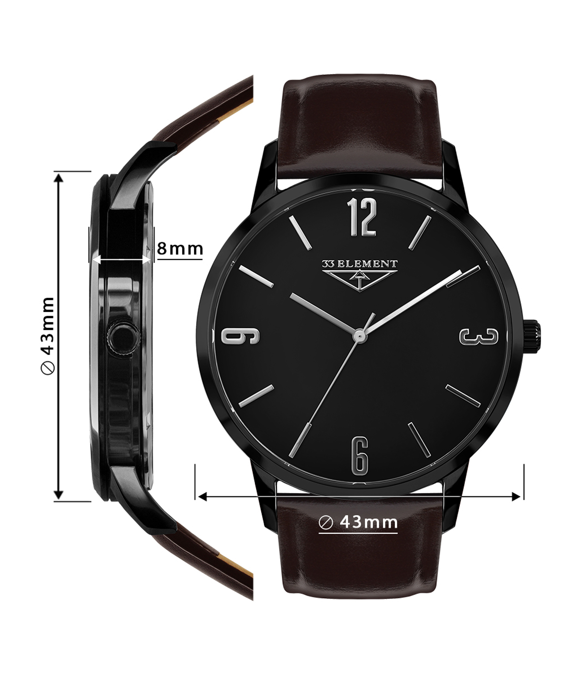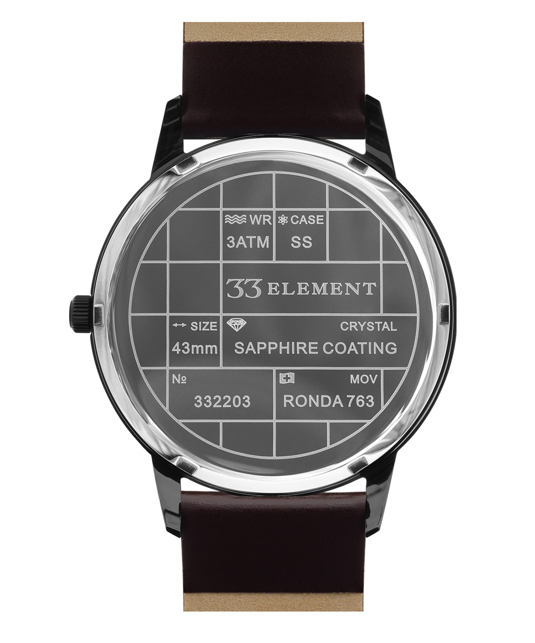 Годинник 33 Element від литовського бренду 33 Element — це гармонійне поєднання класичного дизайну, надійності та доступності. Основу моделі становить швейцарський кварцовий механізм Ronda, відомий своєю точністю та довговічністю, що гарантує впевненість у кожній хвилині.