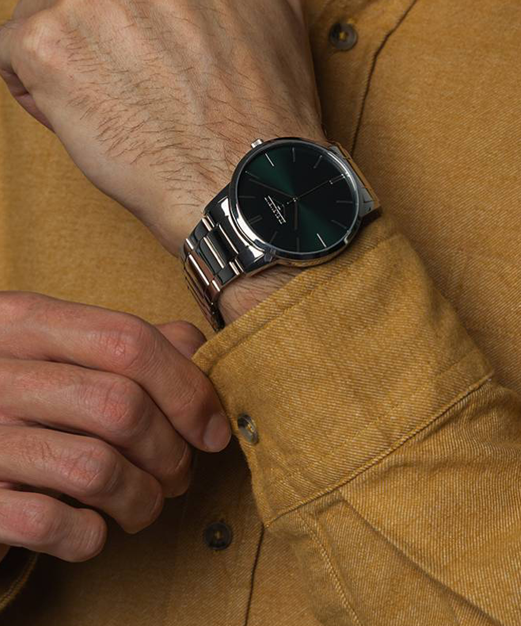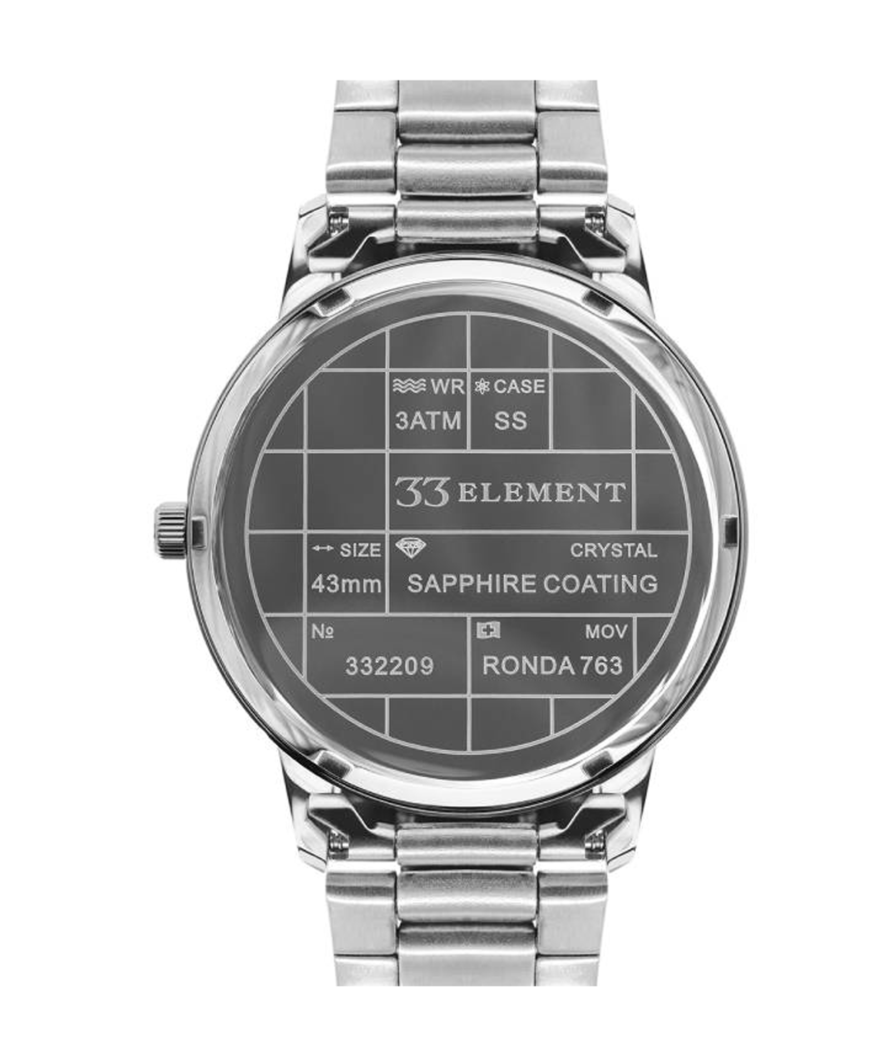 Чоловічий наручний годинник 332209 у класичному стилі від відомого бренду 33 Element. Кварцевий механізм Ronda 763 забезпечує точність ходу годинника. Сталеві корпус та браслет. Діаметр корпусу - 43 мм, товщина - 8 мм. Сапфірове скло захищає аналоговий циферблат від зовнішніх пошкоджень. Водозахист - 3 АТМ.