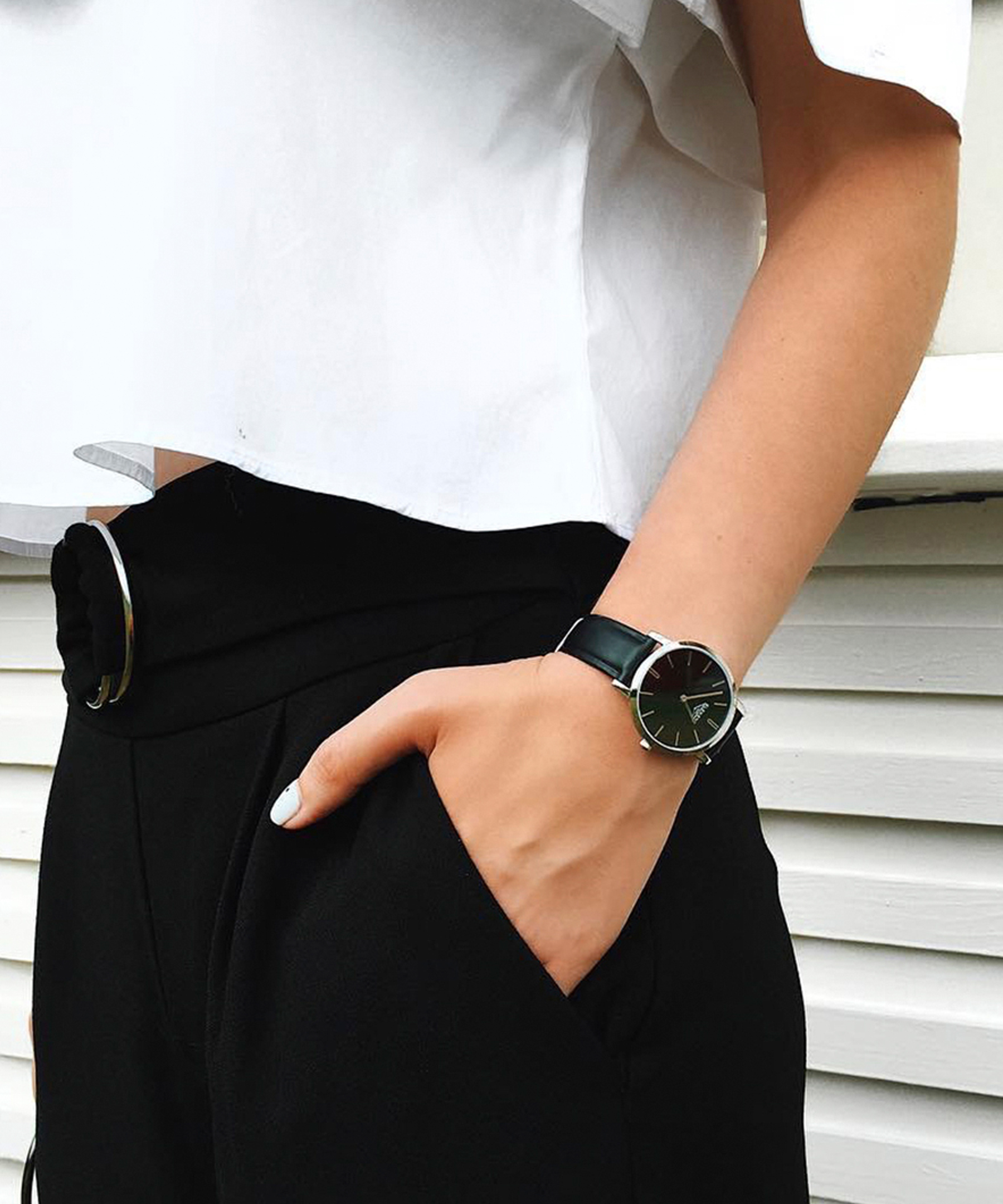 Стильний жіночий наручний годинник 33 Element з високоточним швейцарським механізмом Ronda виготовлений з якісної сталі. Діаметр корпусу - 34 мм. На чорному циферблаті розташовані елегантні, у вигляді тонких сріблястих штрихів, індекси часу. Мінеральне скло з сапфіровим покриттям має властивость антивідблиску та має високий рівень прозорості та міцності. Простота ліній, класичний дизайн, зручний шкіряний ремінець та універсальність кольору роблять цю модель однією з найпопулярніших та підкреслюють вишуканий смак жінки.