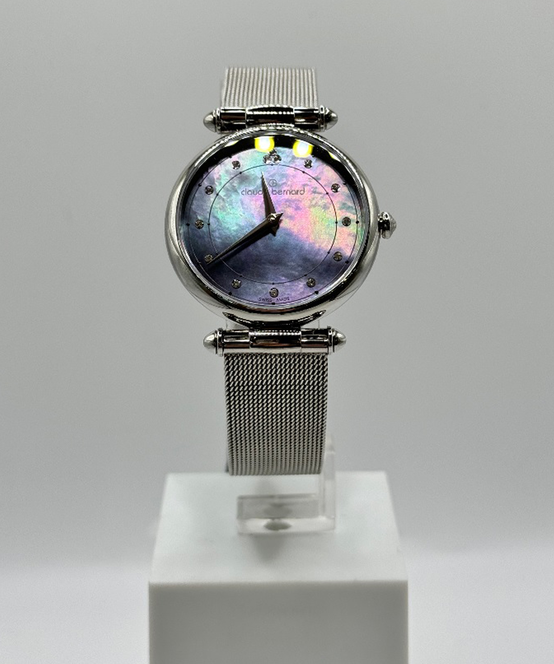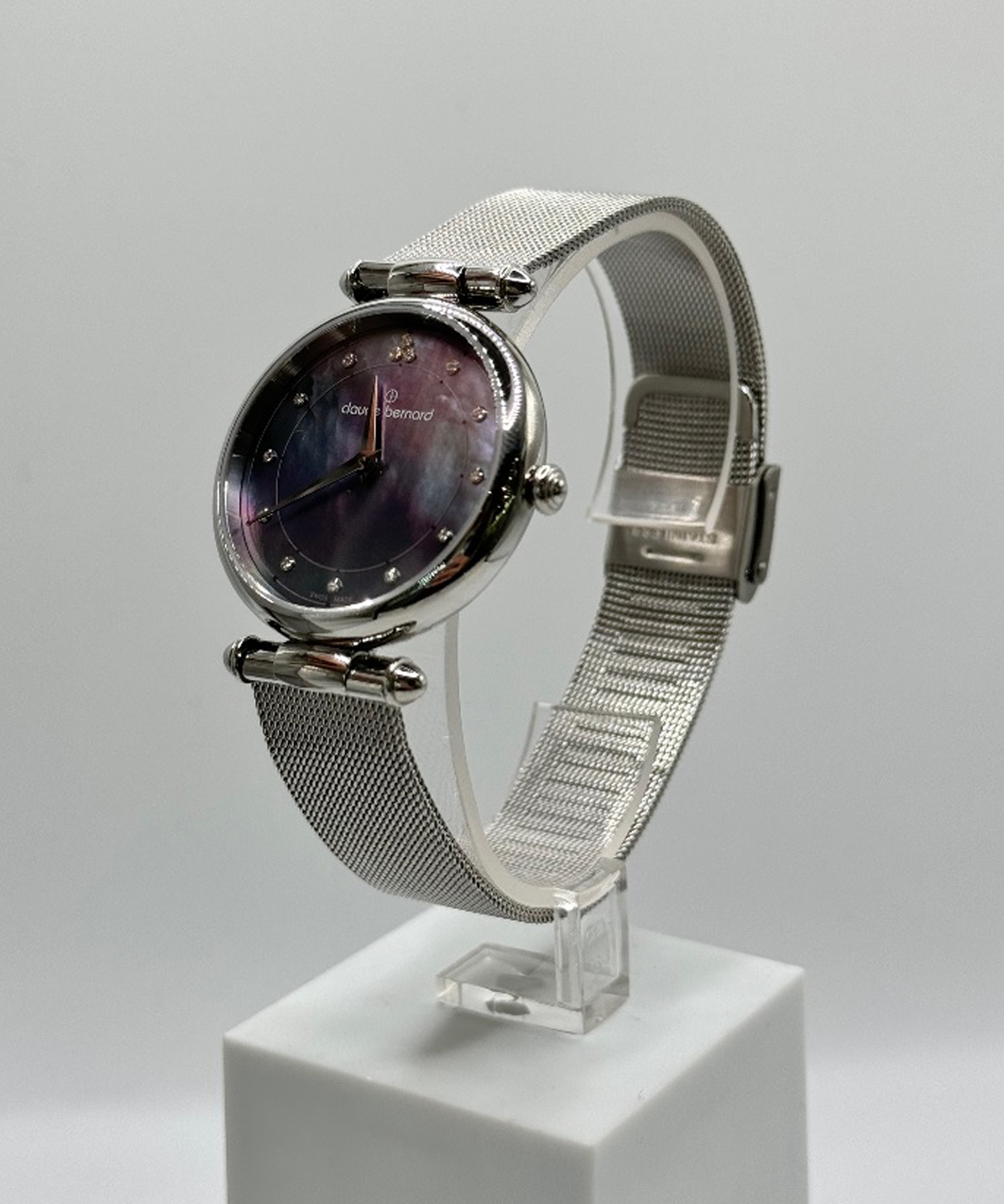 Стильний жіночий наручний годинник Claude Bernard з колекції Dress Code з високоточним швейцарським механізмом Ronda виготовлений з нержавіючої сталі високої якості. На циферблаті чорного перламутрового кольору як позначки часу сяють кристали Сваровські. Сапфірове скло, стійке до виникнення подряпин, додає образу аксесуара дорогий, благородний блиск. Браслет міланського плетіння з нержавіючої сталі кріпиться за допомогою елегантних декоративних кріплень. Годинник справляє враження вишуканого елітного аксесуара.