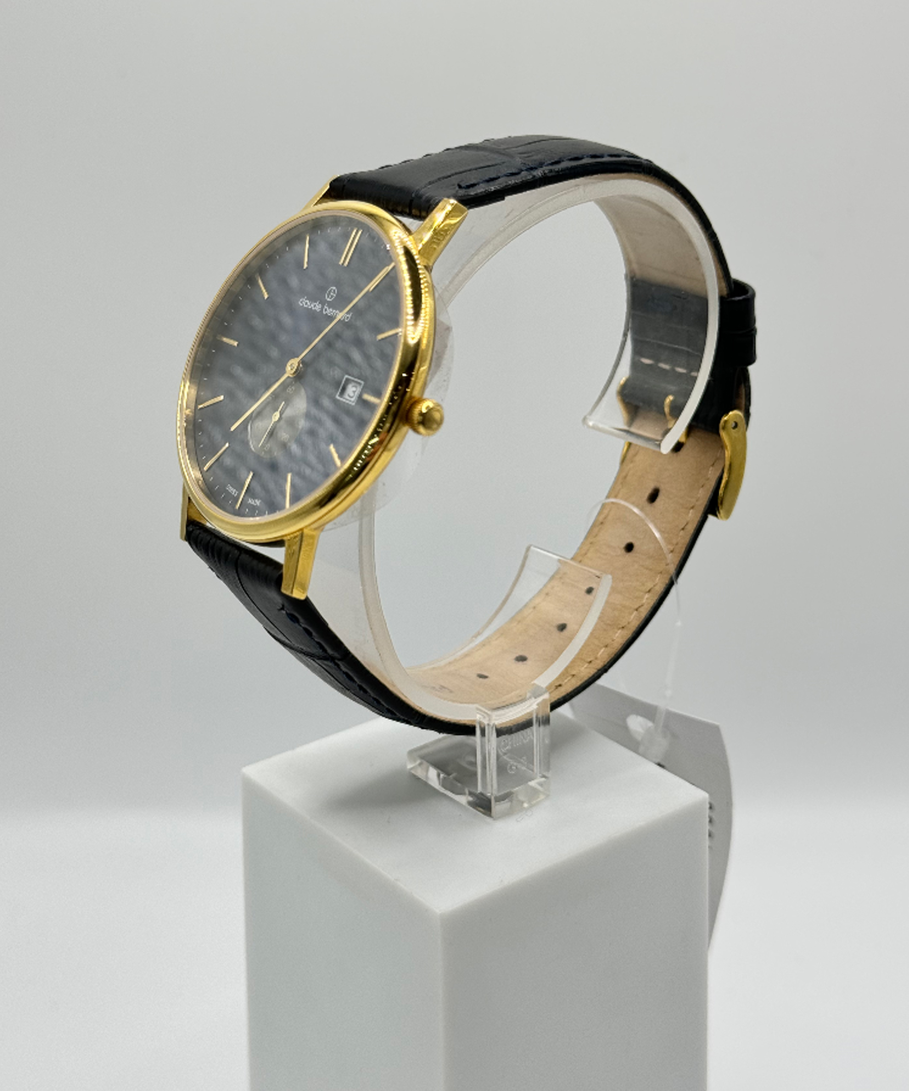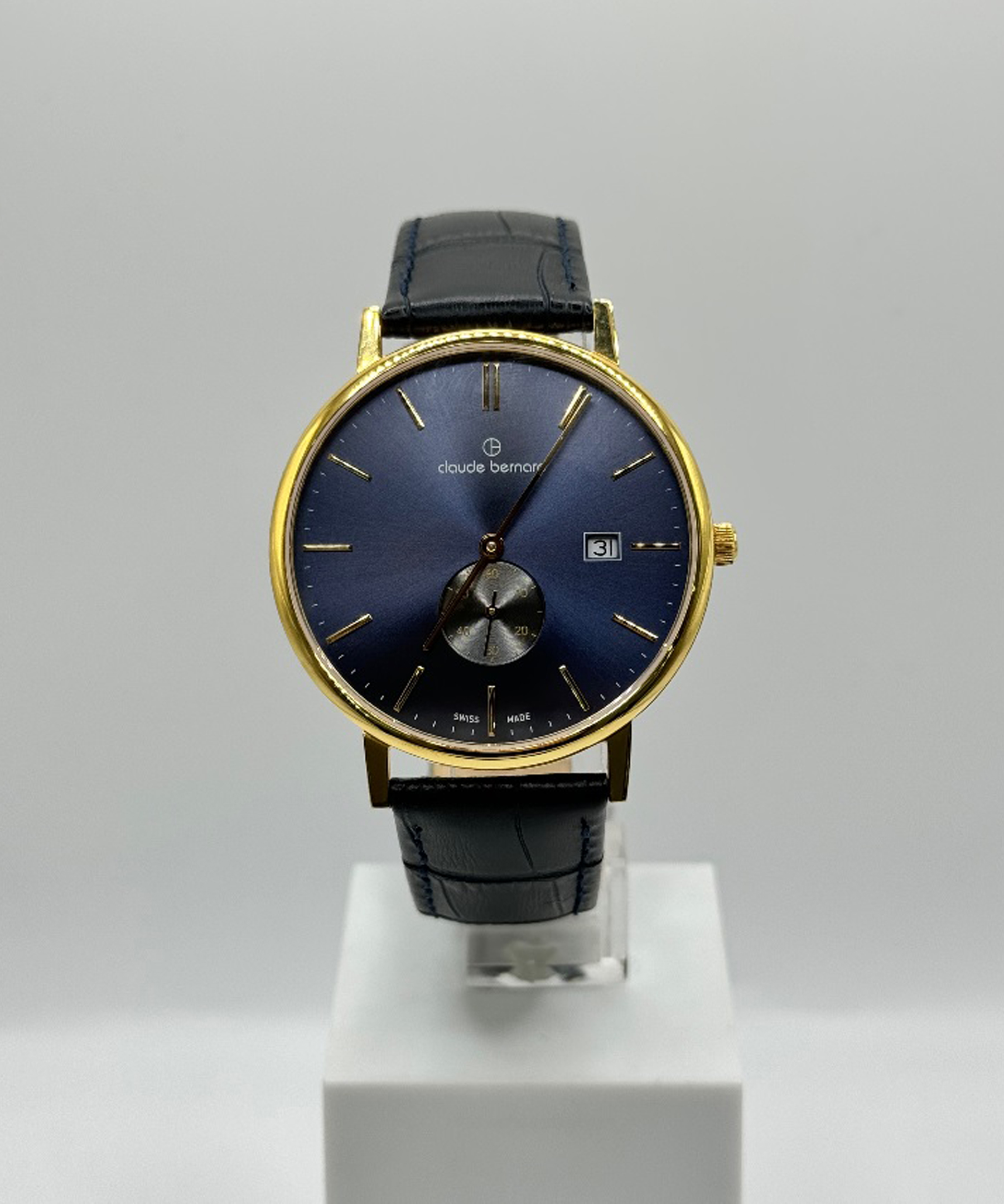 Елегантний класичний чоловічий кварцовий годинник відомого швейцарського бренду CLAUDE BERNARD з колекції Slim line з надійним кварцовим механізмом Ronda. Виготовлений зі сталі високої якості з PVD напиленням Gold. Лаконічні, оригінального забарвлення годинники справляють враження стильного, дорогого аксесуара. Міцне сапфірове скло має особливу прозорість і антивідблиск. Темно-синій шкіряний ремінець надає особливої естетики запропонованої моделі та красиво поєднується з циферблатом. Суворість ліній та елегантний шик аксесуара роблять його універсальним та актуальним у будь-якій ситуації.