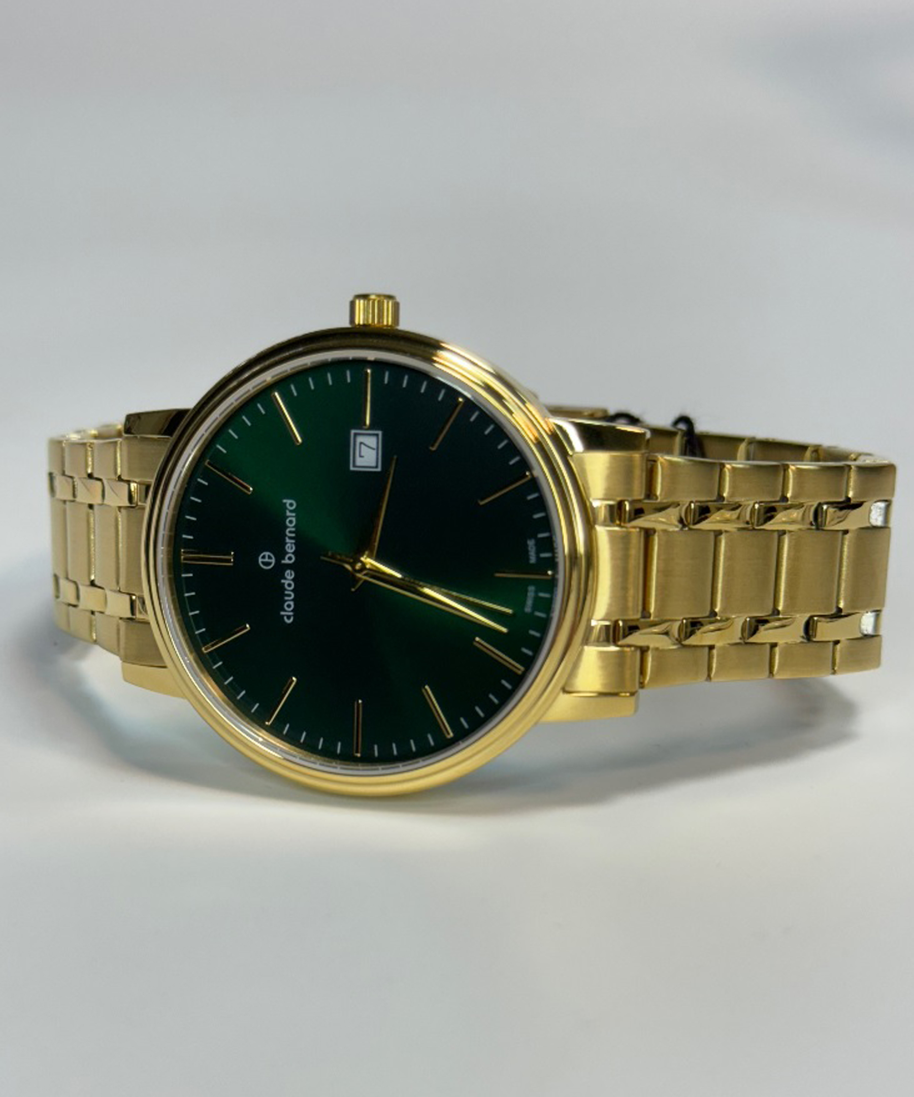 Зелений циферблат оздоблений тонкими золотистими стрілками та часовими мітками, надаючи годиннику витончений вигляд. Віконце дати розташоване на позначці 3 години, забезпечуючи додаткову зручність.
