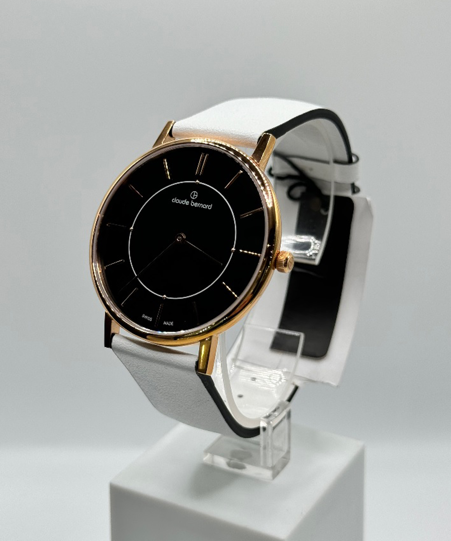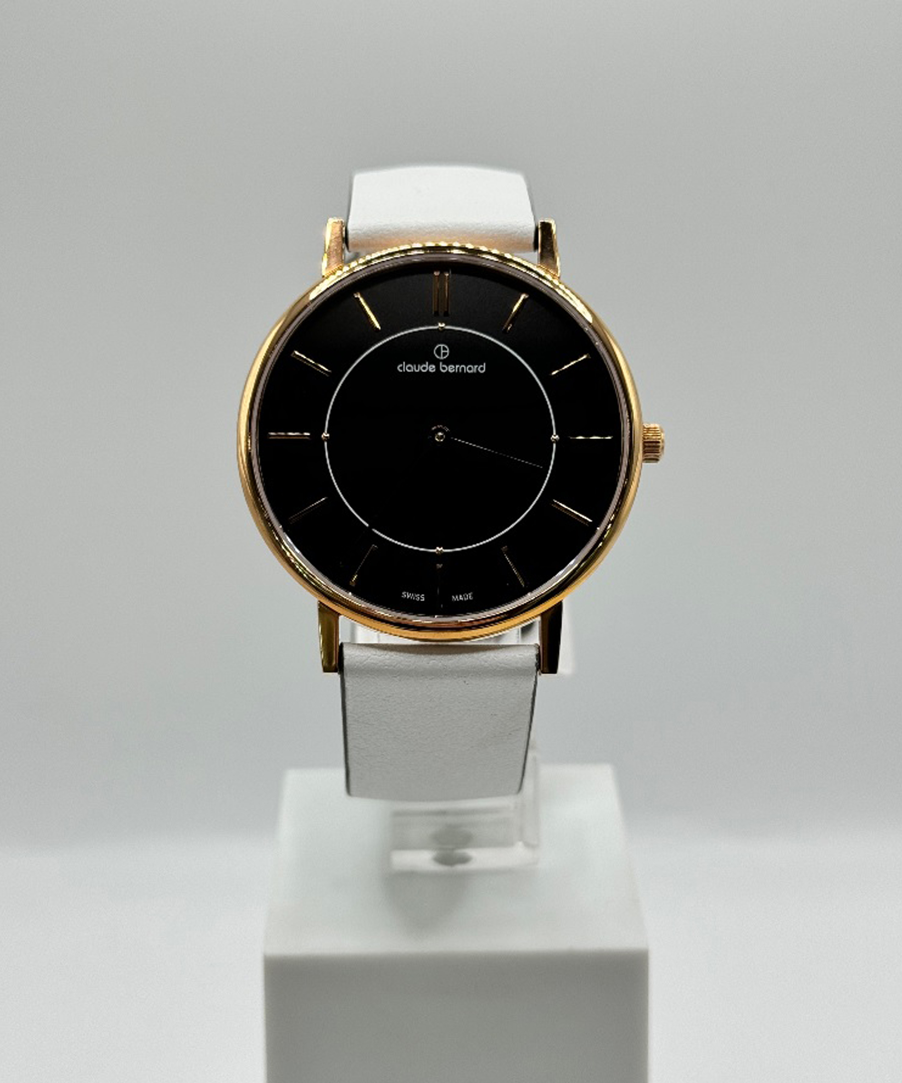 Універсальний годинник CLAUDE BERNARD із колекції Slim Line. Надійний кварцовий механізм у поєднанні з витонченим дизайном створюють ідеальний аксесуар для справжніх цінителів якості. Сталевий корпус з PVD покриттям Rose Gold Tone вражає своєю елегантністю, а чорний циферблат з золотистими часовими мітками і стрілками додає строгого шарму. Витончена деталь — білий ремінець із натуральної шкіри, що підкреслює стиль і комфорт. Діаметр 41 мм. Водозахист 5АТМ. Годинник CLAUDE BERNARD це вибір для тих, хто шукає вишуканість і надійність в кожній деталі.