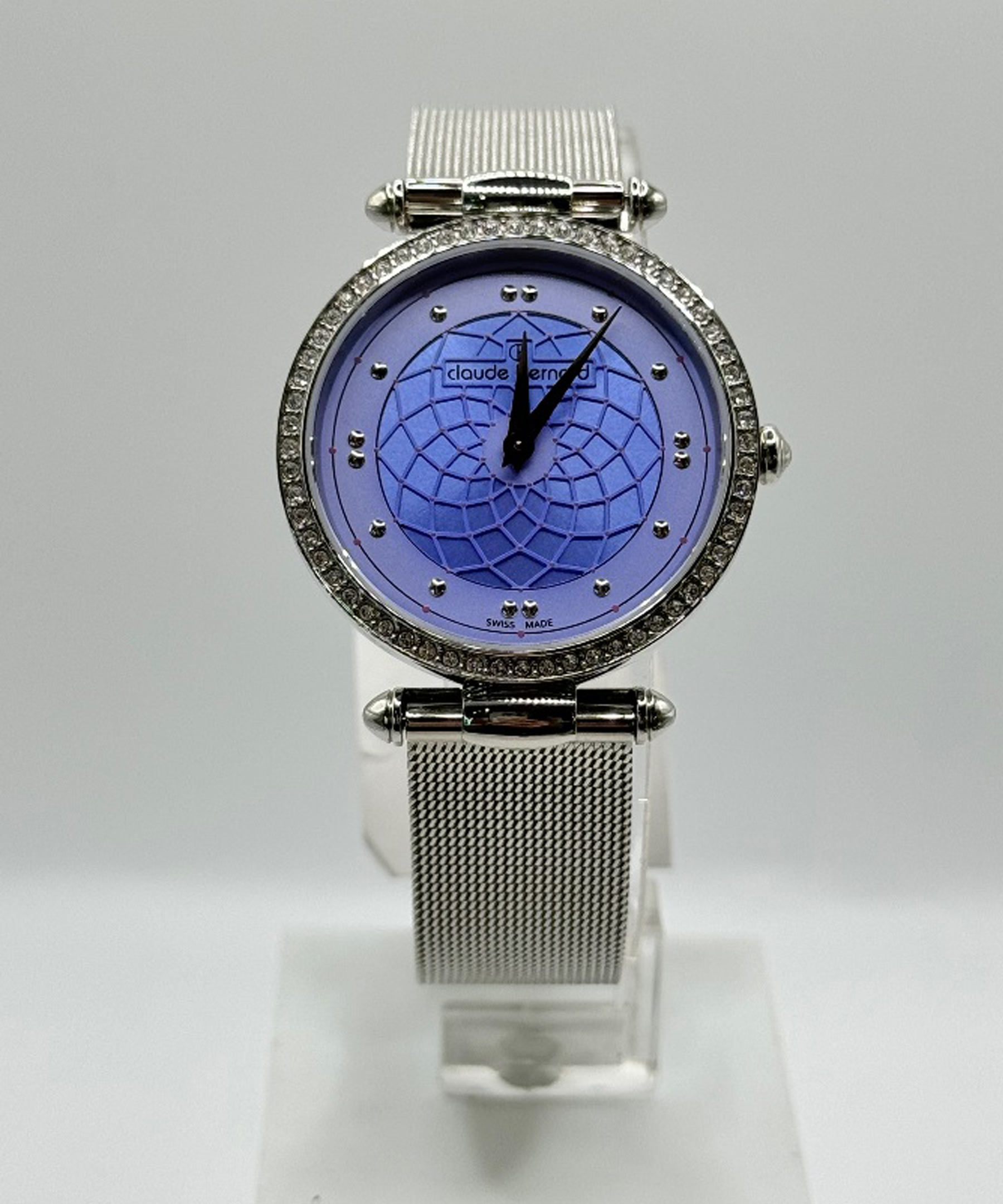 Надзвичайно стильний жіночий годинник респектабельного бренду Claude Bernard з колекції Dress Code Chloé - оснащений високоточним швейцарським кварцовим механізмом, виготовлений із високоякісної сталі марки 316L, яка використовується у виготовленні ювелірних прикрас. Блакитний циферблат із кристалами Сваровські, об'єднаними орнаментом, що нагадує світову павутину, виглядає як космічна сфера. Сріблясте мерехтіння каміння на безеле годинника органічно поєднується з браслетом у техніці міланського плетіння. Дивовижний дизайн, що несе як смислове, так і естетичне навантаження, у поєднанні з високою якістю механізму створює неповторний образ престижного аксесуара, гідного прикрасити Вашу руку.