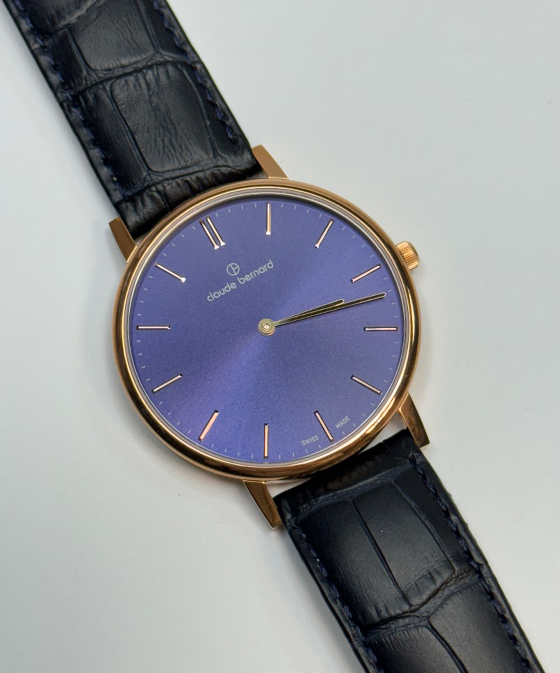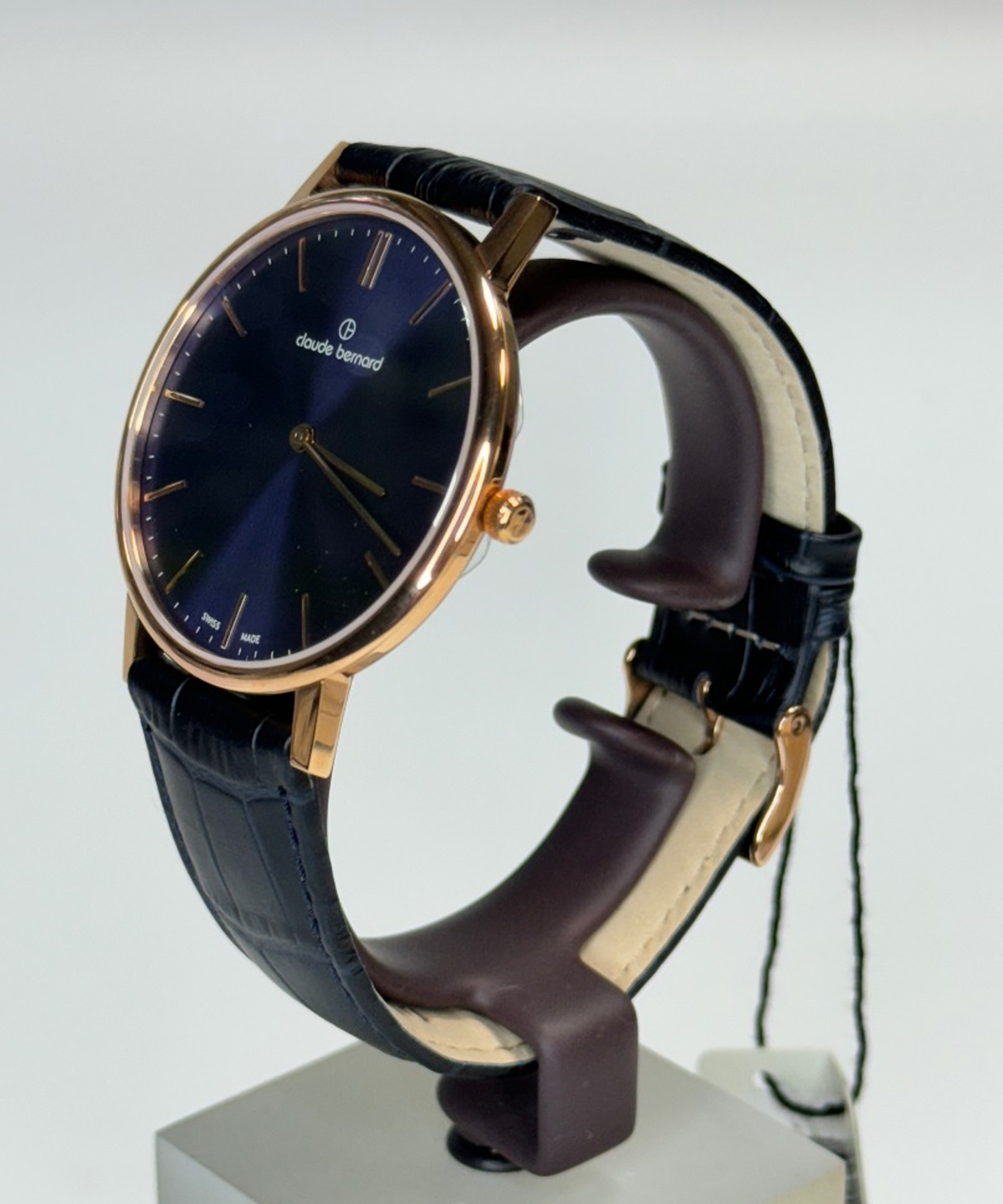 Класичний наручний унісекс годинник відомого швейцарського бренду Claude Bernard з колекції Slim line оснащений високоточним швейцарським кварцовим механізмом Ronda 5040.