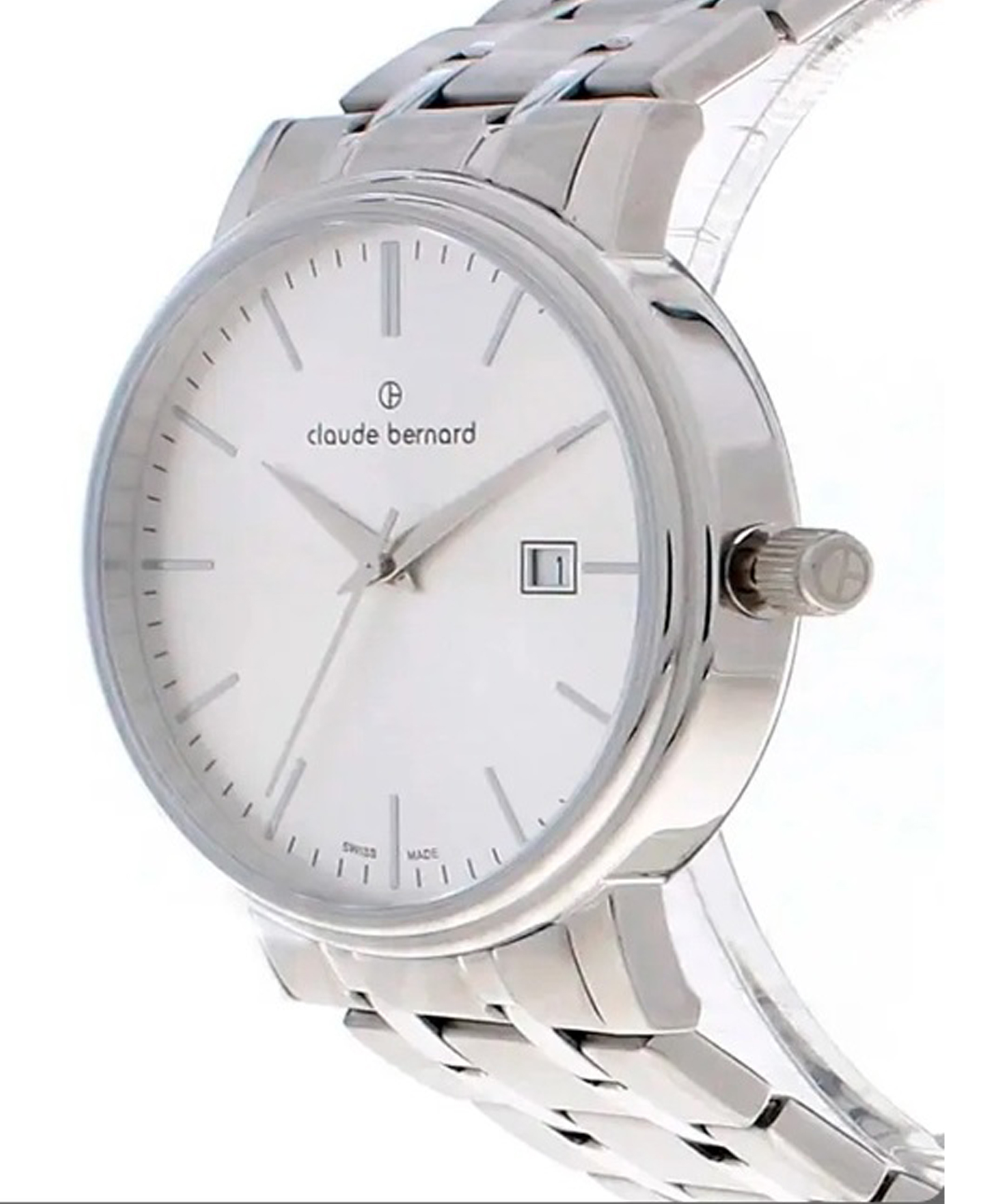 Класичний чоловічий наручний годинник відомого швейцарського бренду Claude Bernard з колекції Classic оснащений високоточним швейцарським кварцовим механізмом Ronda 5040. Сріблястий корпус виготовлений з нержавіючої сталі. На аналоговому циферблаті індикатор дати, тонкі елегантні індекси часу. Надміцне сапфірове скло надійно захищає механізм від пошкоджень.Сталевий браслет, лаконічність форм у поєднанні з високою якістю та елегантним дизайном створюють універсальність образу, який буде доречний з будь-яким одягом та у будь-який час.