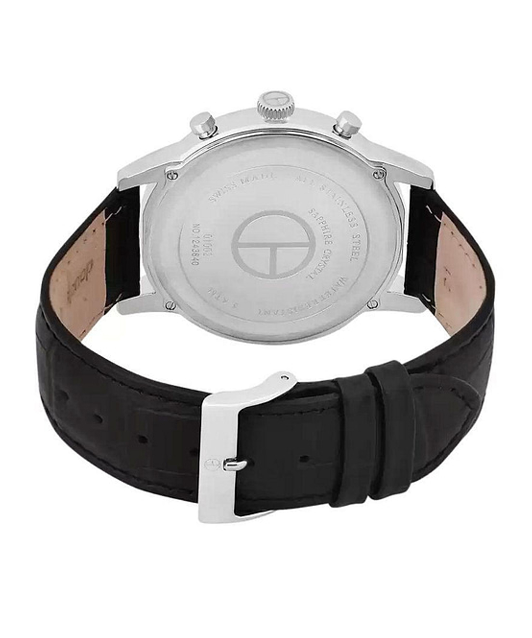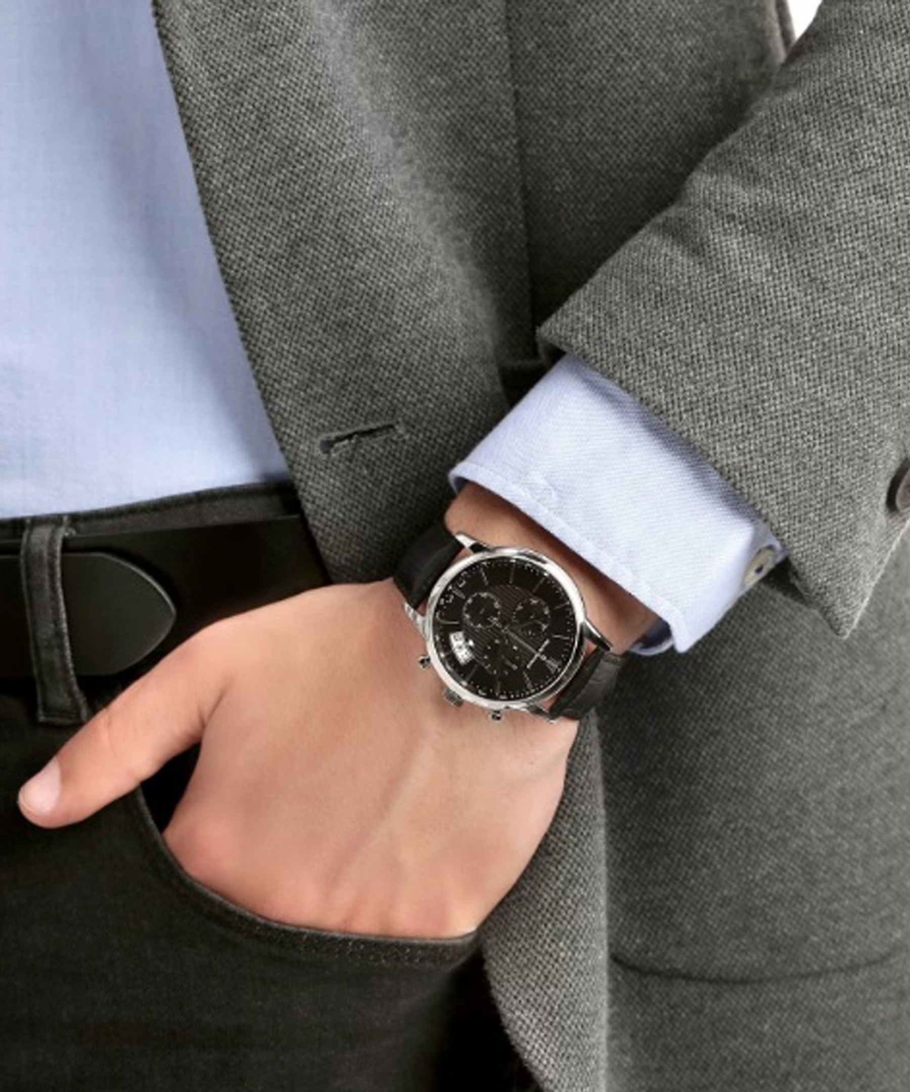 Класичний чоловічий наручний годинник - хронограф Claude Bernard з колекції Sophisticated Classics. Високоточний швейцарський кварцевий механізм ETАG10.211.На чорному аналоговому циферблаті з мітками, тахіметром та індексом дати, стрілки з люмінесцентним покриттям. Сріблястий корпус, виготовлений з нержавіючої стали високої якості, гармонічно доповнений елегантним шкіряним ремінцем чорного кольору. Надійне сапфірове скло захищає механізм від пошкоджень. Лаконічність і строгість ліній представленої моделі надають їй особливого шику та елегантності.