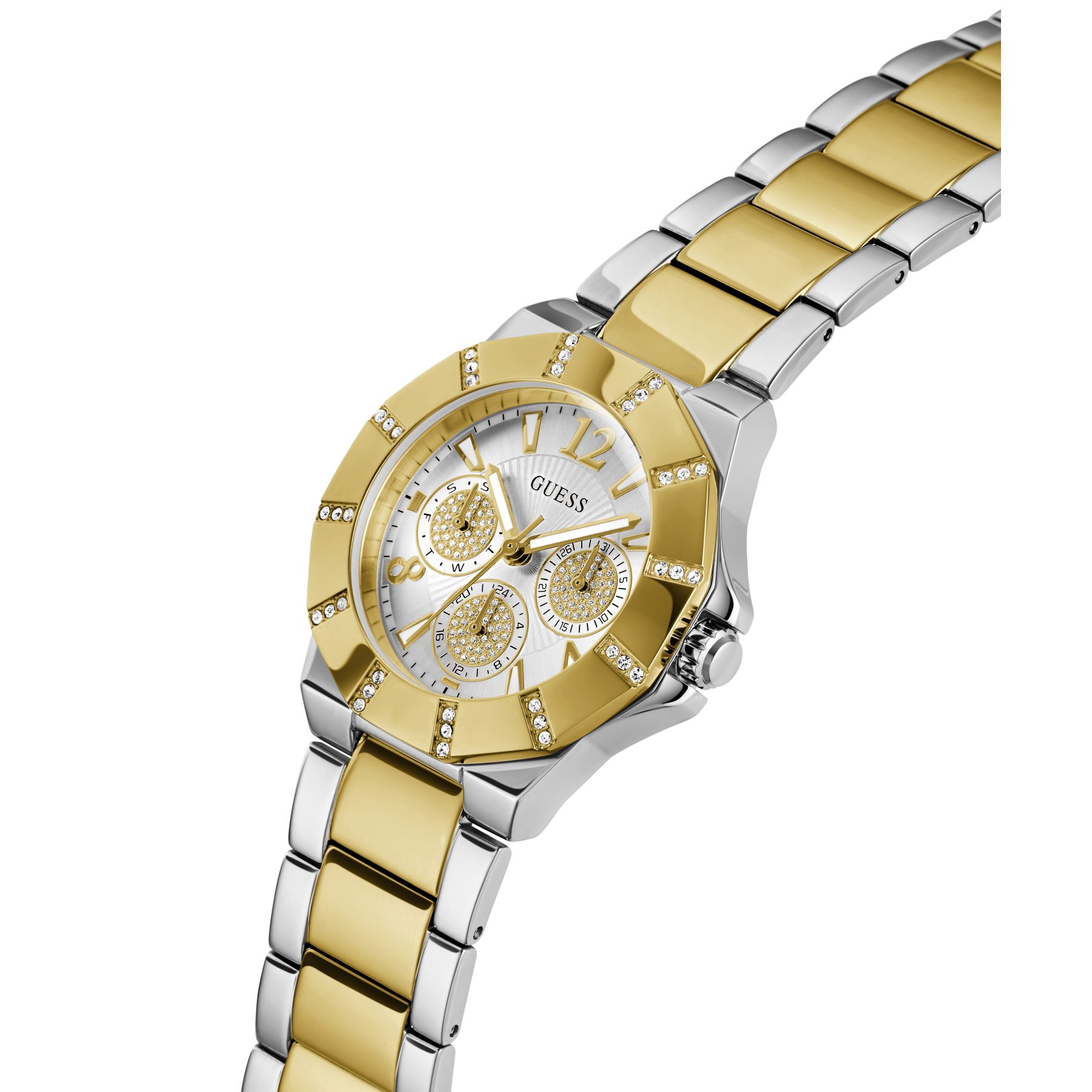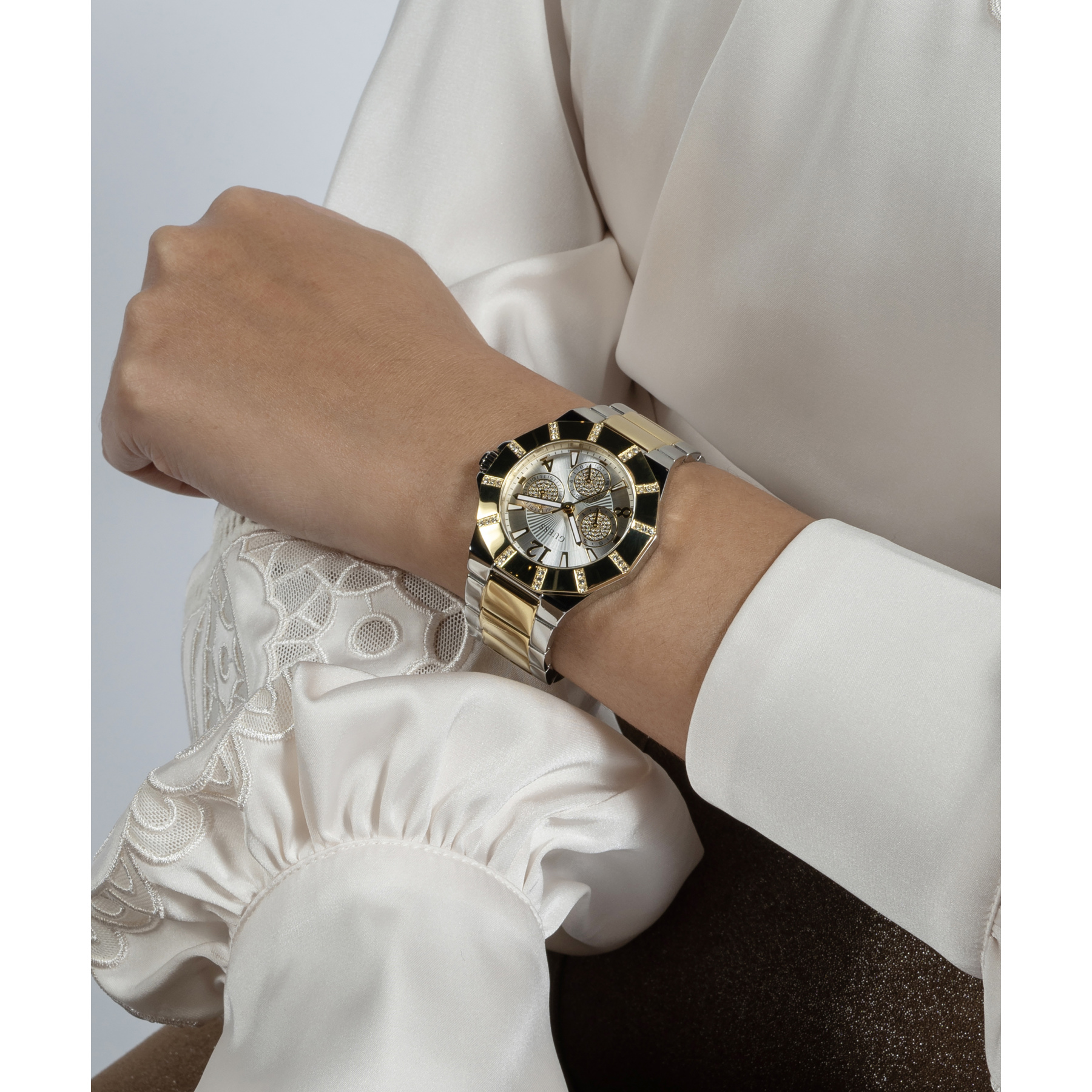 Жіночий наручний годинник GW0616L2 легендарного американського бренду Guess гідний уваги шанувальниць класичного, консервативного стилю. В годиннику встановлений надійний кварцевий механізм Miyota. Сталеві з комбінованим покриттям корпус та браслет. Діаметр корпусу - 36 мм. Аналоговий циферблат захищений мінеральним склом. Водозахист 3 АТМ.-