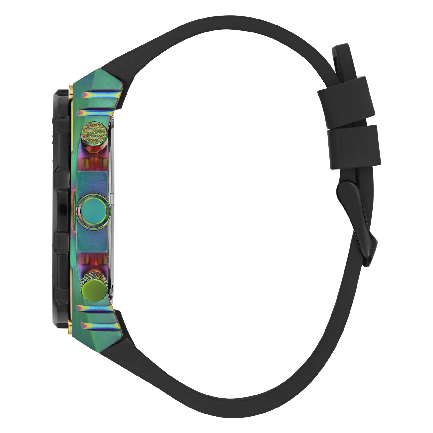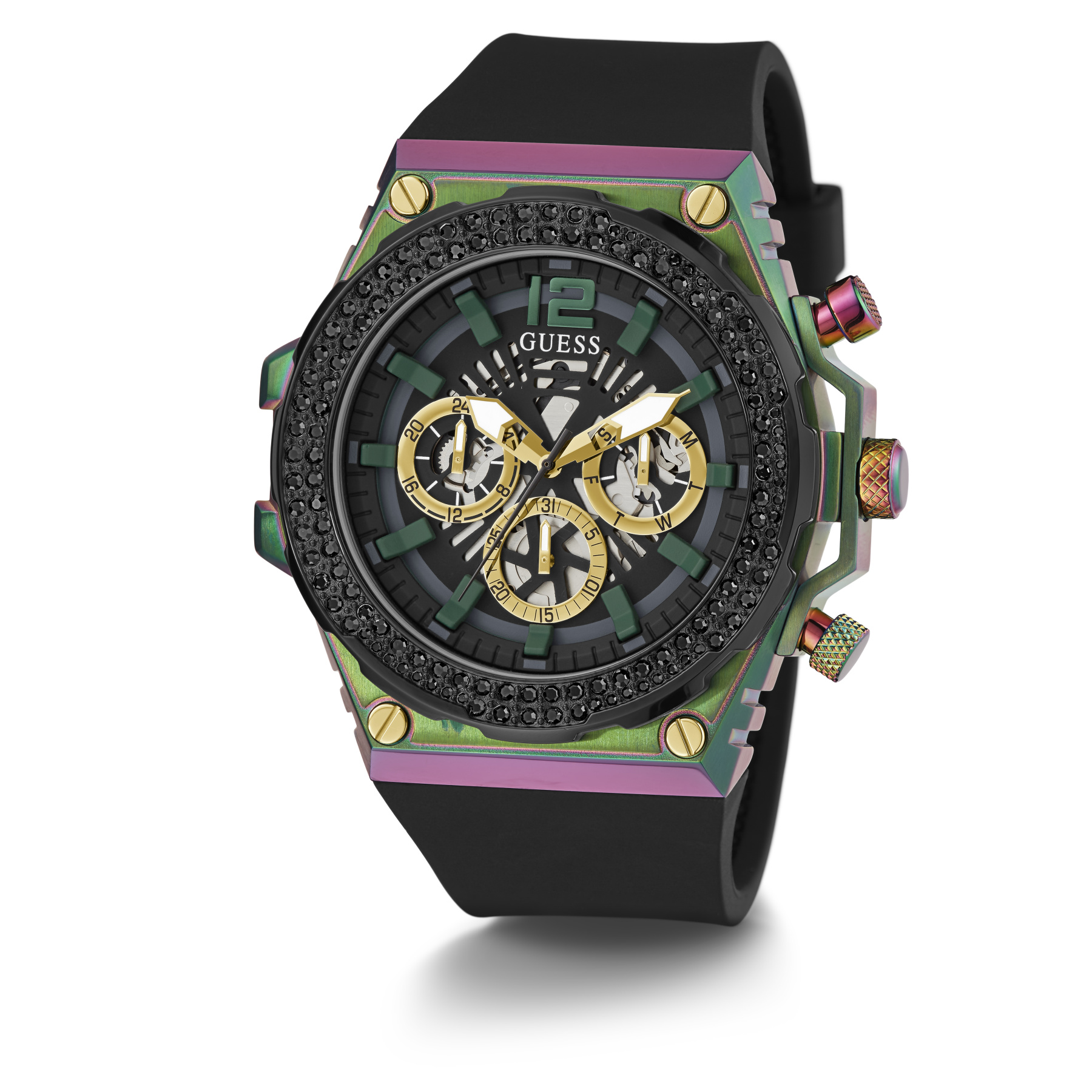 Оригінальний годинник чоловічий GUESS GW0633G1 з колекції MENS SPORT. Багатофункціональний аксессуар оснащений надійним кварцевим механізмом Miyota. Сталевий корпус "хамелеон". Діаметр корпуса - 48 мм, товщина - 12,35 мм. Чорний матовий силіконовий ремінець с класичною застібкою - пряжкой. Безель декорований чорними кристалами. Стрілки с люмінесцентним покриттям. Водозахист - 5 АТМ.-