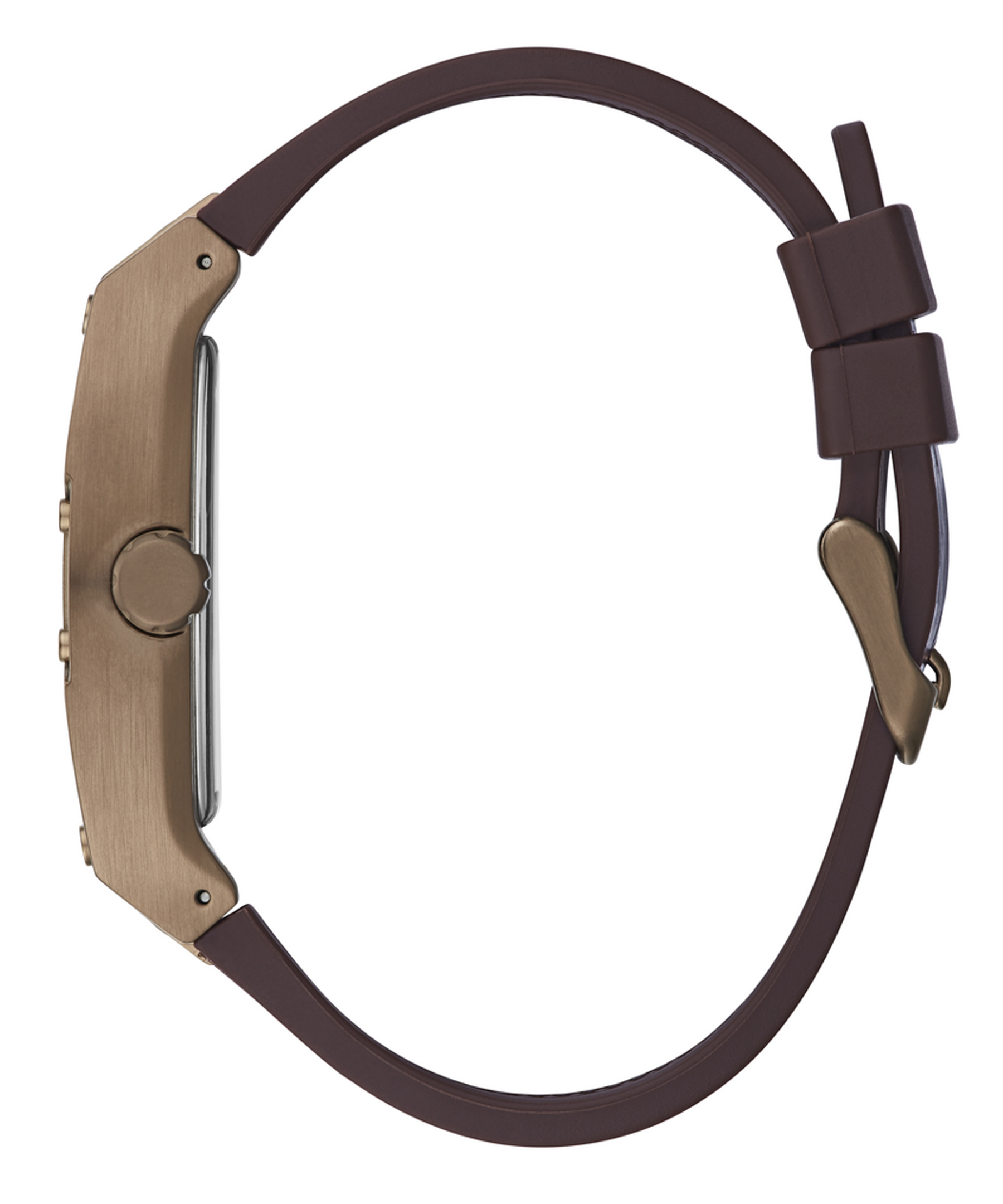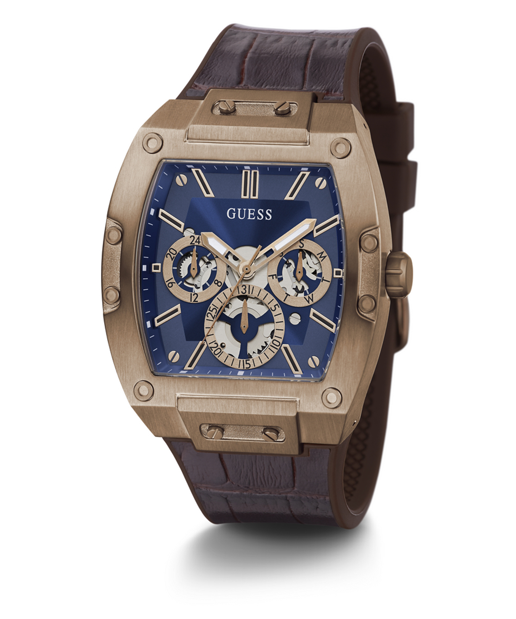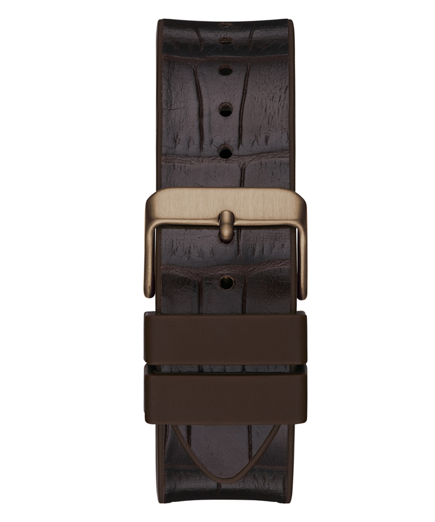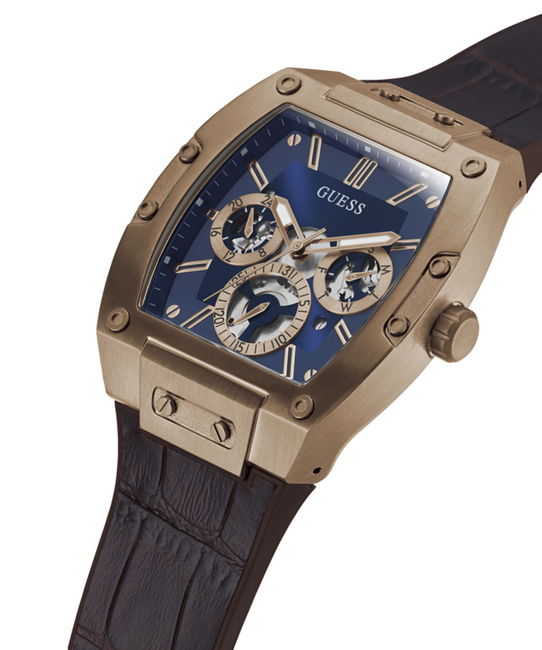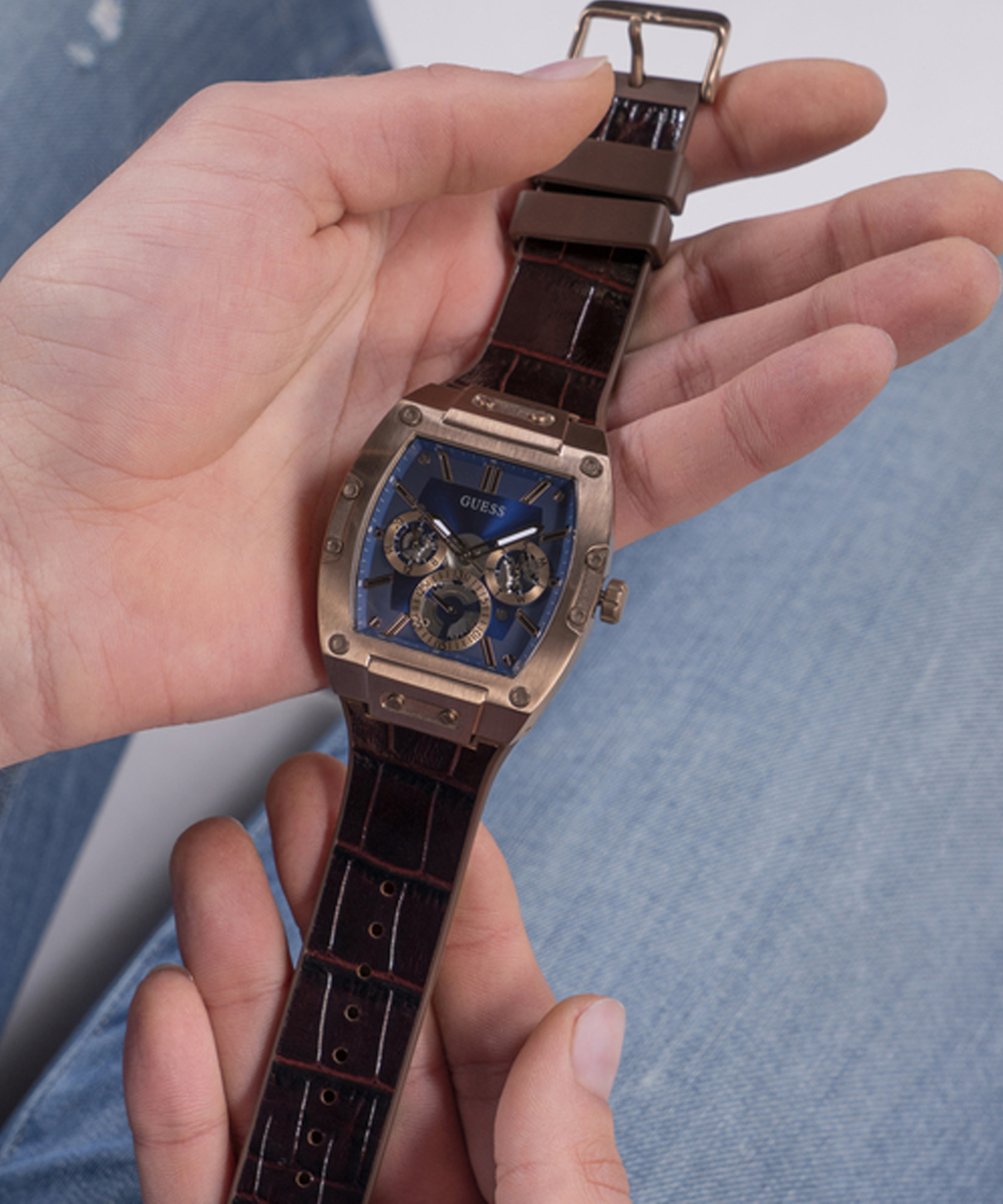 Дизайнерський чоловічий годинник відомого американського бренду GUESS з колекції Mens Trend виготовлені з високоякісної сталі з покриттям Bronze Tone. У серці годинника б'ється японський кварцовий механізм Miyota, що заслужив світове взнання. авангардний вигляд Багатофункціональність механізму забезпечує індикацію числа, дня тижня та час у 24 годинному форматі. Коричневий шкіряний ремінець дуже гармонійно поєднується із бронзовим корпусом, створюючи респектабельний образ дорогого аксесуара. На синьому декорованому під скелетон циферблаті стрілки із люмінесцентним покриттям. Міцне скло надійно захищає механізм від пошкоджень. Висока якість та комфорт статусного аксесуару створять Вам чудовий настрій та додадуть Вашому образу стильної елегантності.