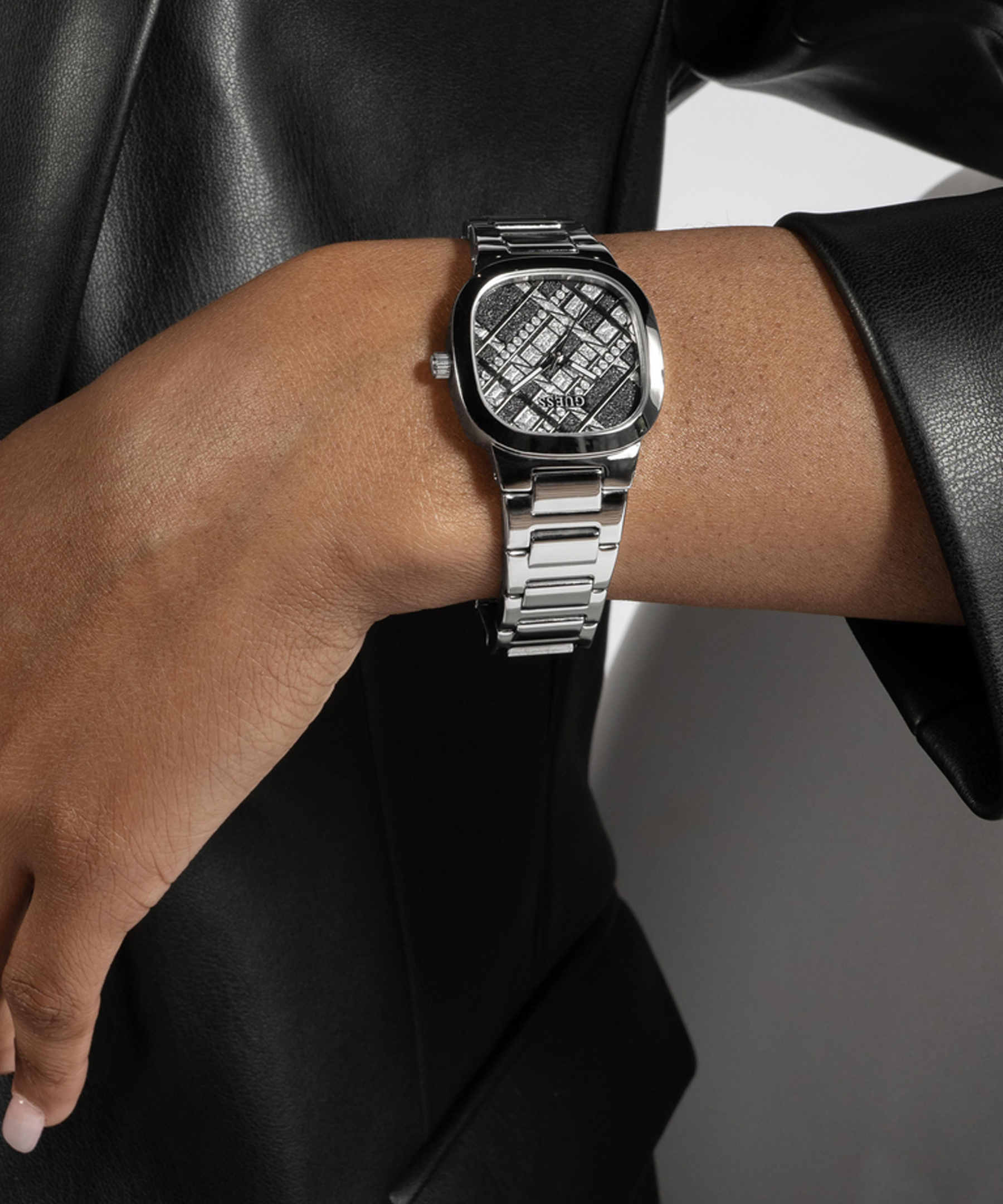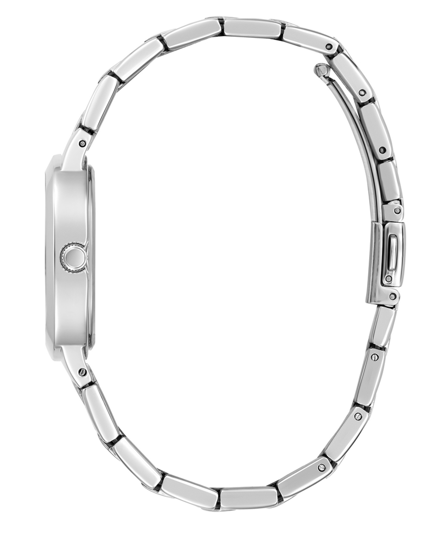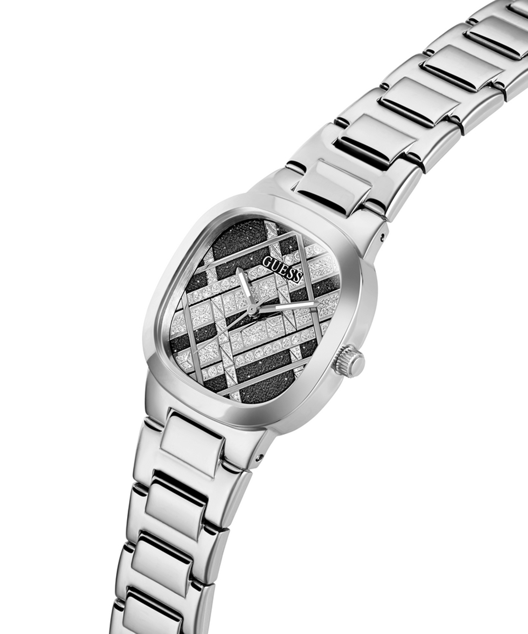 Жіночий наручний годинник GW0600L1 легендарного американського бренду Guess. У годиннику встановлено надійний кварцовий механізм Miyota. Сталеві корпус та браслет. Циверблат ддекорований мерехтливими геометричними лініями. Діаметр корпусу - 32 мм, товщина - 7,85 мм. Аналоговий циферблат захищений міцним мінеральним склом. Водозахист - 3 АТМ.