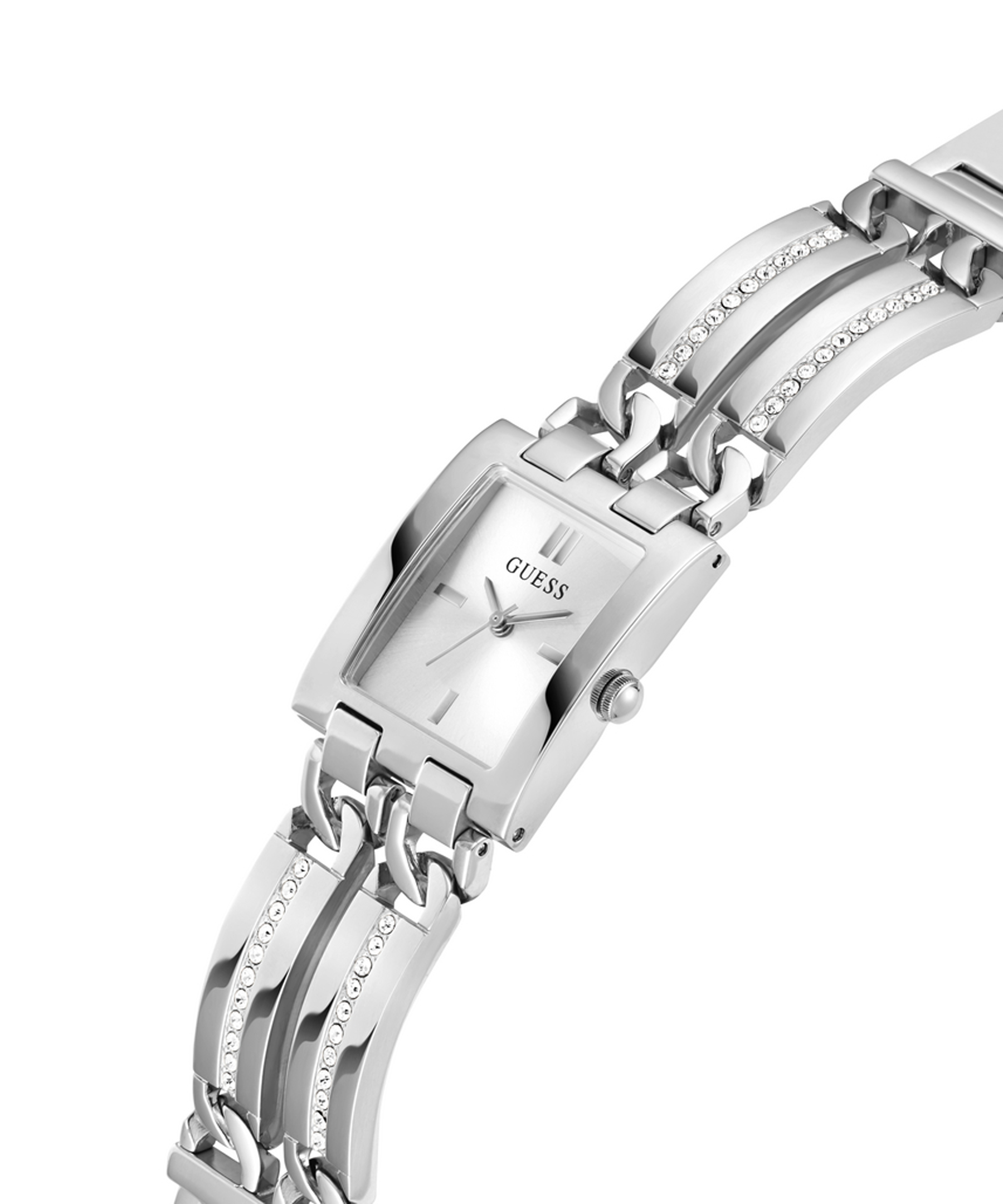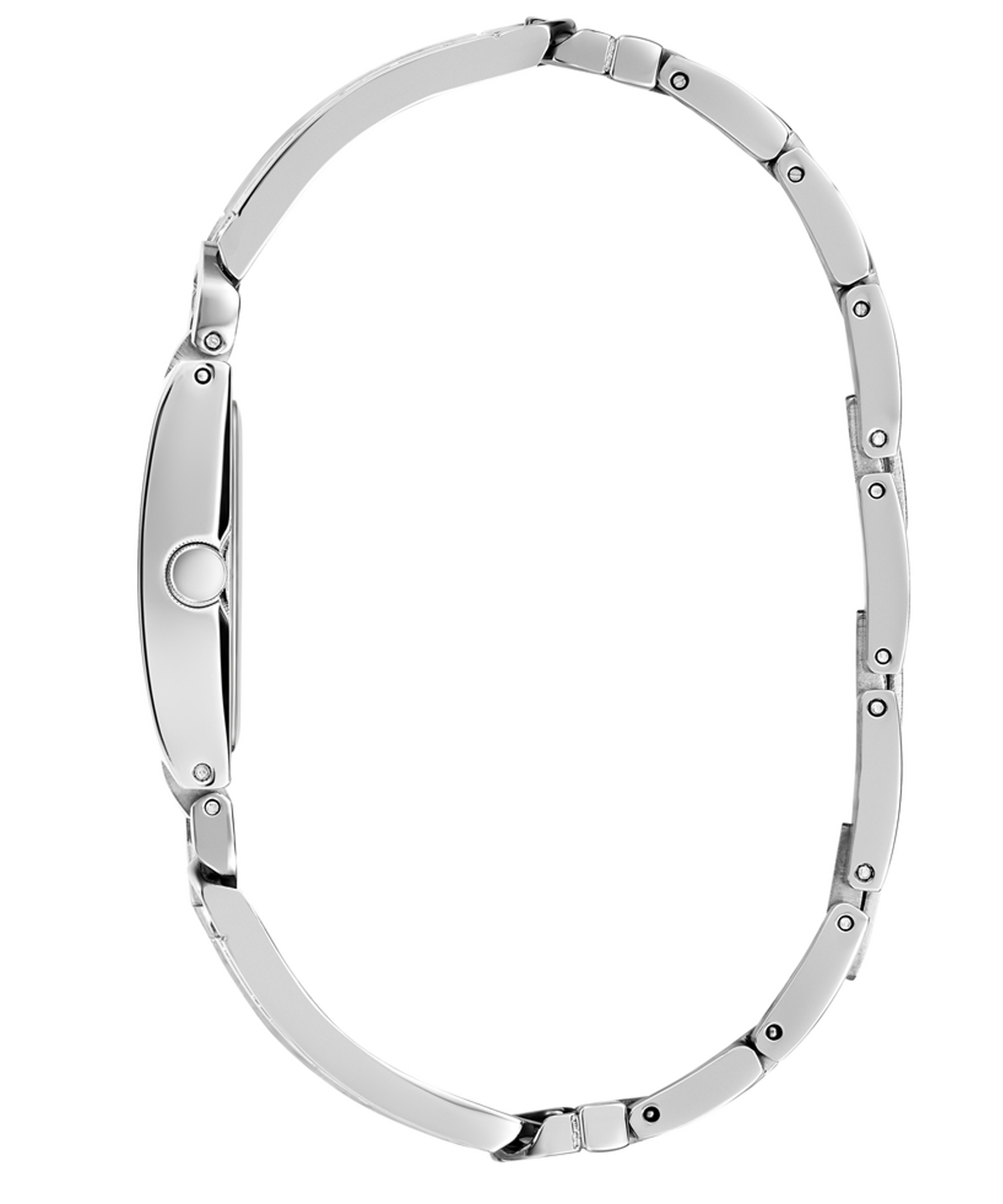 Модель оснащена точним кварцевим механізмом Miyota, що забезпечує бездоганну роботу упродовж тривалого часу. Корпус та браслет виготовлені з нержавіючої сталі, що додає витонченості та довговічності виробу. Прямокутний корпус розміром 24 мм виглядає вишукано на зап’ясті, а сріблястий аналоговий циферблат підкреслює лаконічну естетику моделі. Мінеральне скло стійке до подряпин, а водозахист 3 ATM дозволяє не турбуватись про випадкові краплі води.