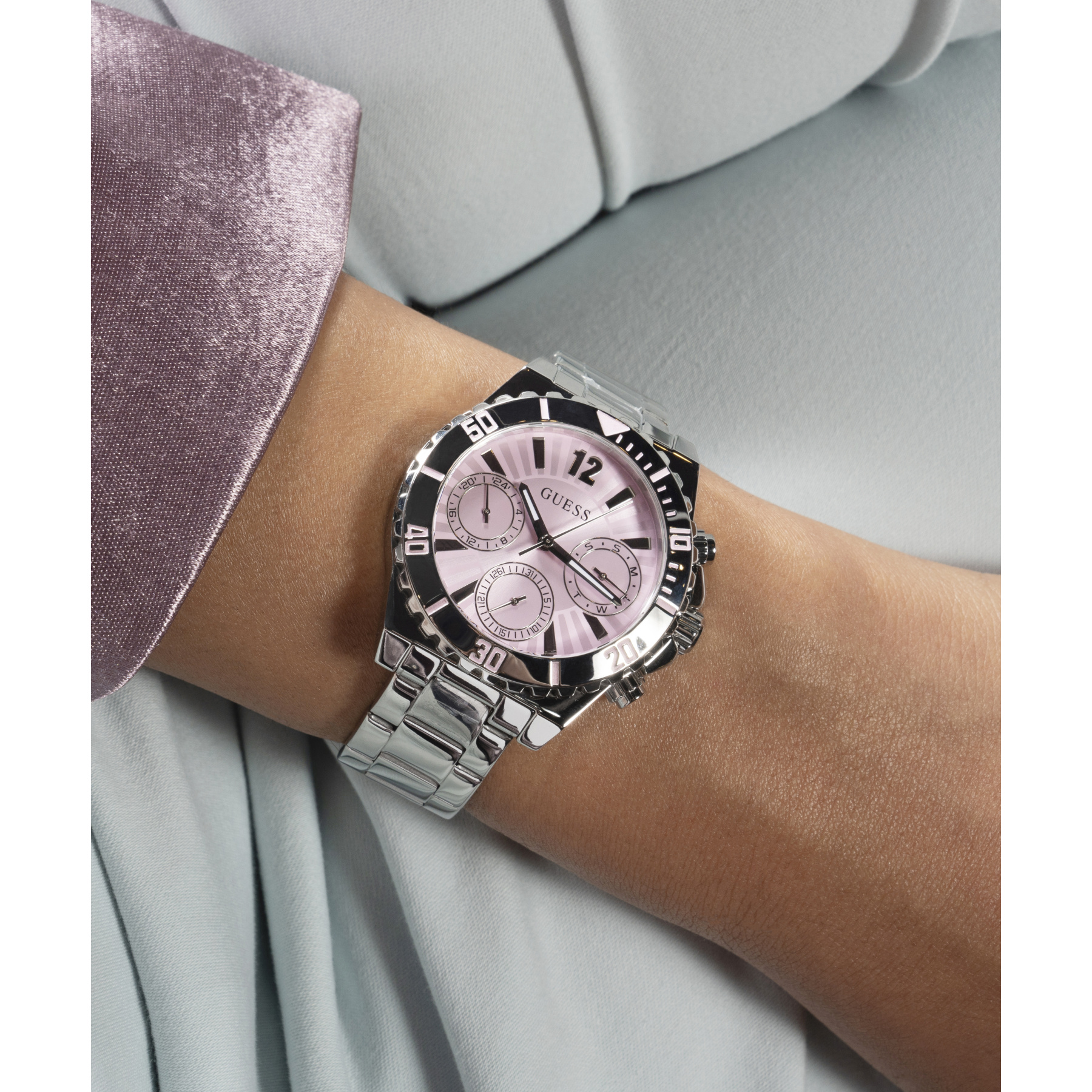 Оригінальний годинник жіночий GW0696L1 з надійним кварцевим механізмом Miyota. Сталеві корпус та браслет. Діаметр корпусу - 38,2 мм. Аналоговий циферблат ніжно рожевого кольору. Мінеральне скло. Водозахист 3 АТМ.-