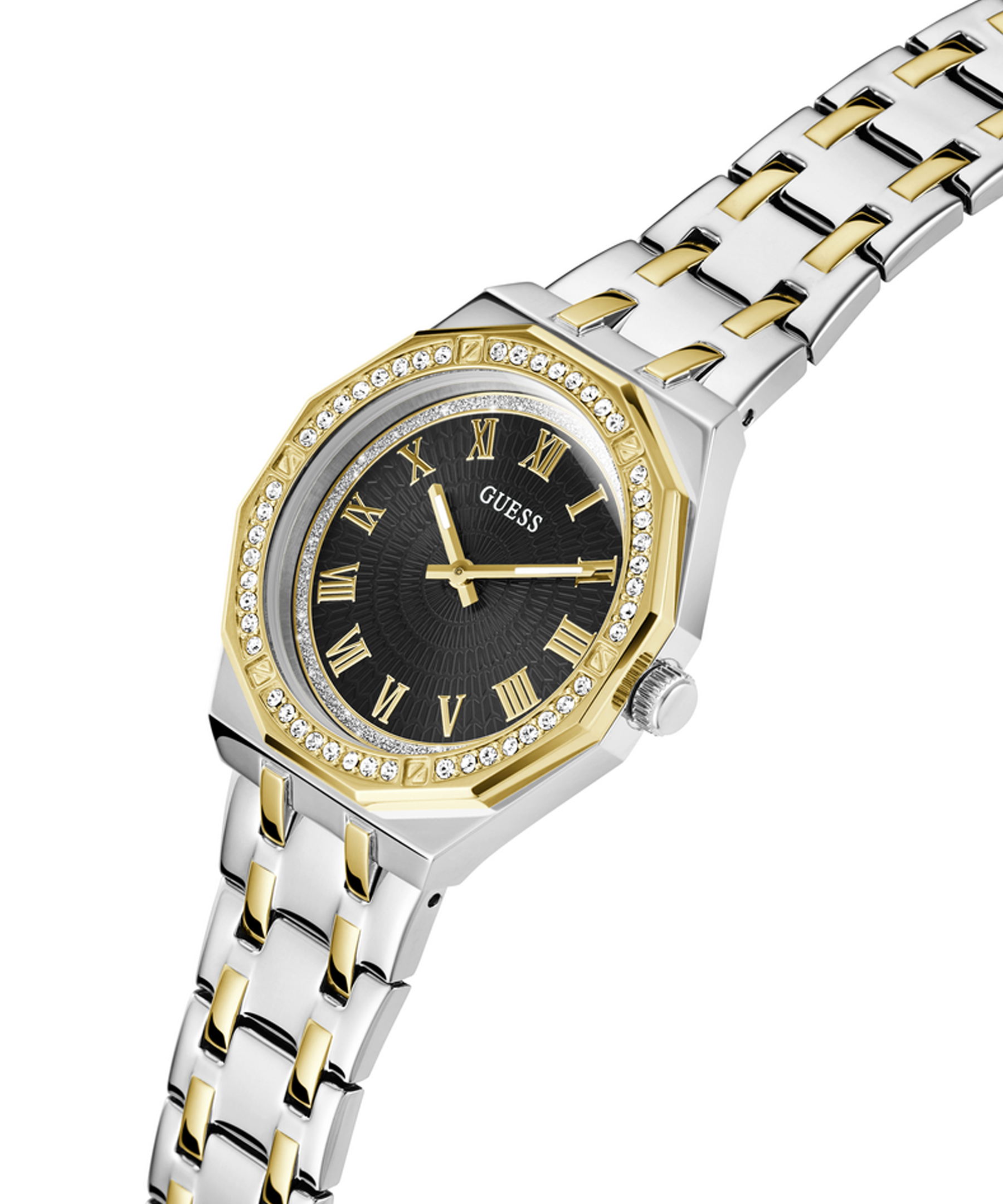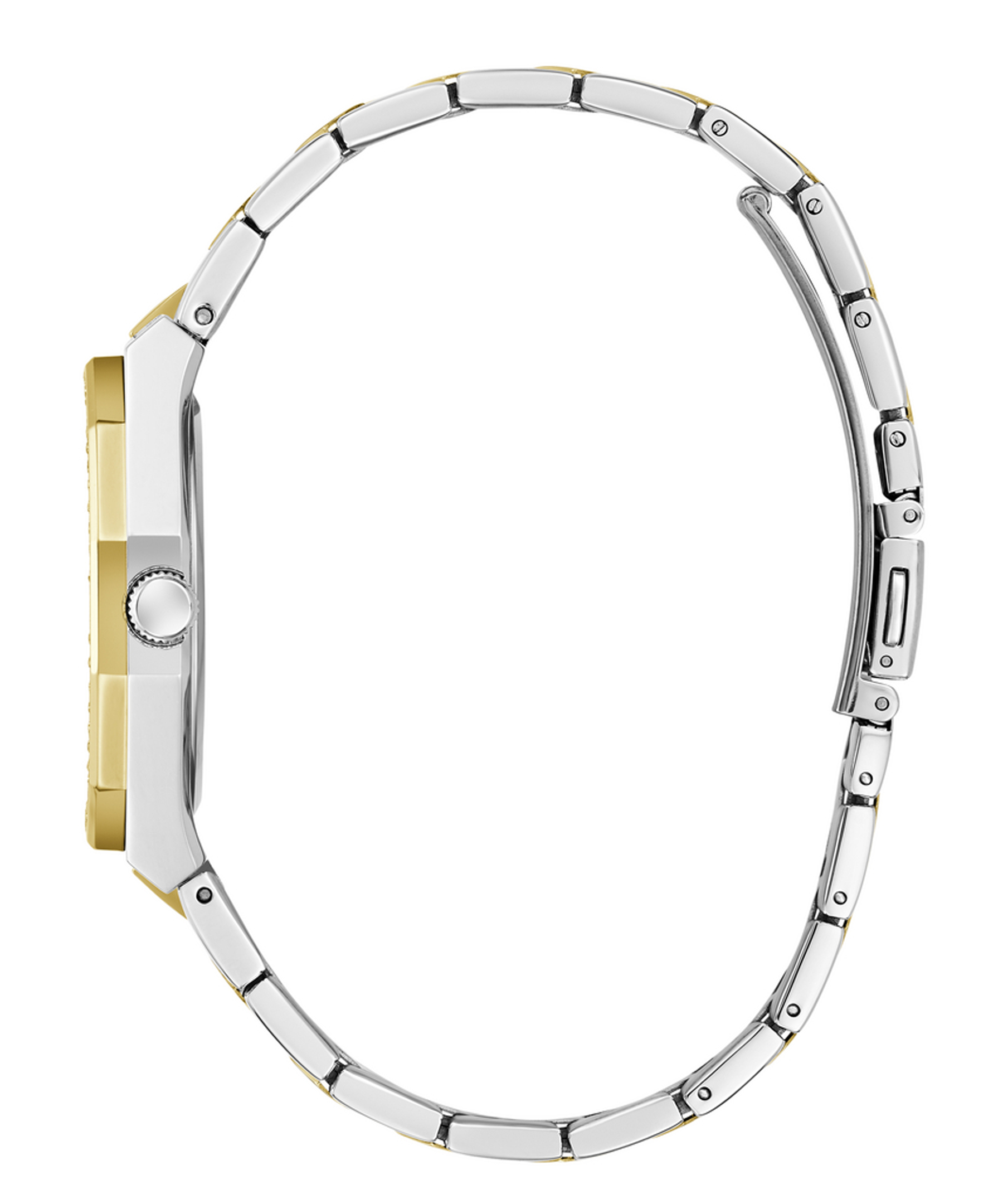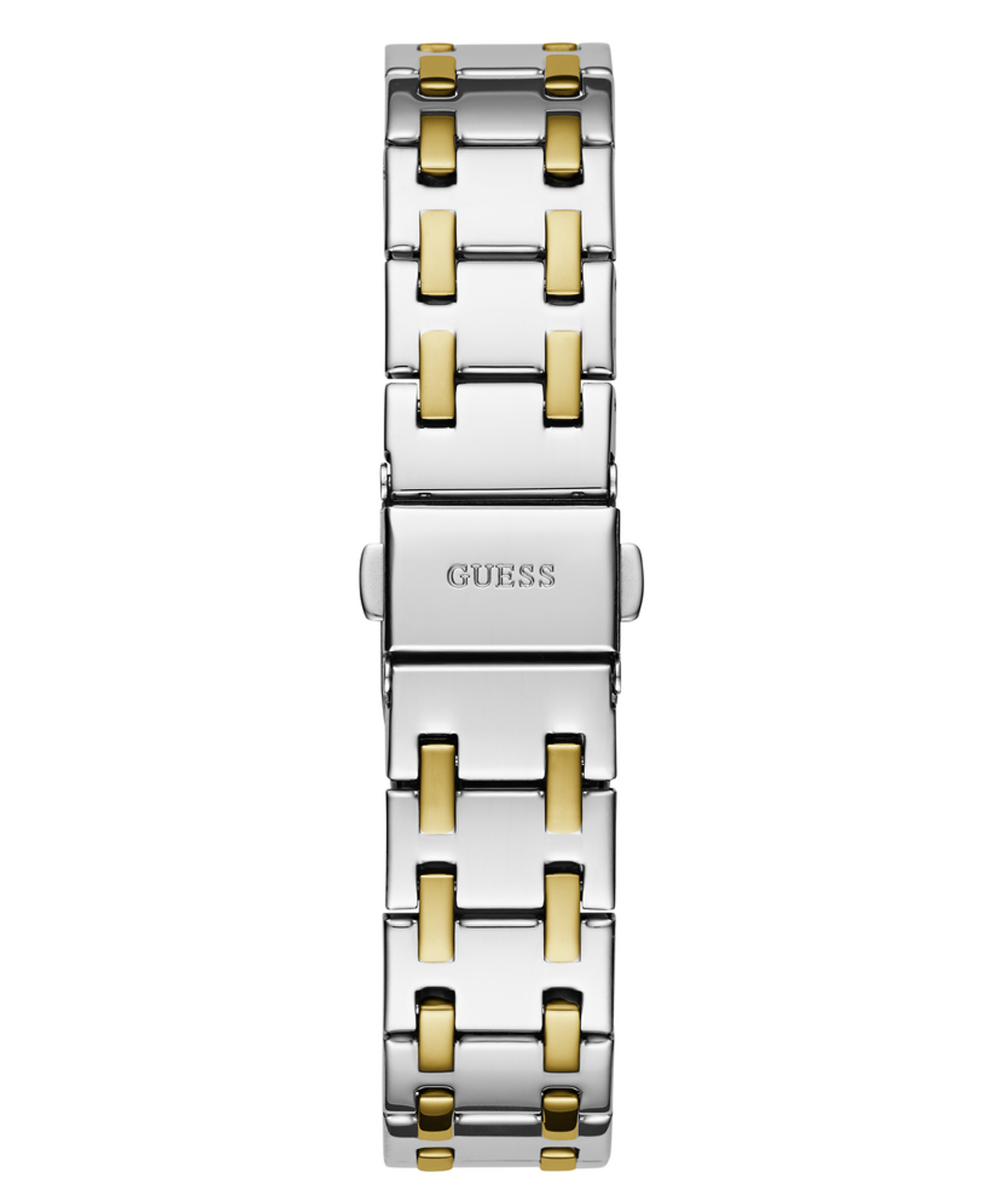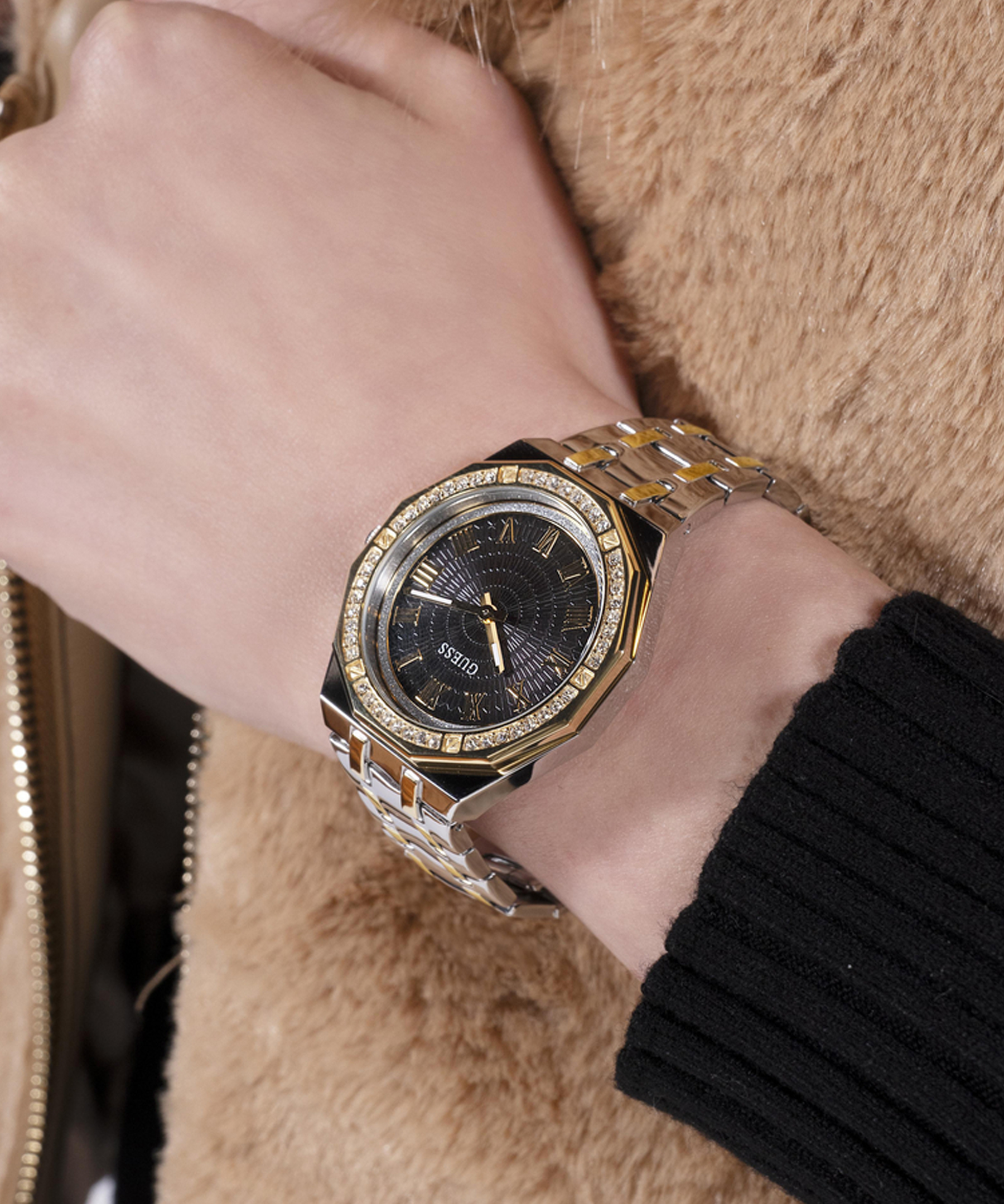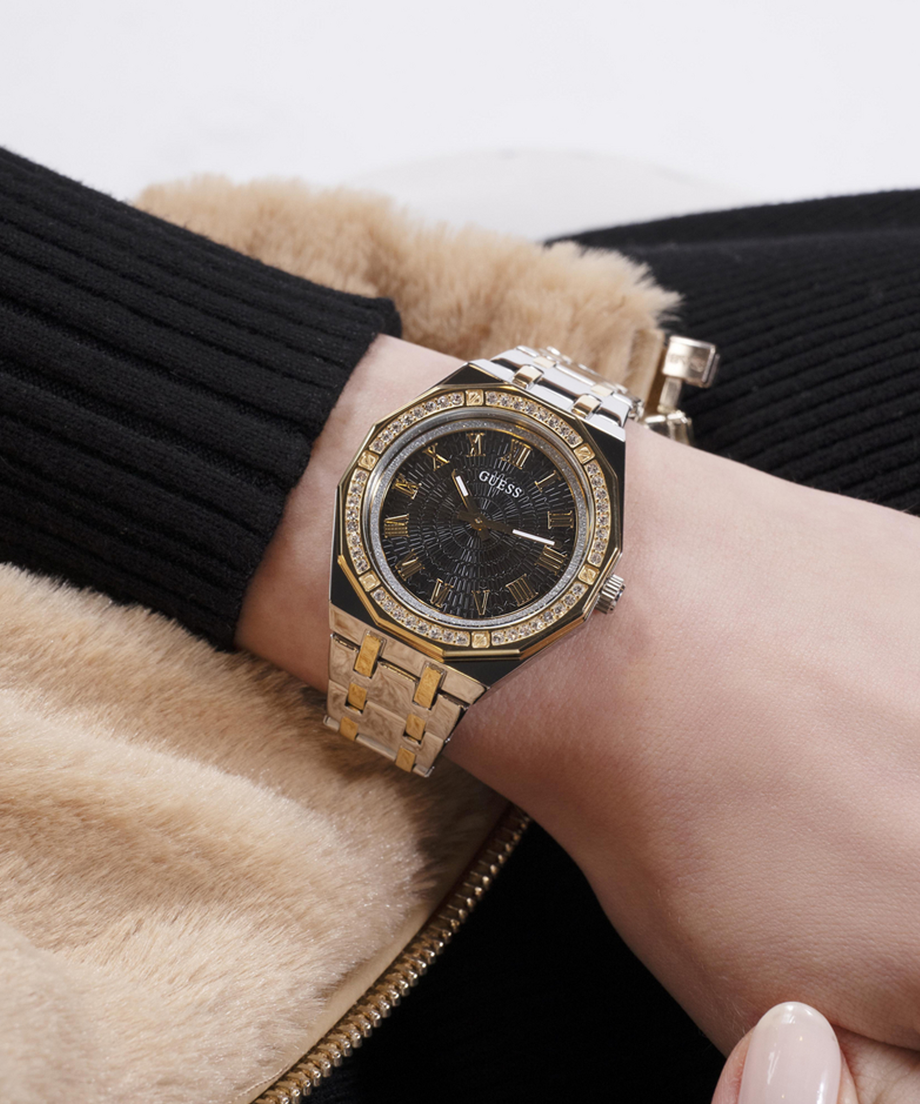 Жіночий наручний годинник від легендарного американського бренду Guess — це втілення елегантності та бездоганної якості. Оснащений надійним кварцовим механізмом Miyota, він забезпечує точність та стабільність у будь-який час.Сталевий корпус і браслет з частковим золотистим покриттям надають годиннику розкішного вигляду, підкреслюючи витонченість кожної деталі. Діаметр корпусу 36 мм робить його ідеальним для жіночої руки, додаючи елегантності та шарму. Безель, прикрашений кристалами, додає блиску та розкоші. Міцне мінеральне скло надійно захищає циферблат від подряпин і механічних пошкоджень, зберігаючи його бездоганний вигляд. З водозахистом 5 АТМ цей годинник ідеально підходить для повсякденного носіння, даруючи вам впевненість і стиль у будь-яких умовах. Guess — це не просто годинник, а символ елегантності та вишуканості, що стане бездоганним доповненням до вашого образу.