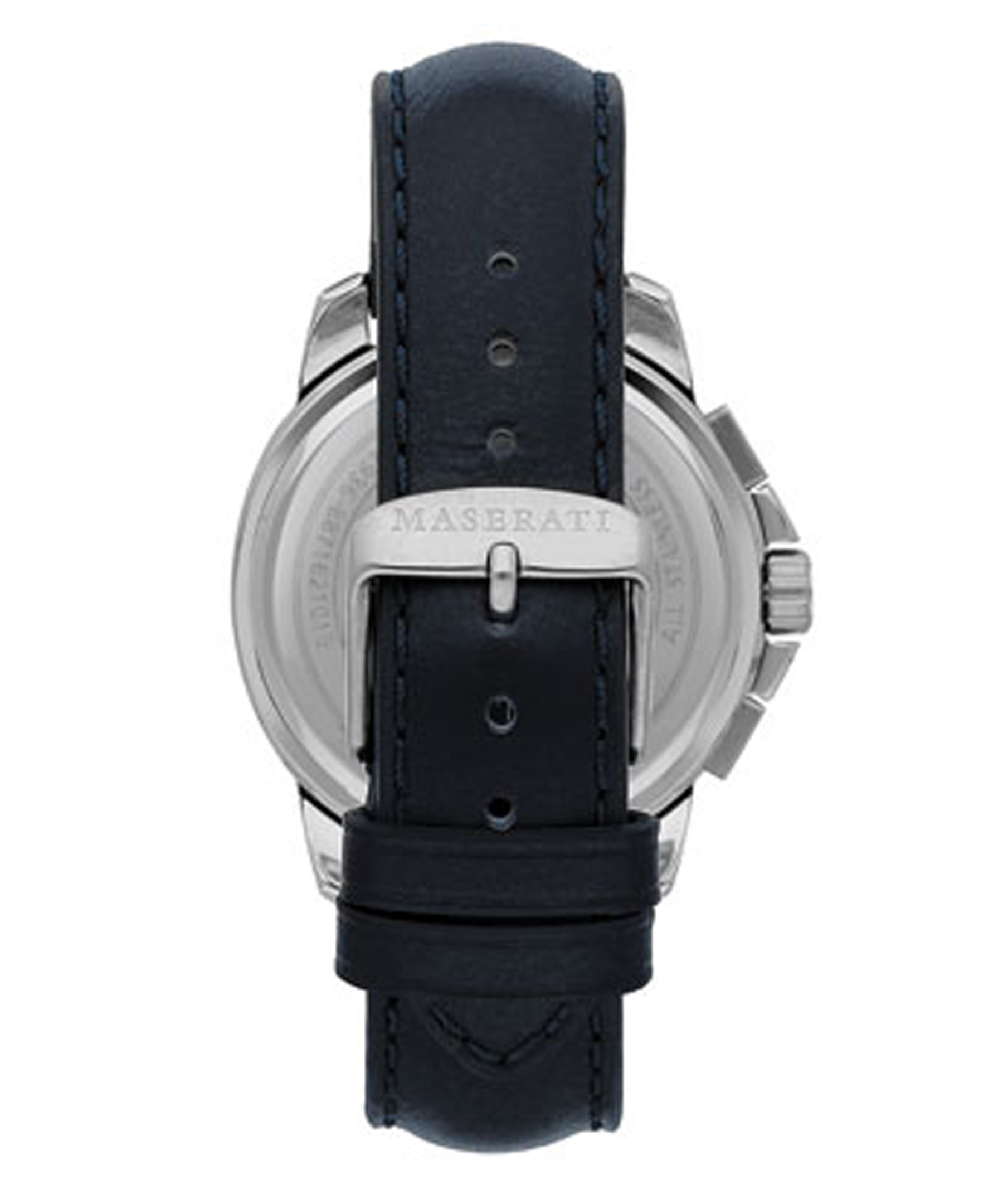 Фірмовий тризуб — легендарний символ Maserati — розміщений на циферблаті як знак статусу, витонченого смаку та приналежності до світу вишуканої швидкості й італійського стилю.