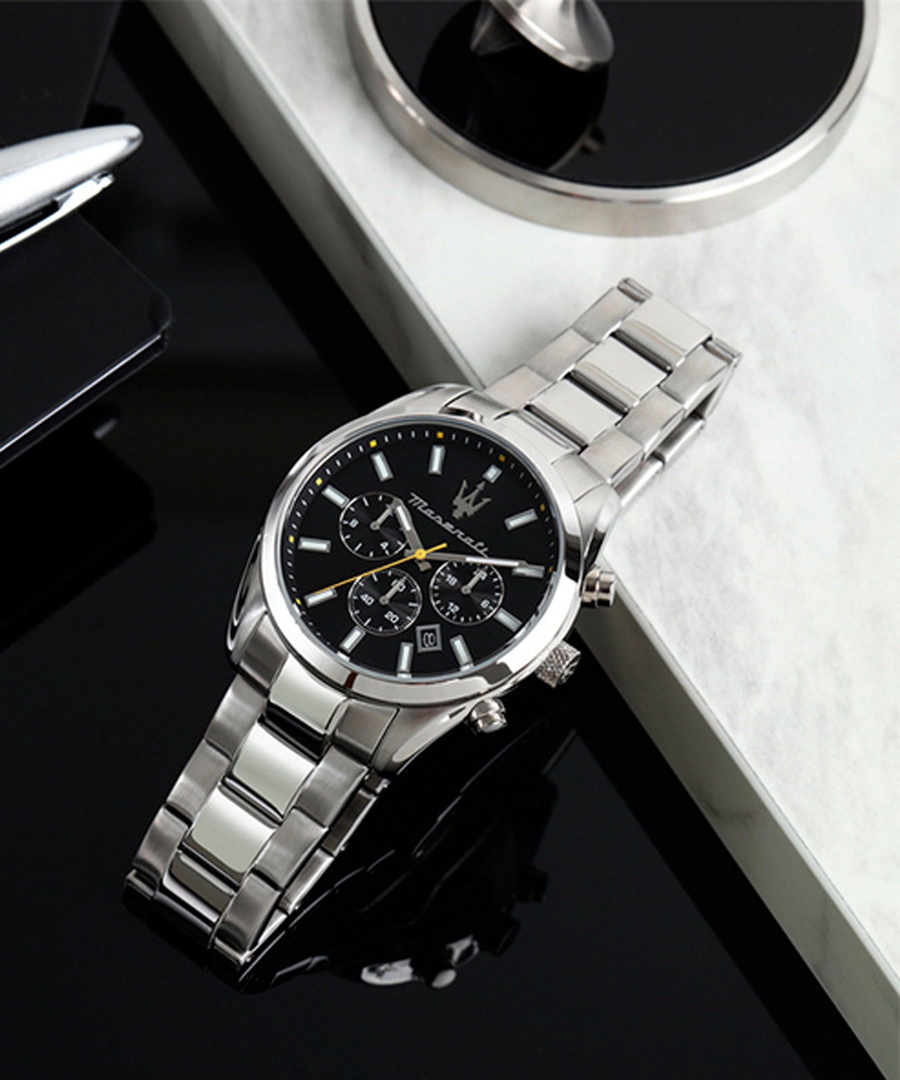 Чоловічий багатофункціональний годинник MASERATI R8853151010 з колекції ATTRAZIONE — це поєднання витонченості та технологічної досконалості. Сталевий корпус і браслет створюють елегантний і міцний дизайн, а діаметр корпусу 43 мм надає годиннику виразний вигляд. Чорний аналоговий циферблат "SUNRAY" з люмінесцентними стрілками та мітками часу забезпечує відмінну видимість у будь-яких умовах. Мінеральне скло надійно захищає циферблат від подряпин, а водозахист 5 АТМ дозволяє носити годинник навіть під час активних водних занять. Цей годинник — ідеальний вибір для чоловіків, які цінують стиль, надійність і точність у кожному моменті.