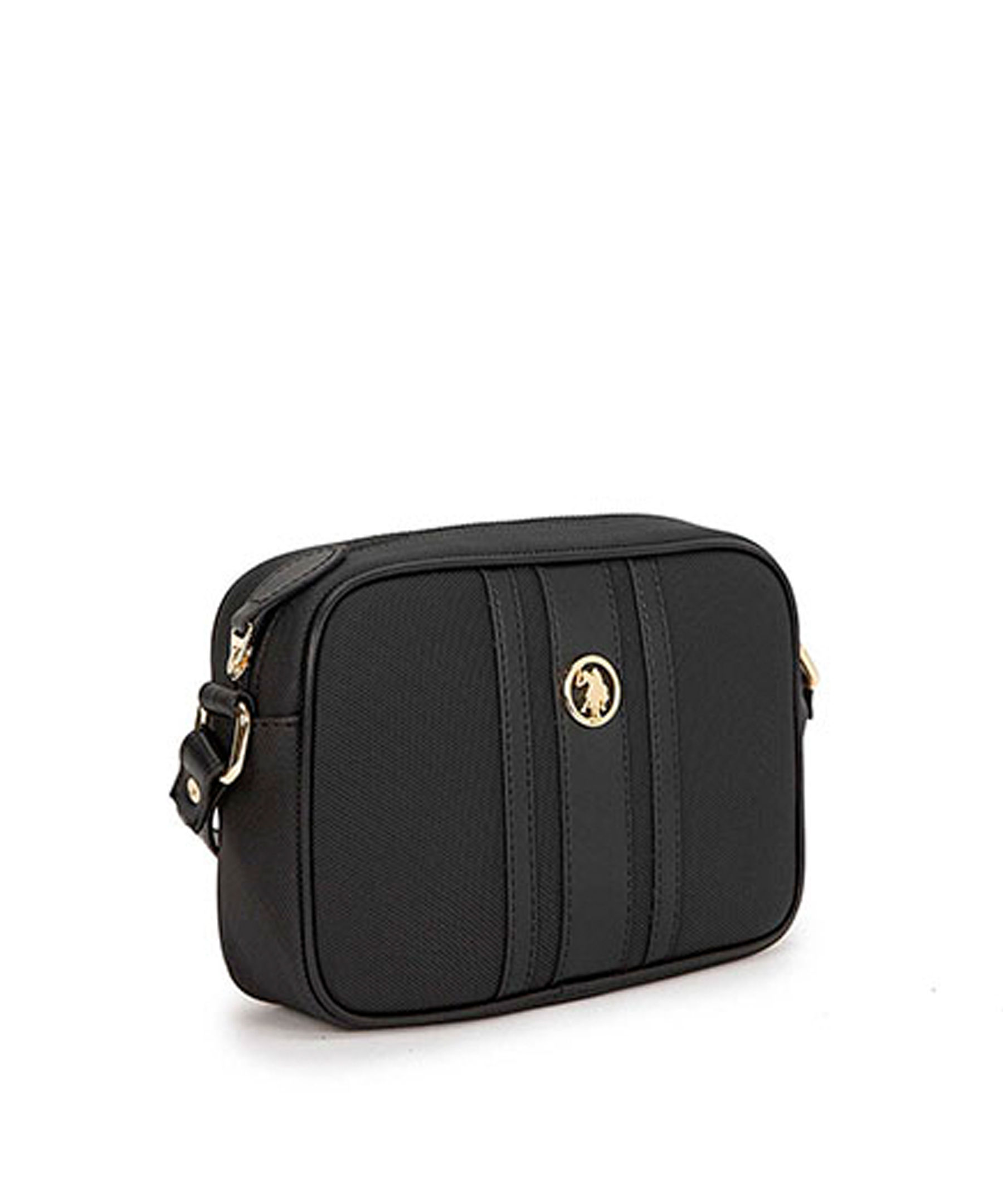 Жіноча чорна сумка крос-боді US8003 BLACK-BLACK від U.S. Polo Assn. Одне відділення, застібка на блискавку, дизайн із комбінацією матеріалів, внутрішня кишеня, металевий логотип бренду, регульований плечовий ремінь. Розмір: 23x17x7 см.
