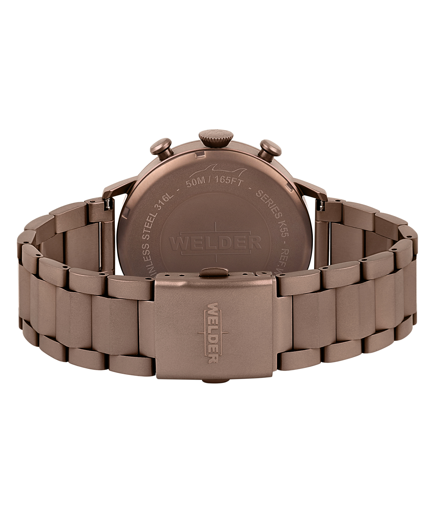 Стильний чоловічий годинник з японським механізмом з колекції Moody виконаний зі сталі високої якості з PVD покриттям Rose gold. Нетрадиційно з лівого боку розташовані заводна головка та кнопки, що забезпечує зручність в експлуатації. Особливістю бренду є фотохромне скло, яке змінює колір залежно від освітлення, кута зору та кольору Вашого одягу. У цій моделі переважають зелений і бордовий кольори, але при зміні освітлення з'являться й інші відтінки, які невловимо з'являються і зникають, як миттєвості нашого життя. Металевий браслет кольору рожевого золота посилює естетичний ефект, що дозволяє використовувати годинник як самостійну прикрасу.