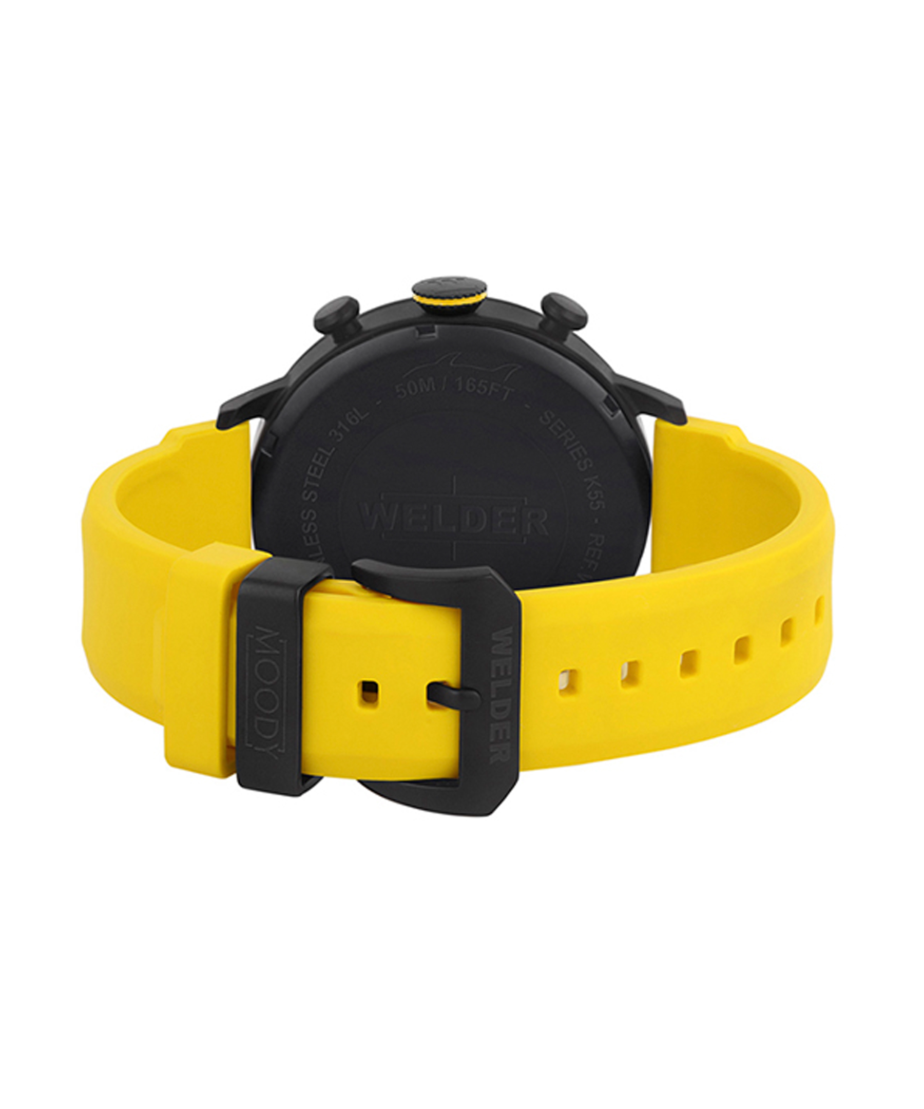 Дизайнерський чоловічий годинники Welder з колекції Moody з якісним японським механізмом Miyota. Суворість ліній та форм - “оживляється” типовою для Welder особливістю: яскраве фотохромне скло змінює забарвлення залежно від освітлення, нахилу руки та кута зору. На циферблаті є індикатори дати та дня тижня. Скло має підвищену міцність і прозорість. Яскравий жовтий силіконовий ремінець із тисненням у вигляді логотипу створює контраст та сміливу кольорову гаму. Ключ і кнопки управління механізмом розташовані зліва, що не заважає згинати руку і виглядає досить оригінально. Епатажний аксесуар, який може стати Вам гідною прикрасою.