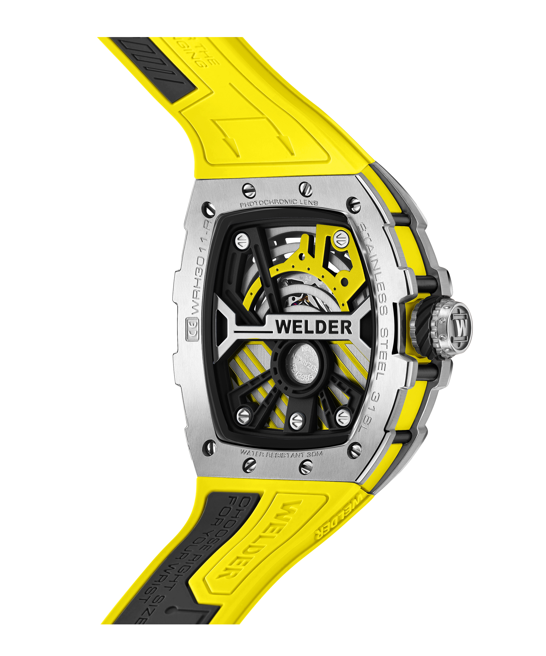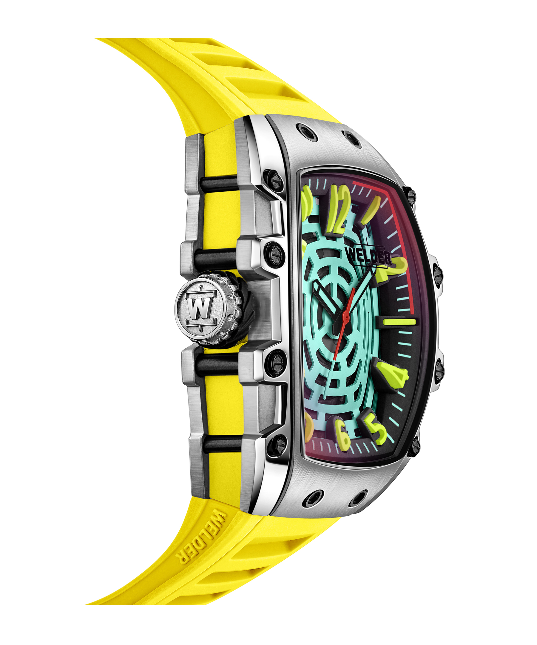 Оригінальний годинник популярної італійської компанії Welder. Корпус виконаний із високоякісної сталі, яскравий силіконовий ремінець з логотипом бренду, фотохромне міцне мінеральне скло- надає цьому годиннику особливу привабливість та стиль.Діаметр 42 мм. Водозахист 3 АТМ.