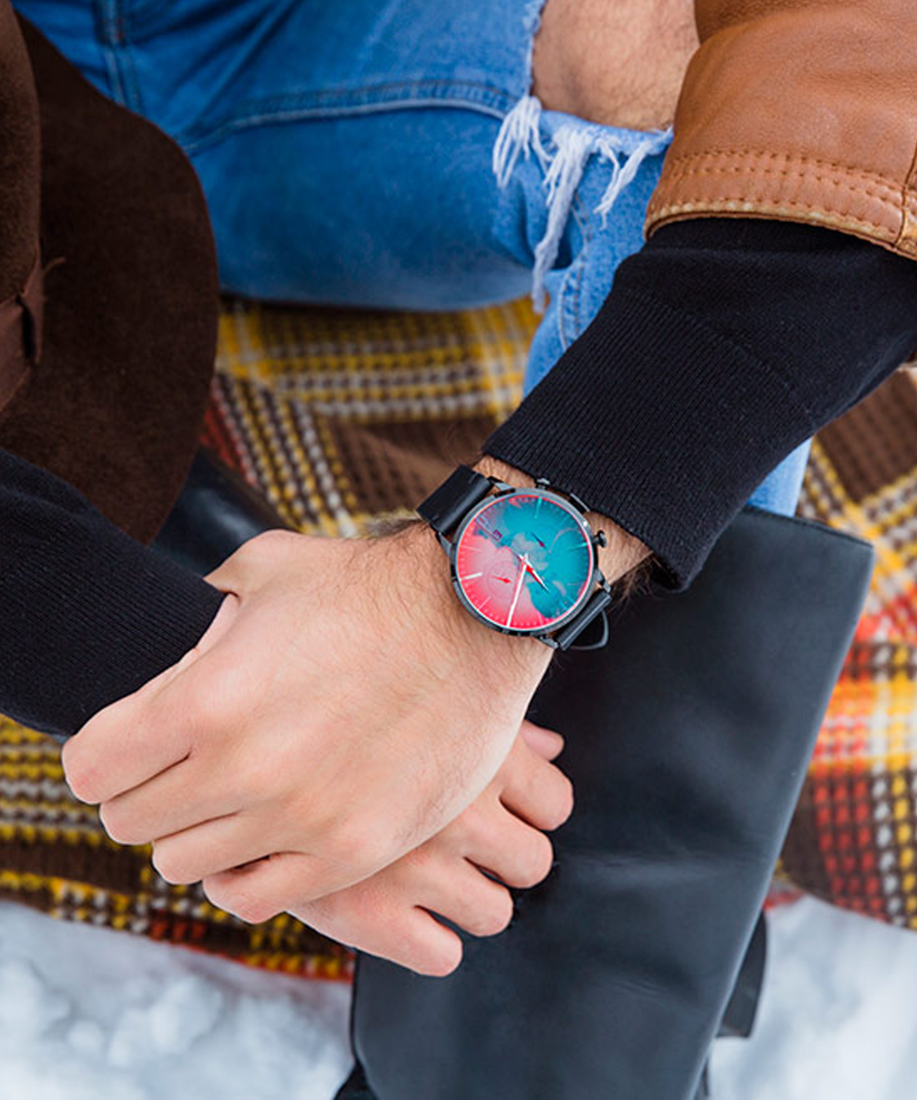 Мужские дизайнерские часы Welder с надёжным японским механизмом Miyota выполнены из металла высокого качества с IP Black напылением. Циферблат с фотохромным куполообразным стеклом - дизайнерский прием, присущий бренду Welder, придает часам особую привлекательность за счет смены цветовой гаммы от изумрудной глубины до активного красного. Смена красок зависит от освещения, угла обзора и малейшего движения руки. Заводной ключ и кнопки настроек расположены слева от циферблата и кроме прямого назначения выполняют декоративную функцию. Индикатор даты, индикатор мирового времени, стандартная водозащита, ремешок из кожи благородного черного цвета, делают часы более привлекательными, придавая Вашему образу строгость и стиль.