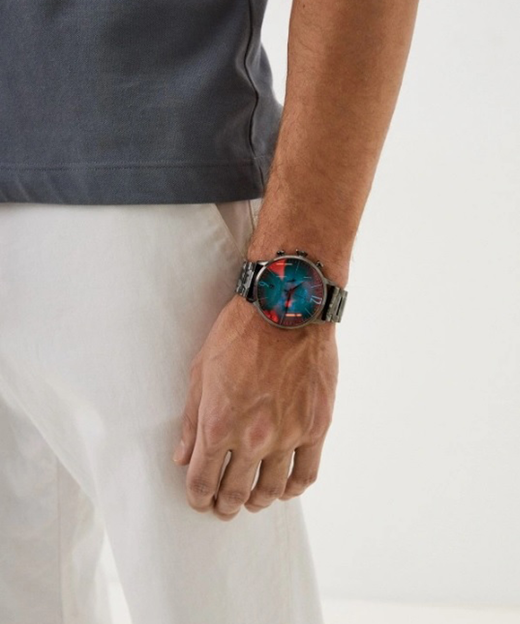 Особенностью бренда является минеральное фотохромное стекло, которое меняет цвет в зависимости от освещения, угла зрения и цвета Вашей одежды. В данной модели преобладают синий и бирюзовый тона, но стоит сделать движение рукой - появятся и другие оттенки, неуловимо появляющиеся и исчезающие, как мгновения нашей жизни. Металлический браслет усиливает эстетический эффект, производимый часами, что позволяет использовать их как самостоятельное украшение. Индикатор даты и дня недели, изысканный дизайн, присущий только бренду WELDER, придают аксессуару сдержанный, элегантный шик.