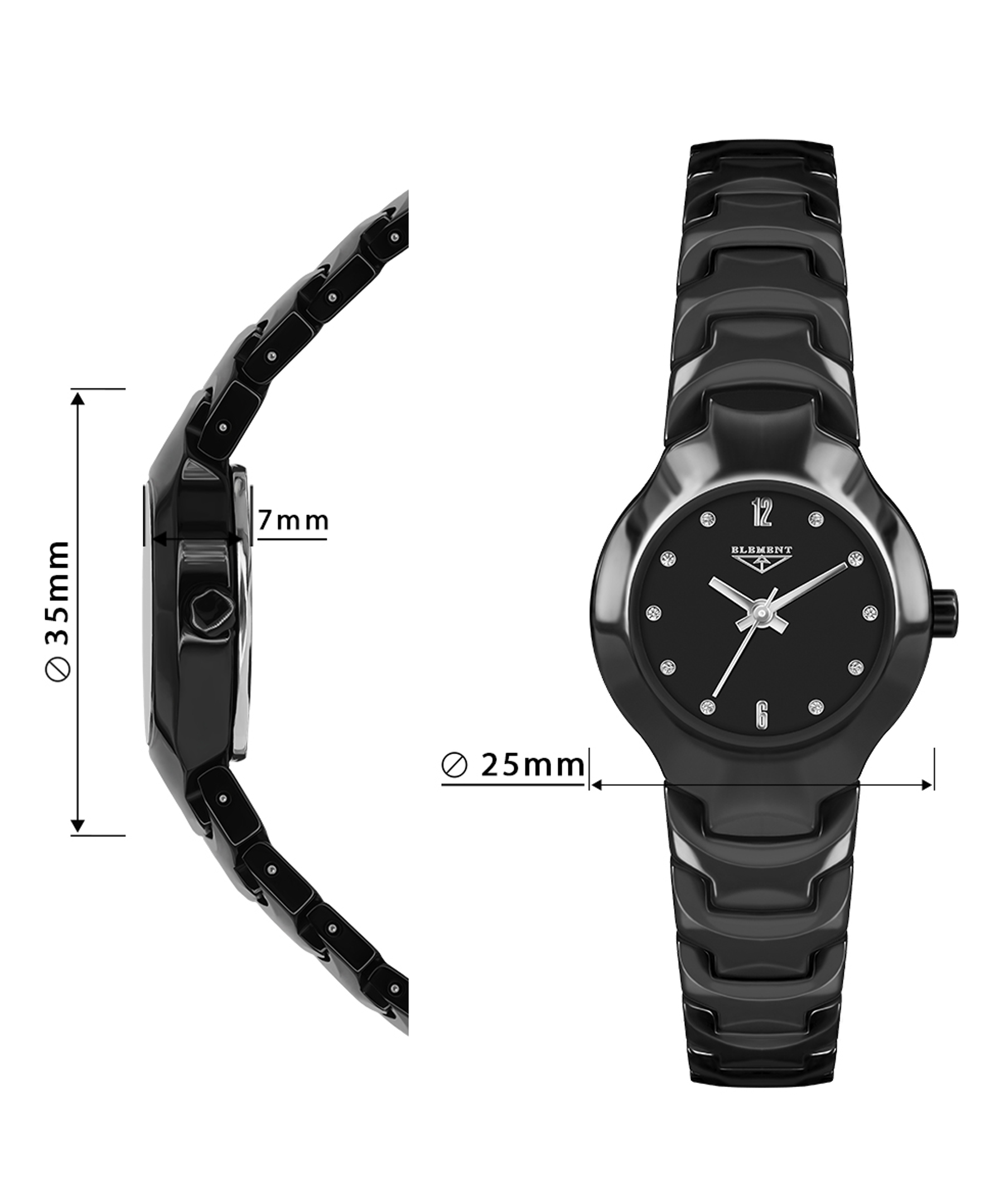 Эти элегантные наручные часы от 33 Element олицетворяют классическую эстетику и современную роскошь. Внутри – надежный швейцарский кварцевый механизм Ronda, гарантирующий точность в каждой секунде. Корпус из прочной керамики выполнен в глубоком черном цвете, диаметром 25 мм, что делает часы идеальным аксессуаром для хрупкого женского запястья.