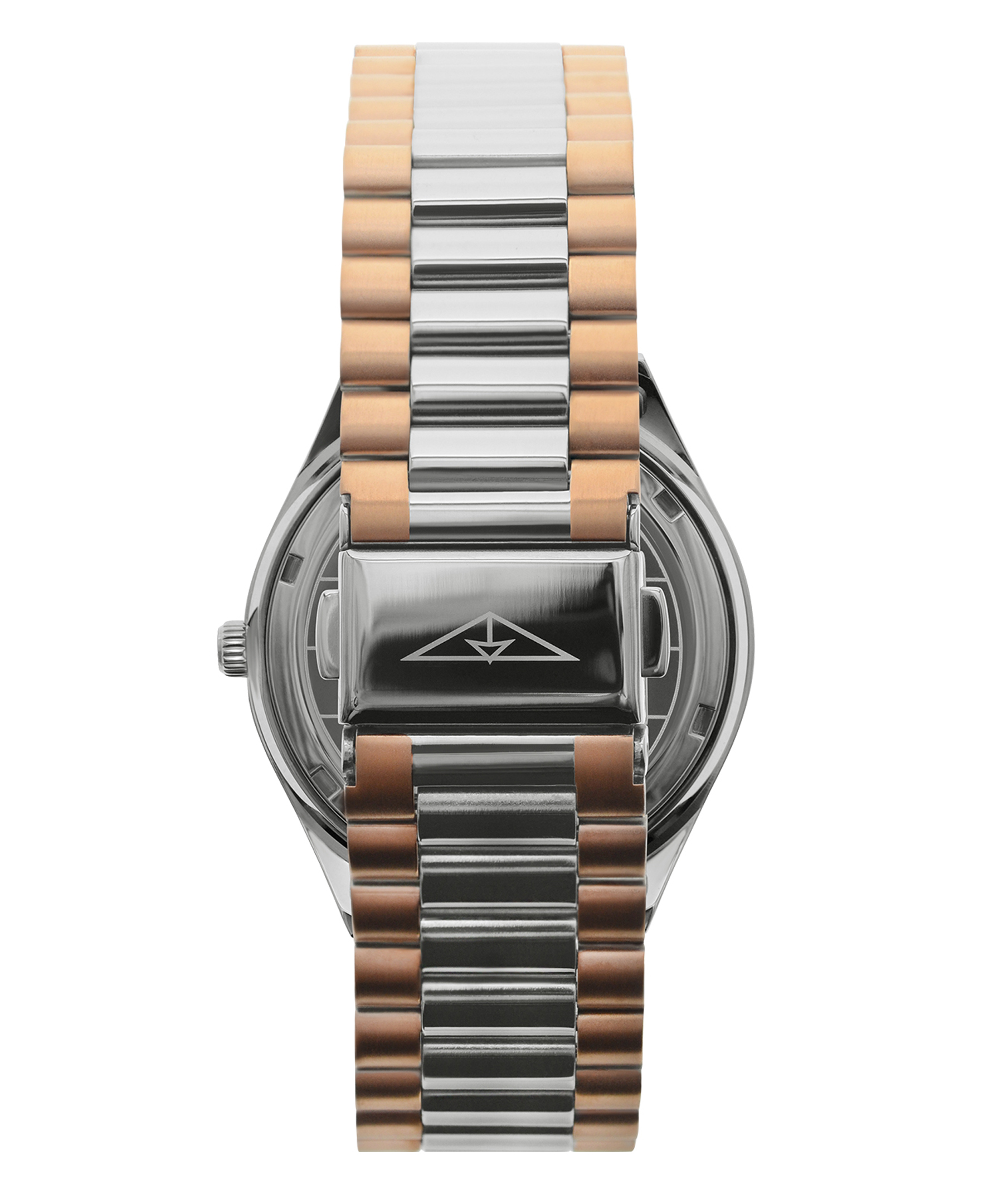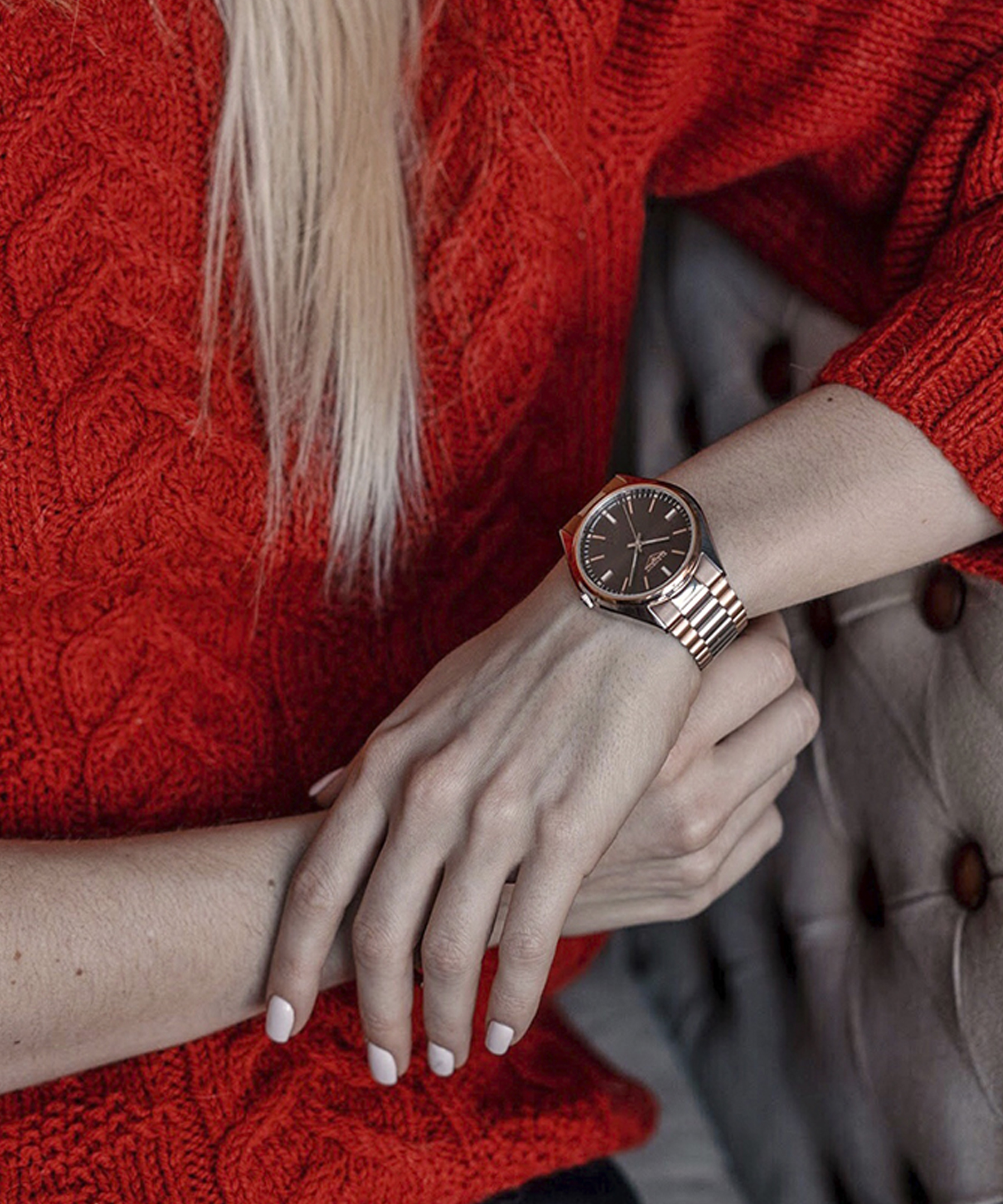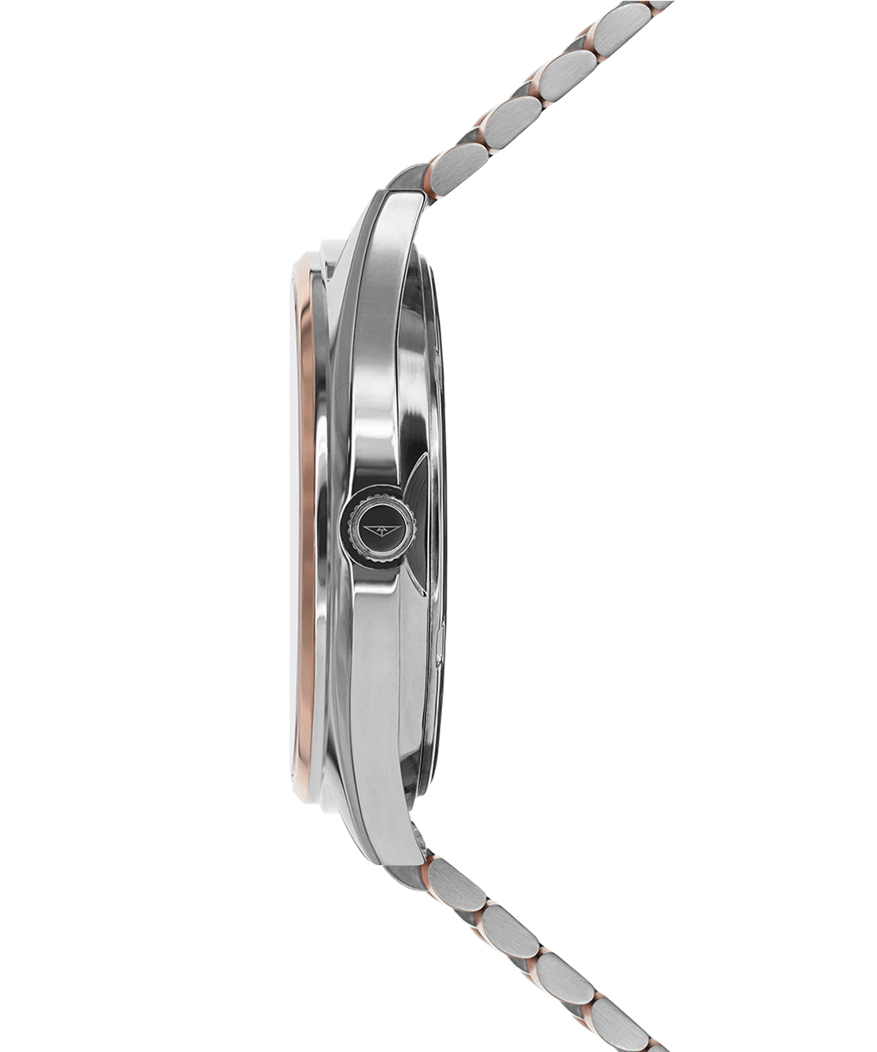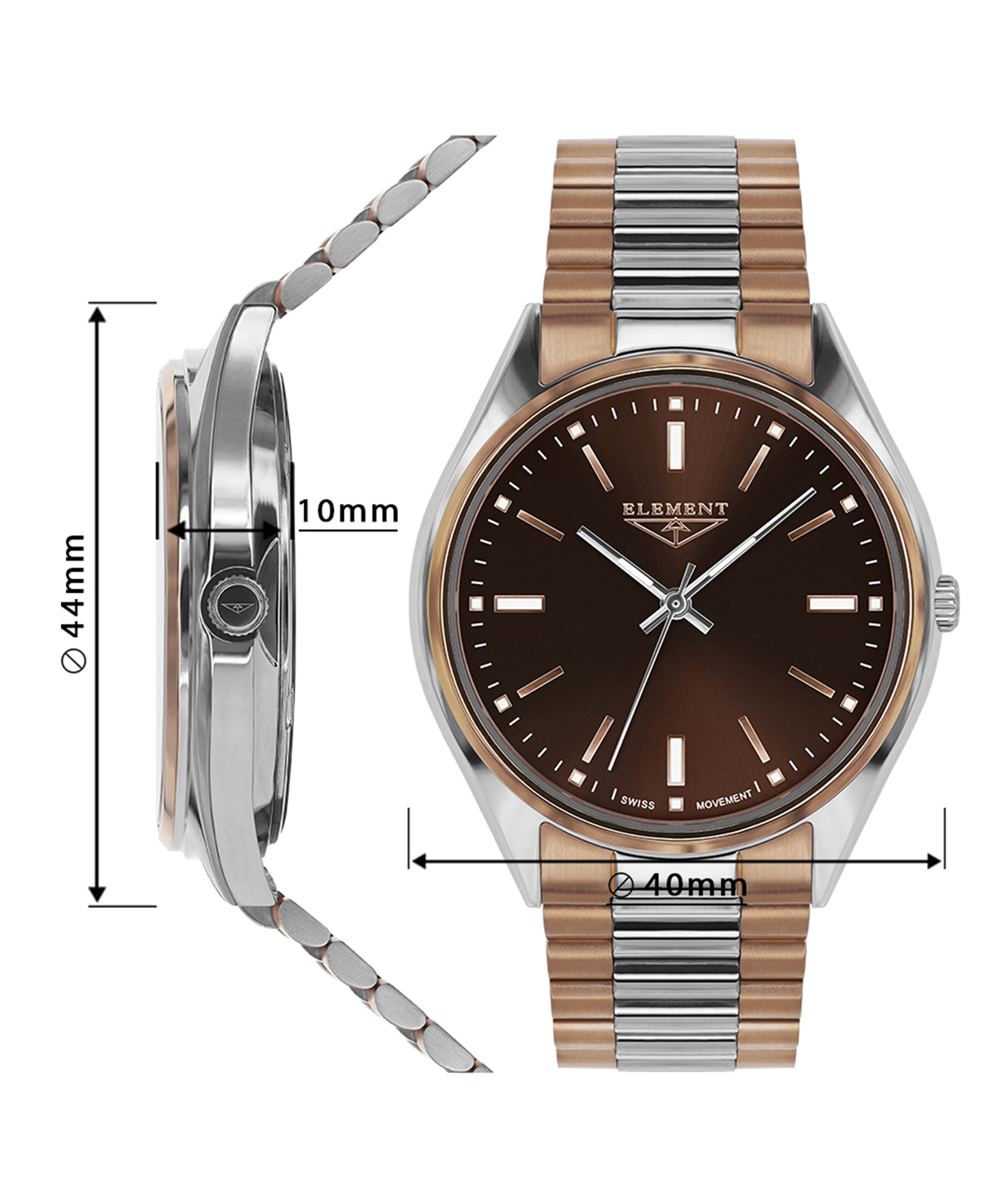 Металлический браслет с частичным напылением цвета бронзы. Диаметр корпуса - 40 мм. Минеральное с сапфировым покрытием стекло обладает особой прочностью и безупречной прозрачностью. Предложенная модель оригинально сочетается как со спортивной, так и с классической одеждой.