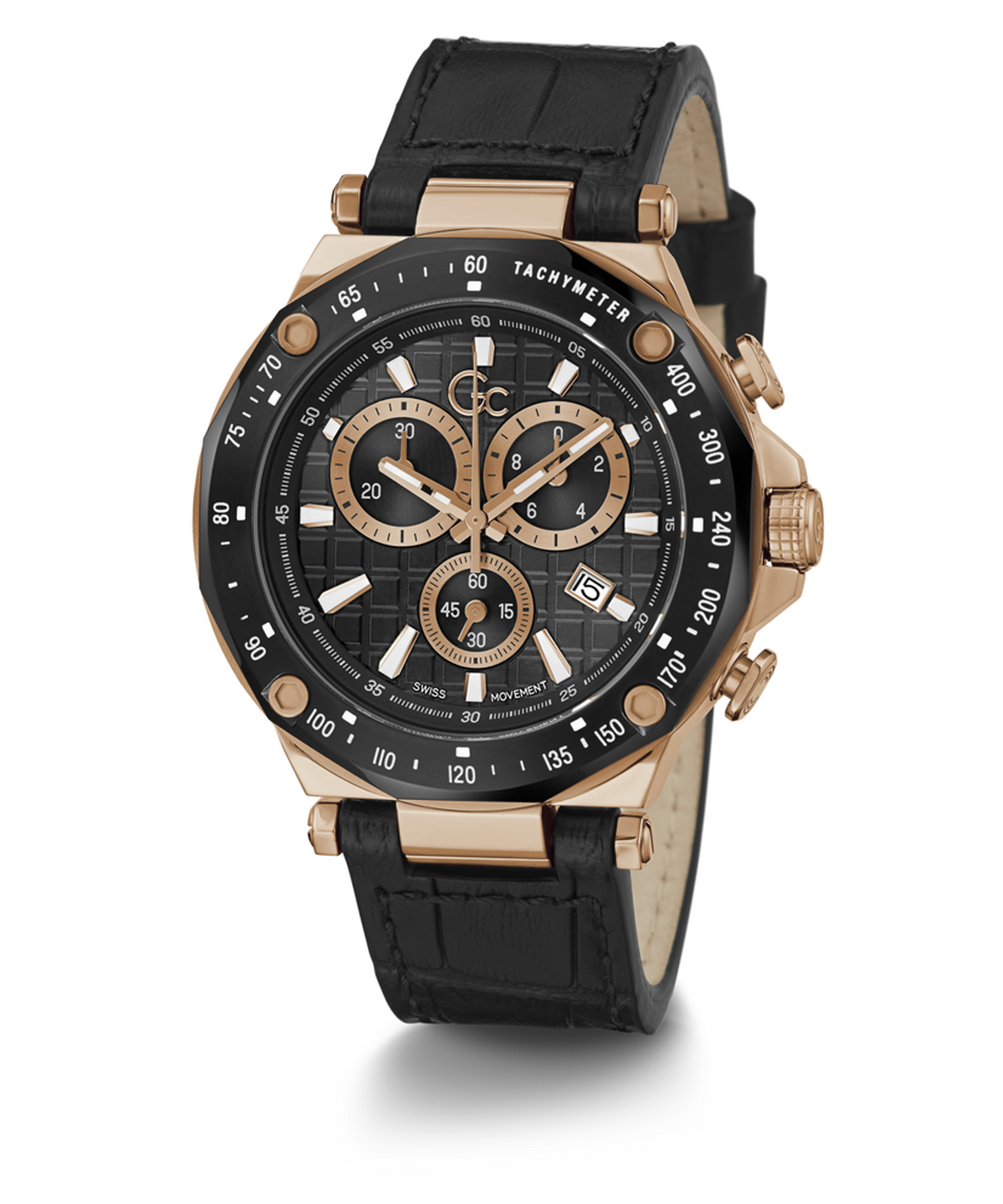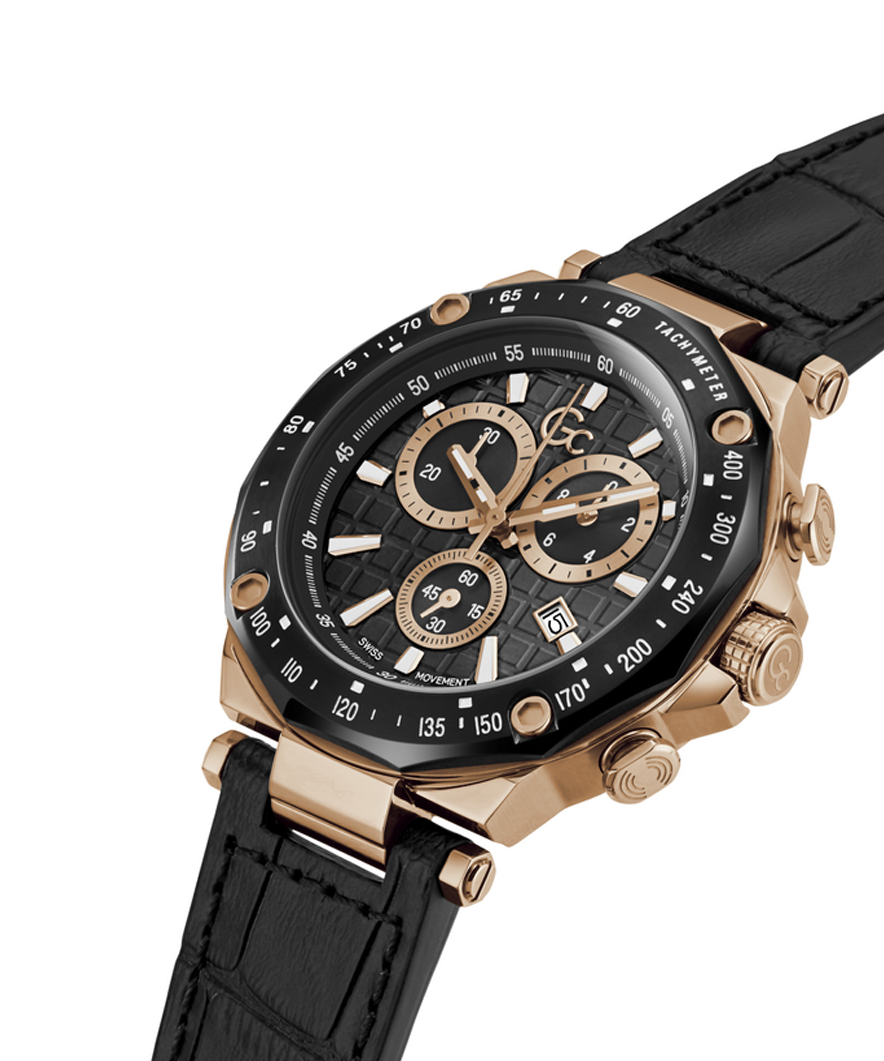 Мужские часы-хронограф Gc – идеальная комбинация точности и стиля. Оснащенные высокоточным швейцарским механизмом, эти часы обеспечивают безупречную надежность и точность на каждый день. Корпус из стали высокого качества с PVD покрытием в цвете Rose Gold подчеркивает его утонченность и мужество.