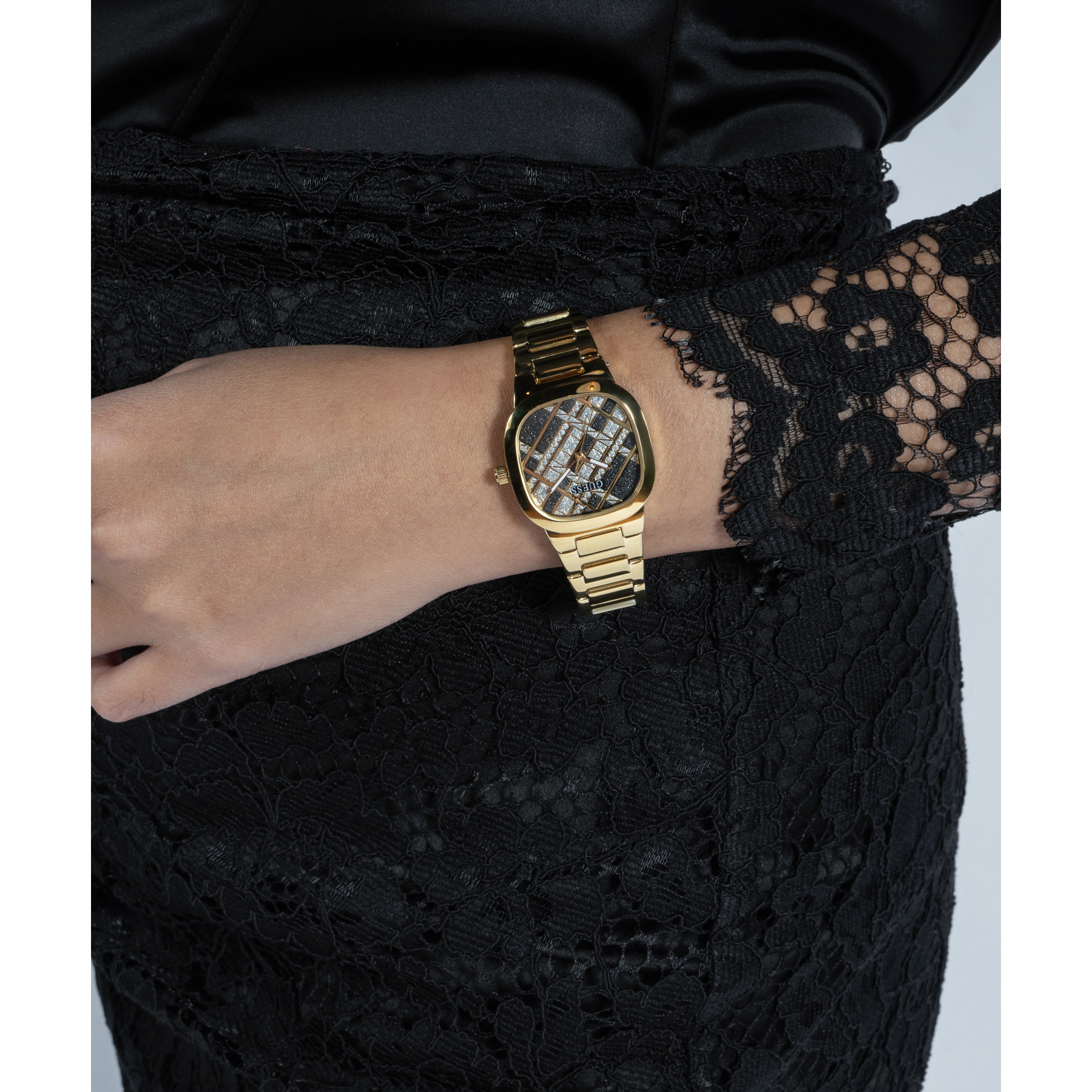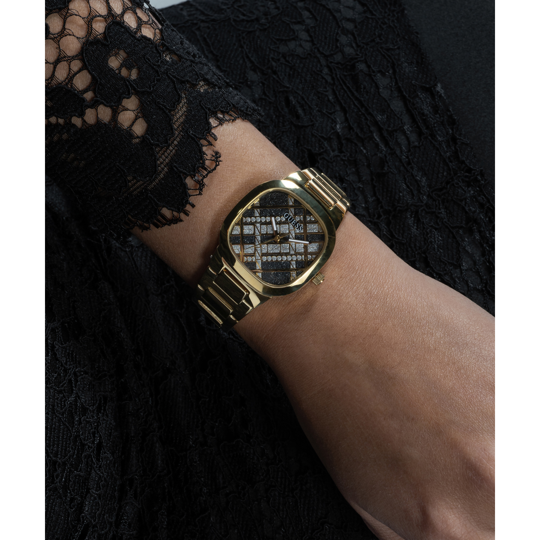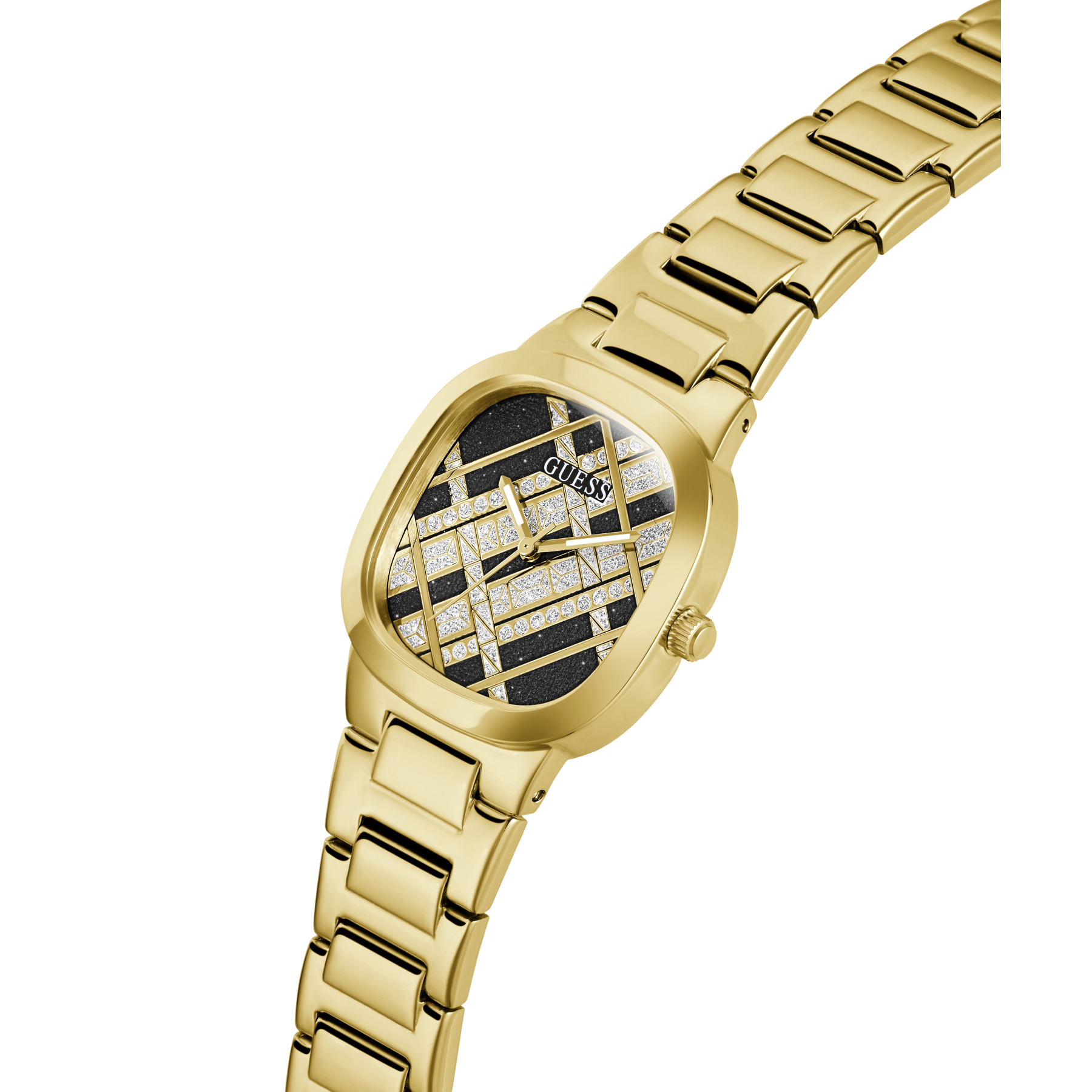 Женские наручные часы GW0600L2 легендарного американского бренда Guess. В часах установлен надежный кварцевый механизм Miyota. Стальные с золотистым покрытием корпус и браслет. Циферблат декорирован мерцающими геометрическими линиями. Диаметр корпуса – 32 мм, толщина – 7,85 мм. Аналоговый циферблат защищен крепким минеральным стеклом. Водозащита – 3 АТМ.