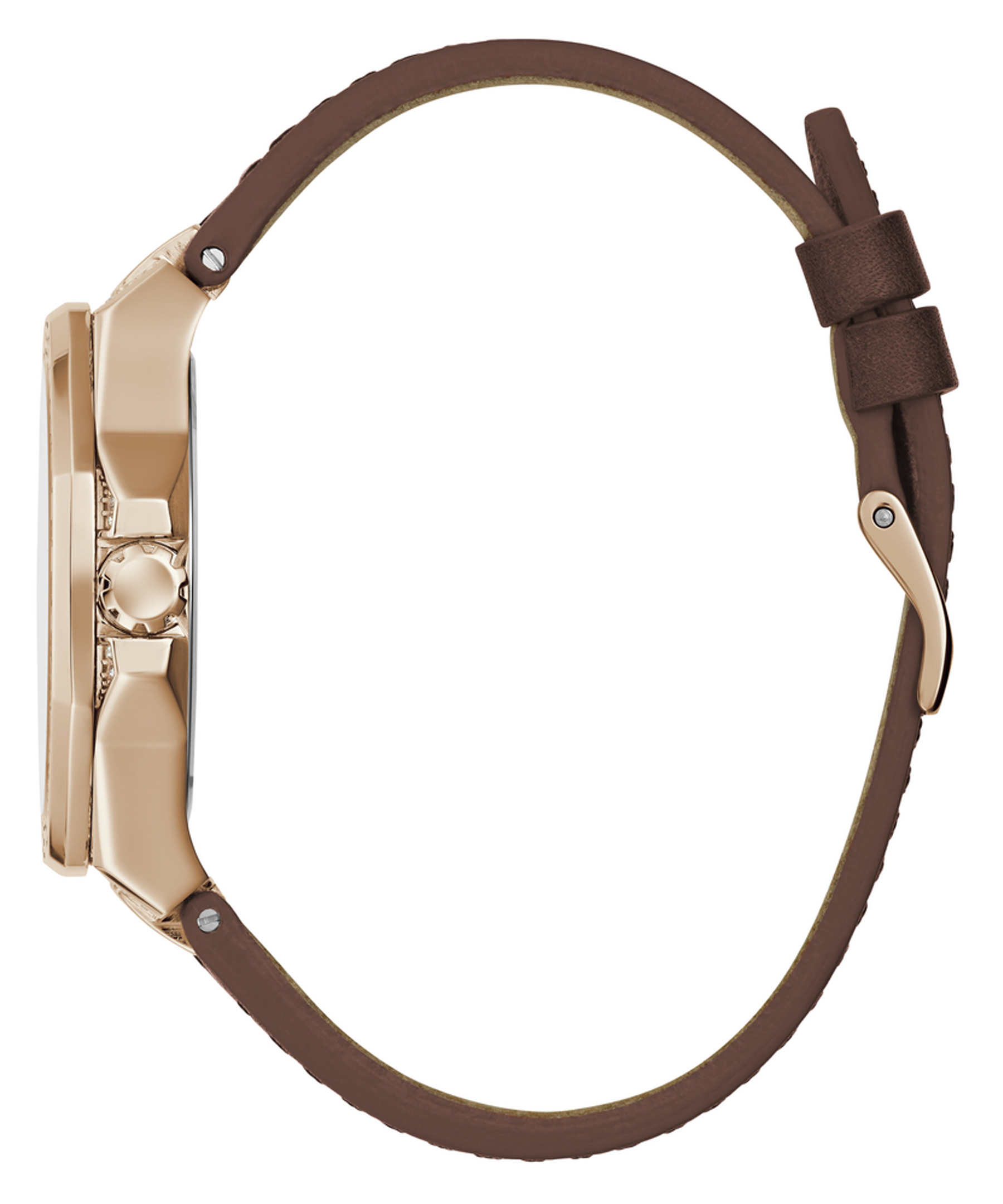 Женские наручные часы GUESS из коллекции LADIES TREND— это элегантный аксессуар, придающий роскоши каждому образу. В оснащении часов использован надежный кварцевый механизм Miyota, обеспечивающий точность и долговечность. Стальной корпус с покрытием Rose Gold Tone имеет изящную форму, диаметр которого составляет 38 мм, а толщина – всего 10 мм, что дарит комфорт при ношении.